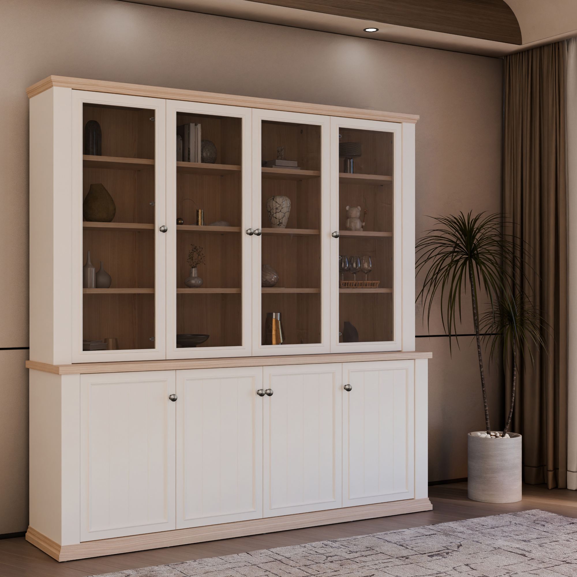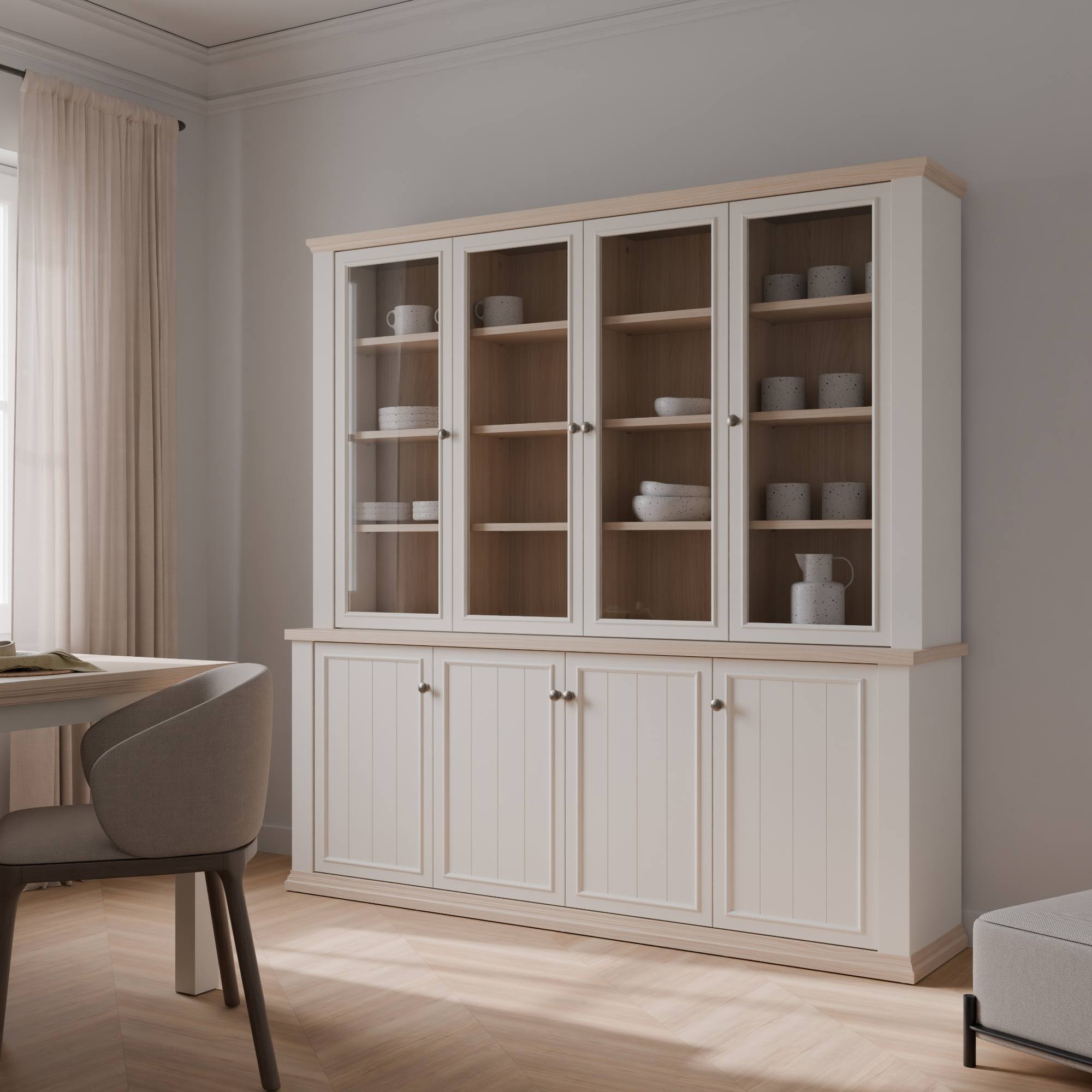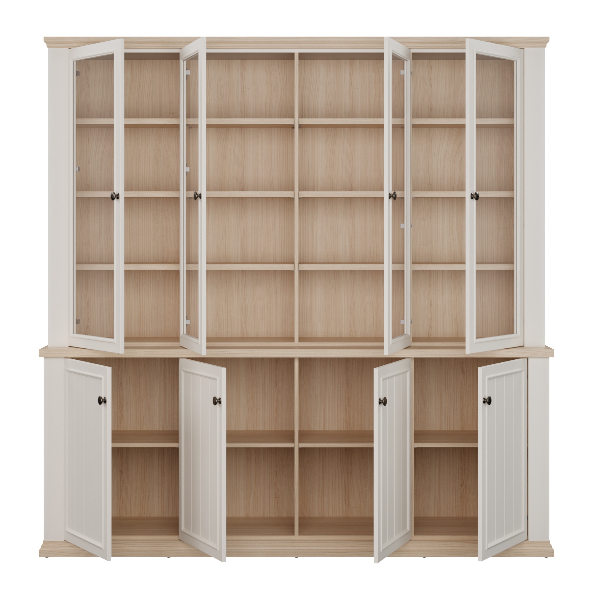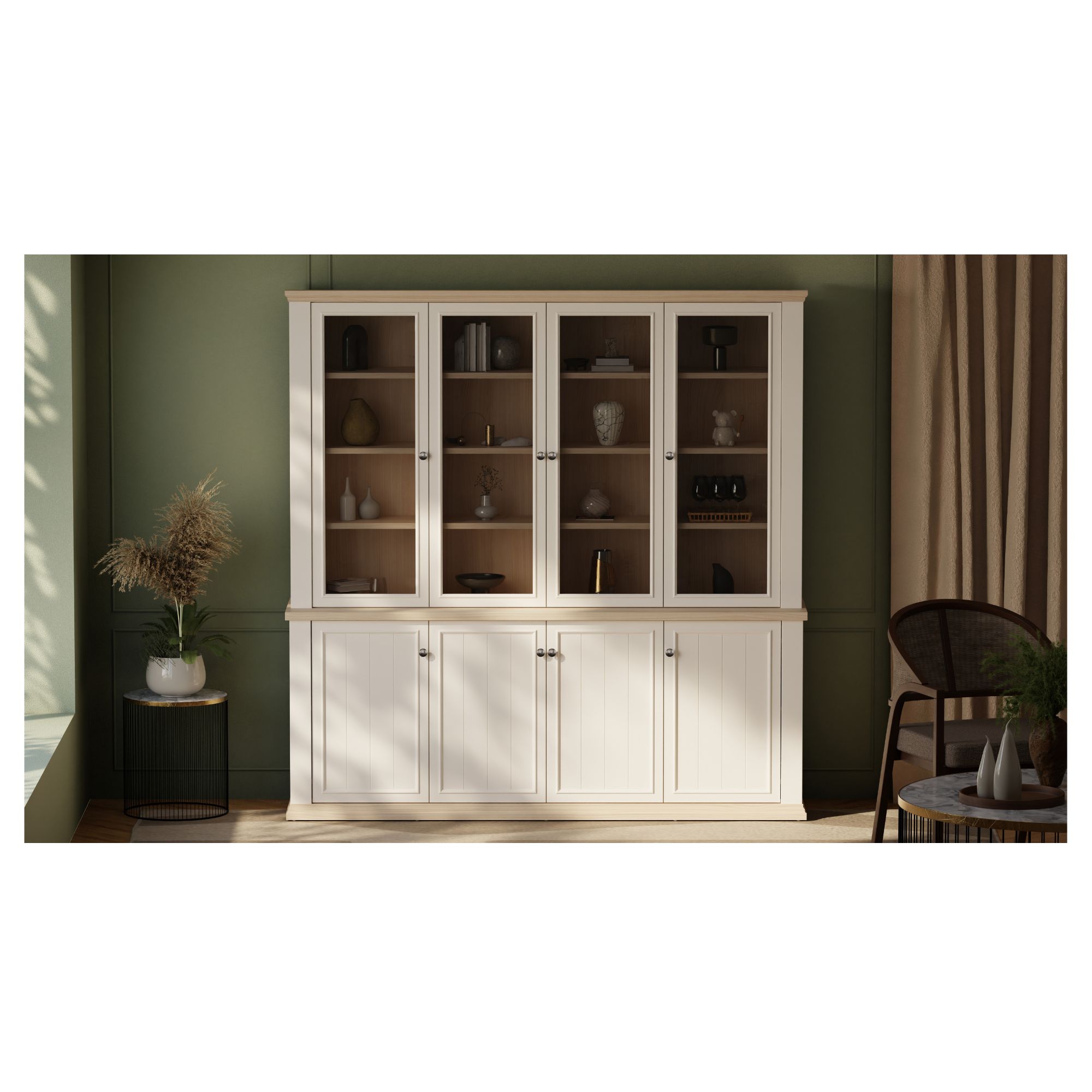Za jejími dvířky, které jsou pro snadnější manipulaci vybavena úchyty, najdete 16 polic. Knihovna tak poskytne nejen dostatek prostoru na přehledné uložení knih nebo šanonů s dokumenty, ale i místo pro vystavení oblíbených dekorací. Ke knihovně si můžete dokoupit i LED osvětlení, díky kterému předměty vystavené za prosklenými dvířky budou moct vyniknout naplno.