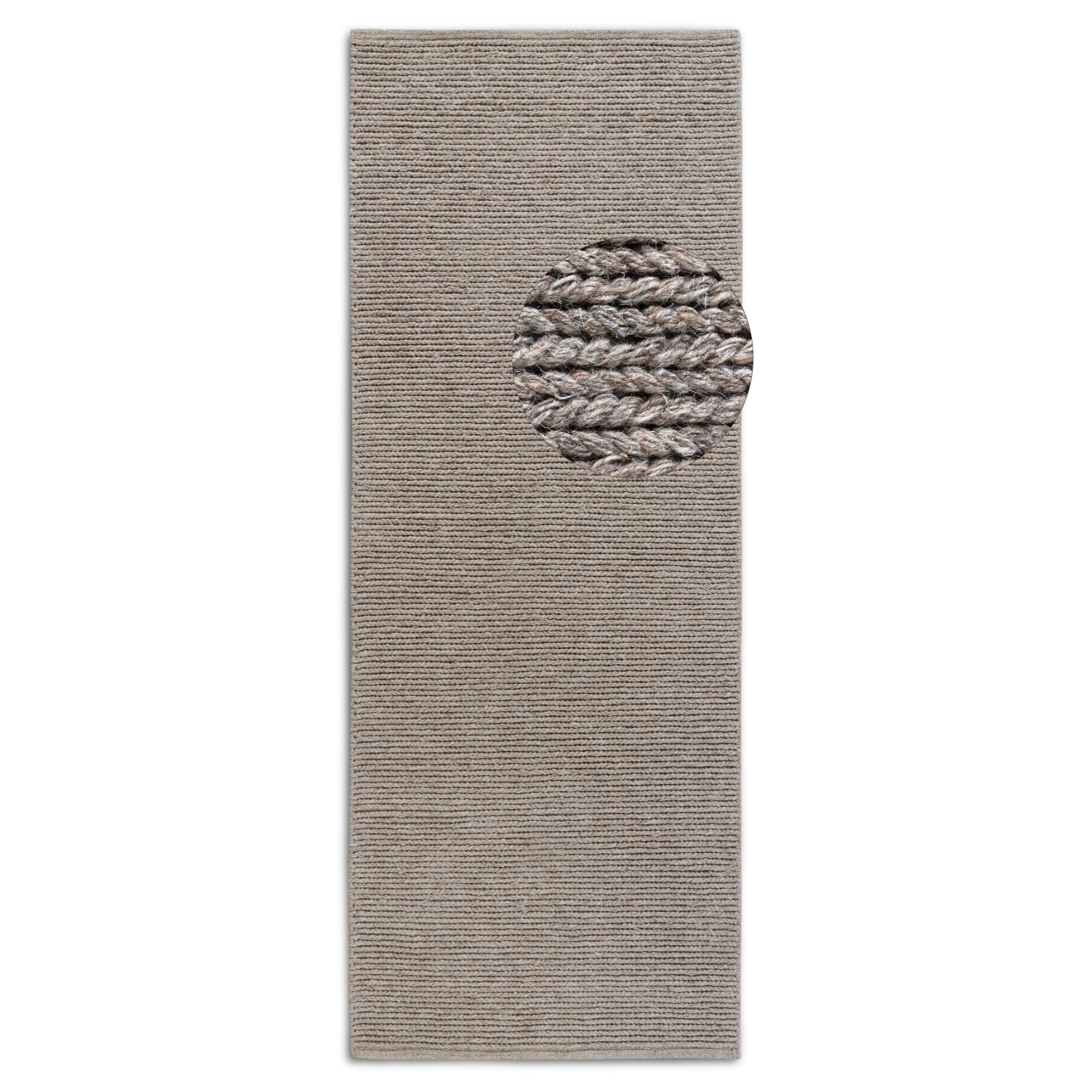 Je ručně tkaný ze 100% vlny s výškou 6 mm. Vlna se vyznačuje svou prodyšností, nepohlcuje pachy, má delší životnost a je vhodná pro alergiky. Zajišťuje snadnou údržbu, díky přírodnímu odpuzování nečistot. Je také biologicky rozložitelná, tedy šetrná k přírodě.