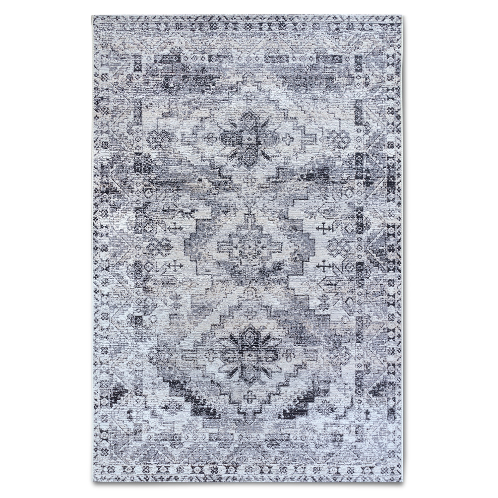 Je vyveden v šedé barvě s orientálním vzorem, jež se bude díky svému neutrálnímu tónu snadno kombinovat s dalšími doplňky. Jeho lehce opotřebovaný vzhled mu dodává stylový vintage nádech.