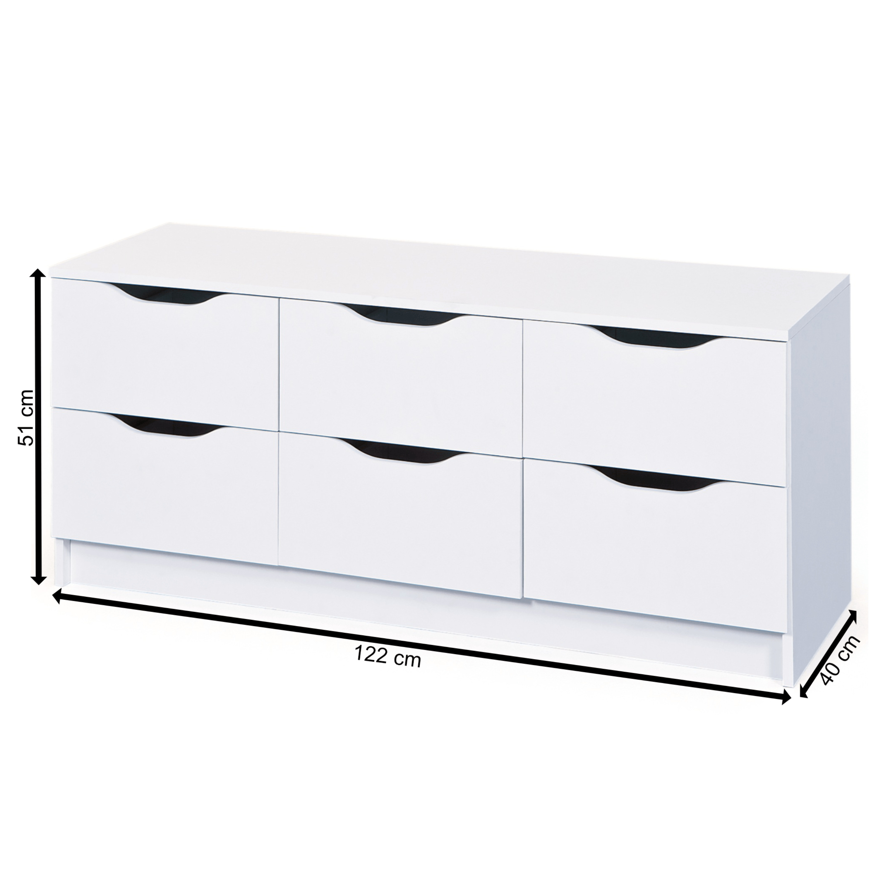 Komoda ARPÁD 6 představuje praktické řešení úložného prostoru ve vaší domácnosti. Můžete ji umístit kamkoliv, ať do předsíně či kuchyně, všude bude užitečným pomocníkem. Praktické, vyfrézované úchyty oceníte nejen v případě, že se ji rozhodnete umístit do dětského pokoje. Na horní desce se budou vyjímat vaše dekorace, či květiny, které celou místnost příjemně oživí a zútulní. Laminovaný dřevěný materiál se snadno udržuje.