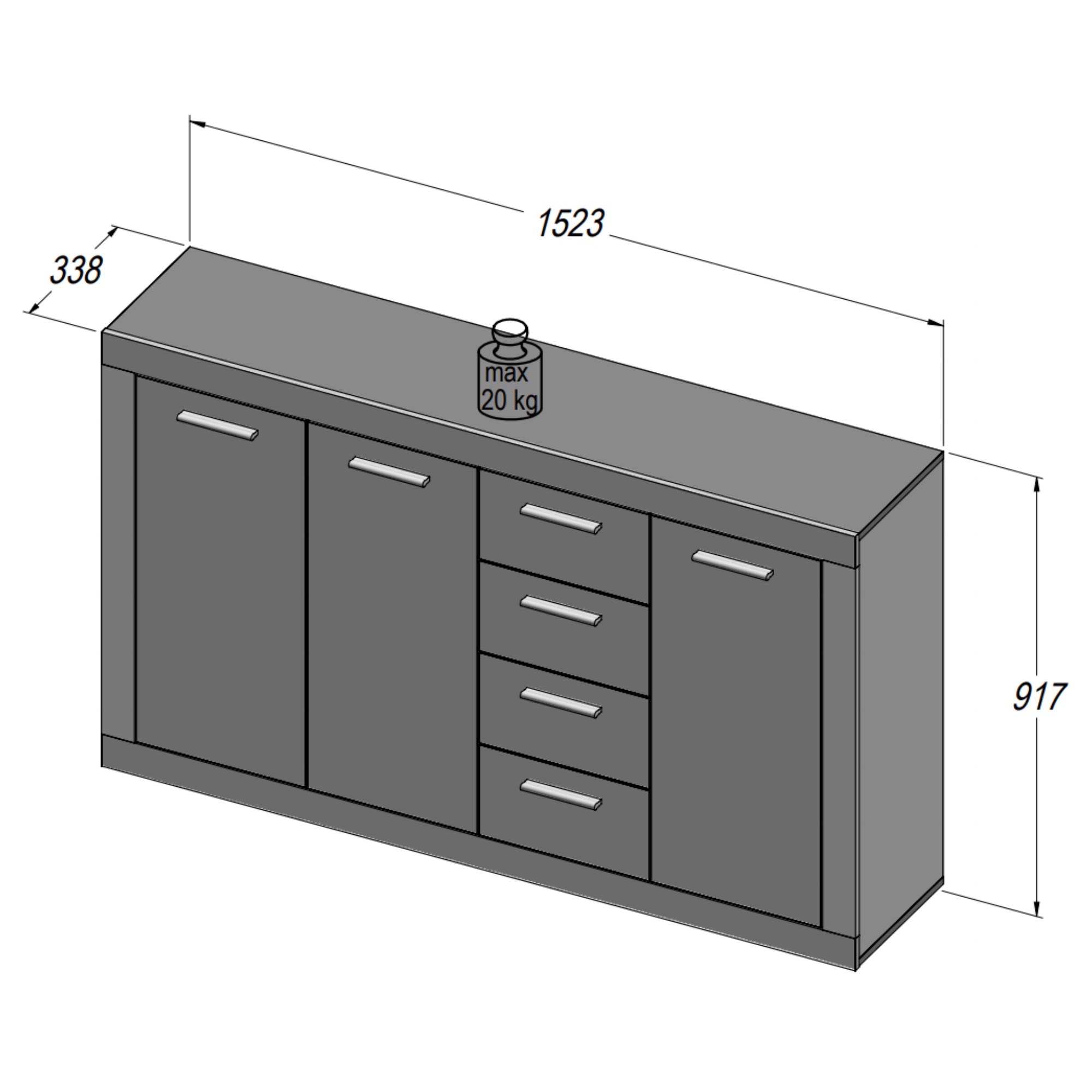 - Rozměr komody: Nízká - do výšky 99 cm, Široká - nad 80 cm