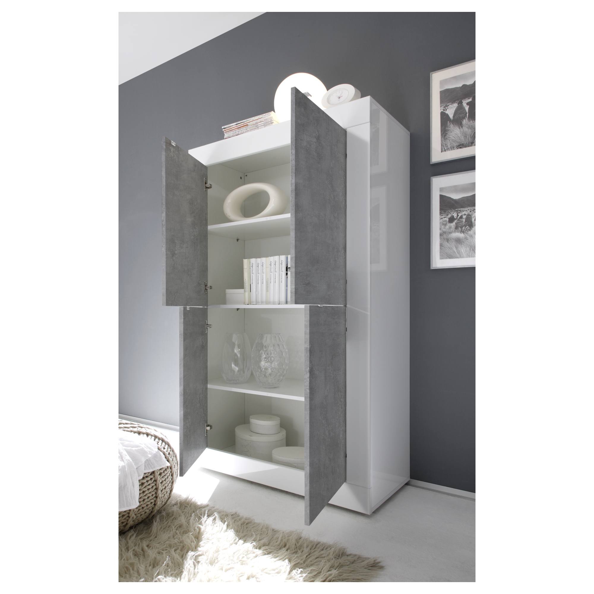 Komoda je uzavíratelná pomocí 4 otočných dveří, které jsou pro snadnou manipulaci doplněny o drobné úchyty. Vnitřní vybavení sestává celkem ze 2 vložených polic, které utváří velký a prakticky rozdělený úložný prostor. Díky multifunkčnímu využití můžete komodu umístit do obývacího pokoje, ložnice, předsíně či jídelny. Komoda je vyrobena z kvalitní laminované dřevotřísky nenáročné na údržbu
