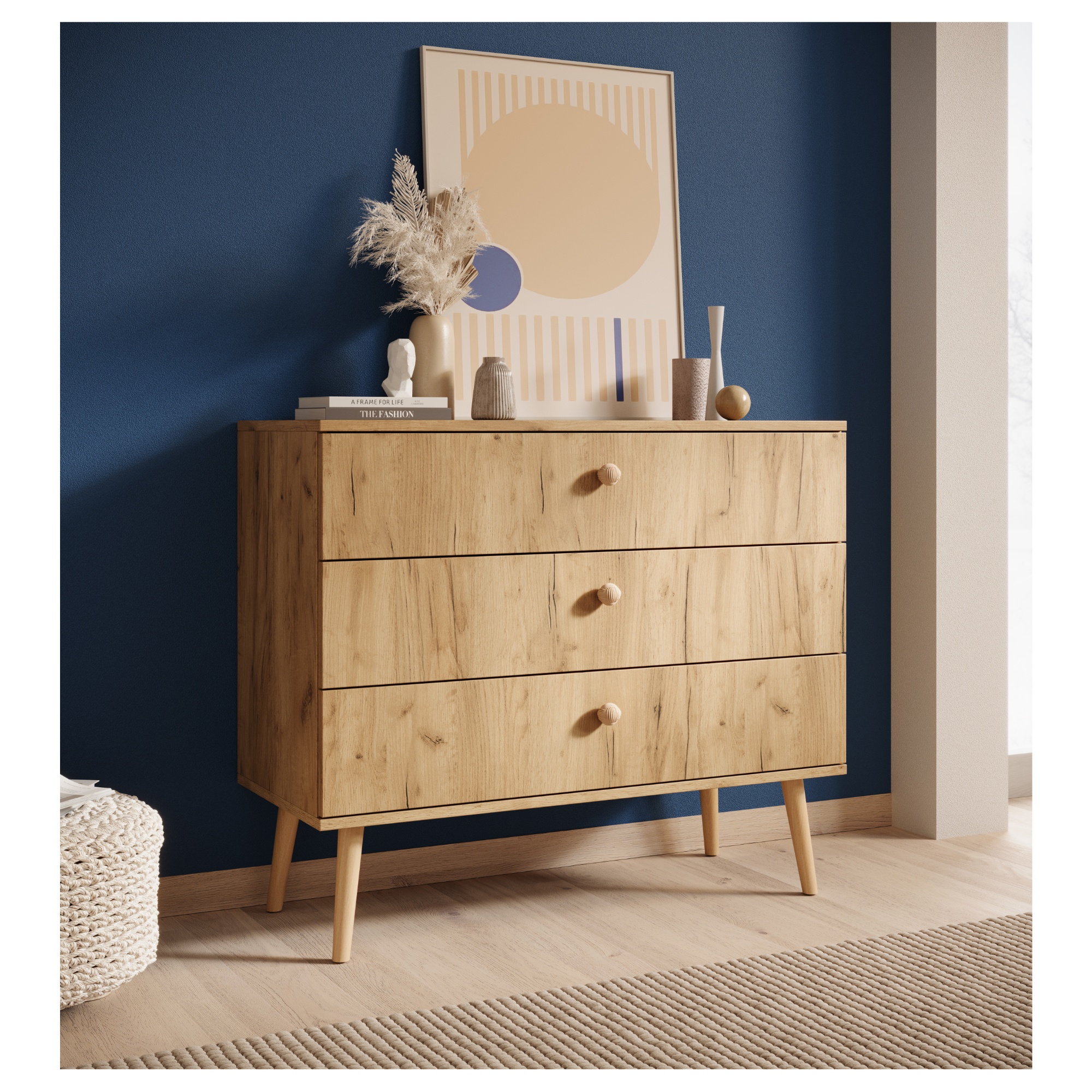 Komoda BENI vyhotovena ve skandinávském stylu je elegantním a nadčasovým kusem nábytku, který využijete v předsíni, ložnici i obývacím pokoji.
