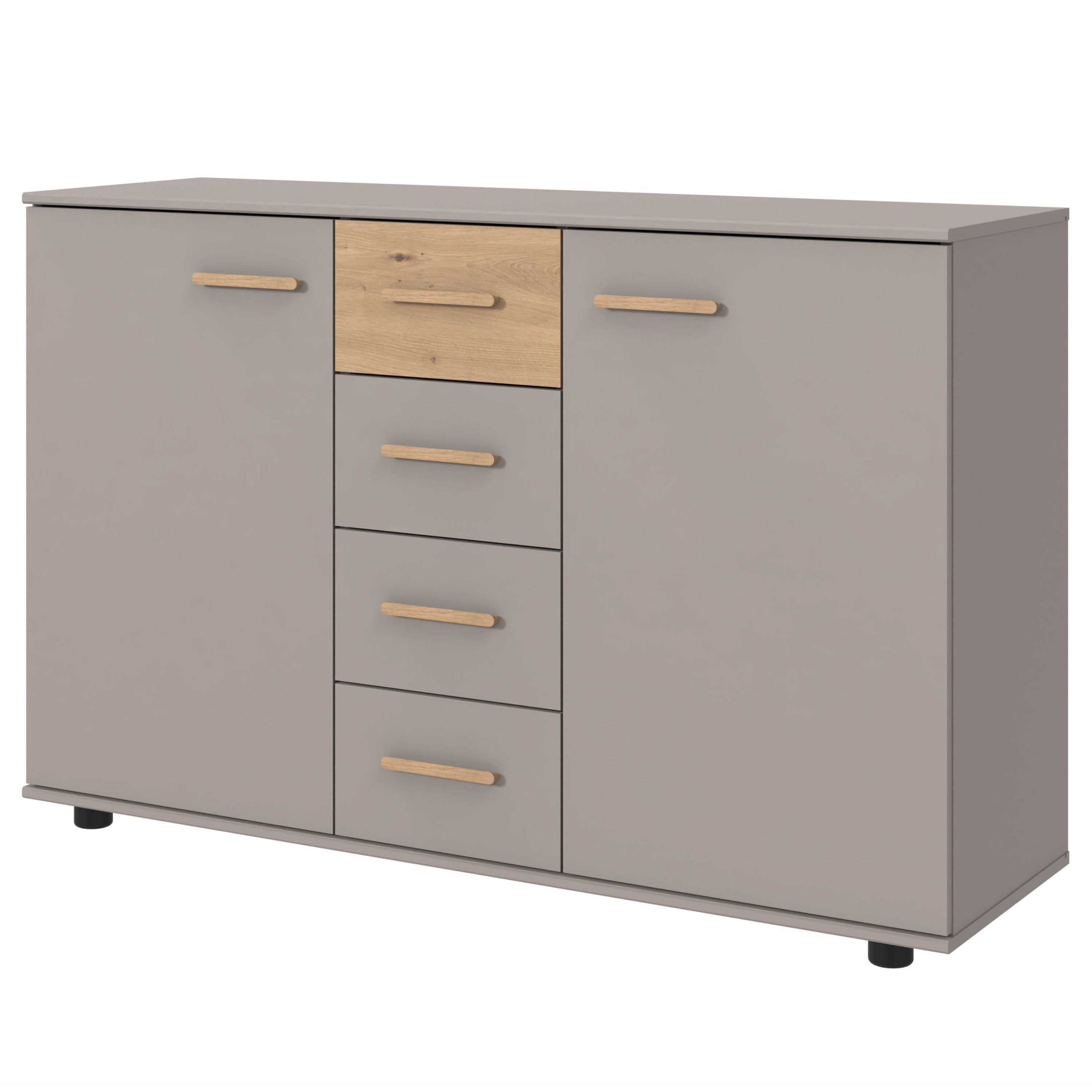 Poskytuje prostor za dvířky a ve čtyřech zásuvkách, který poslouží nejen k odložení oděvů, ale i pro různé drobnosti. Stylové úchytky usnadňují celkovou manipulaci. Povrch komody se vyznačuje snadnou údržbou.
