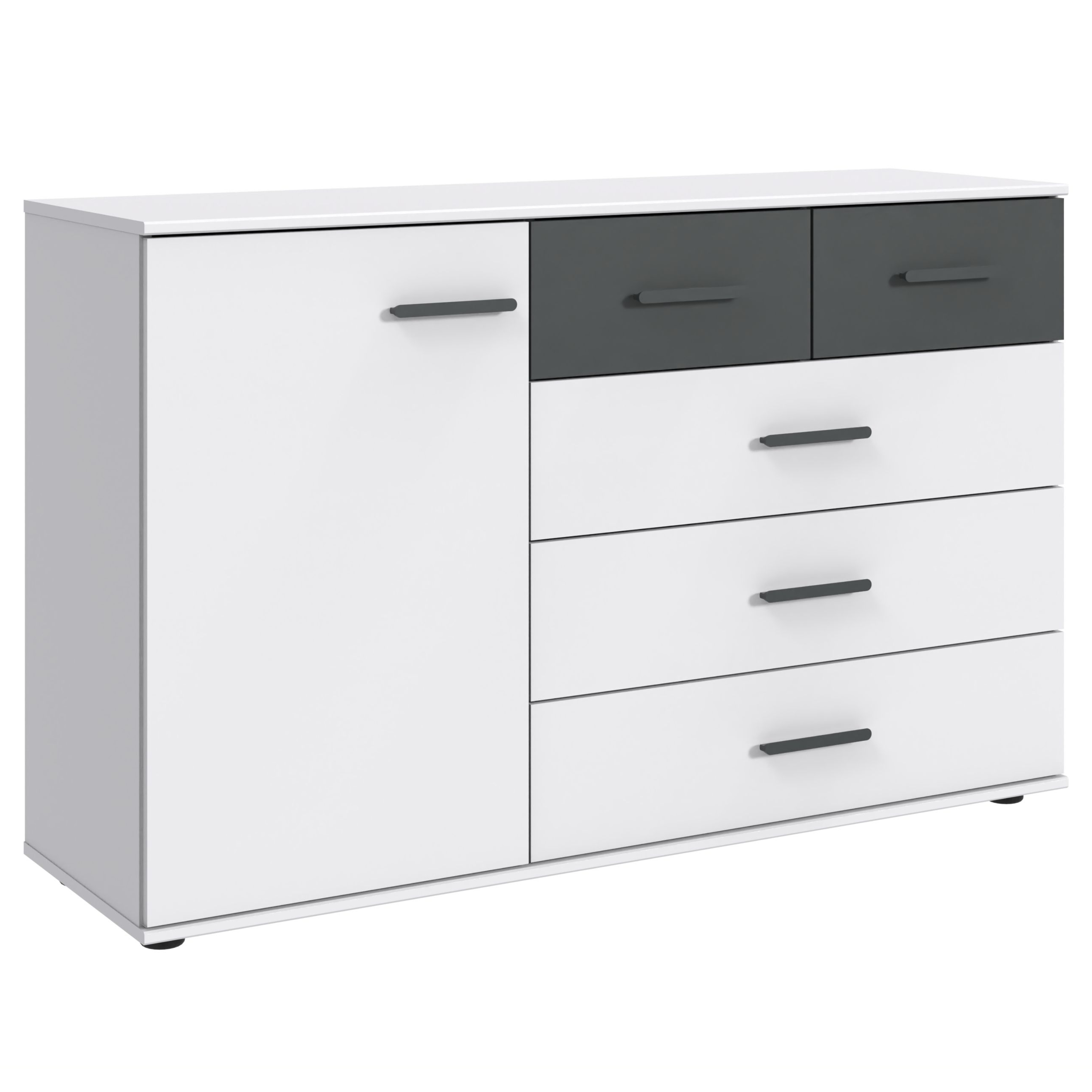 Poskytuje prostor za dvířky a ve pěti zásuvkách, který poslouží nejen k odložení oděvů, ale i pro různé drobnosti. Stylové úchytky usnadňují celkovou manipulaci. Povrch komody se vyznačuje snadnou údržbou.