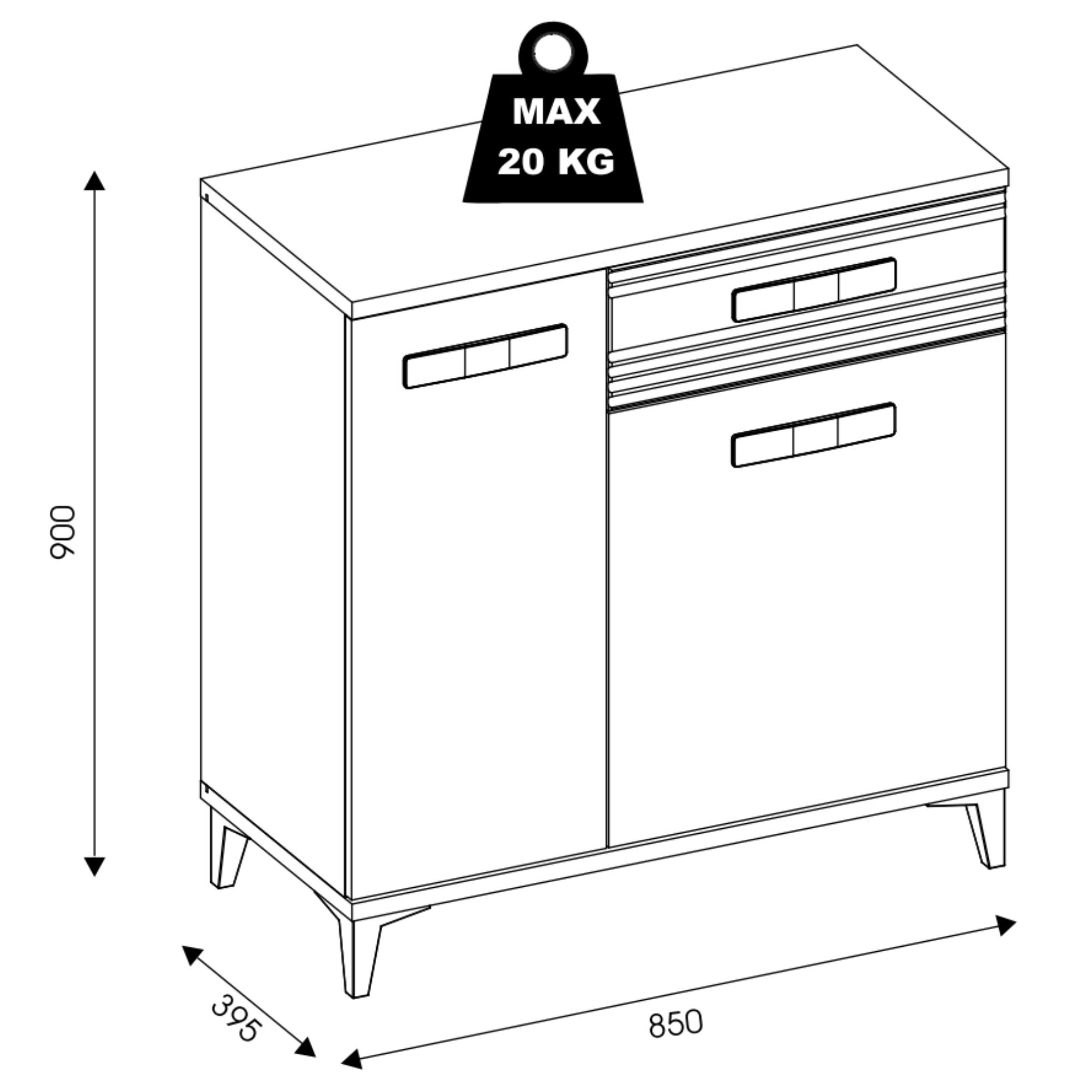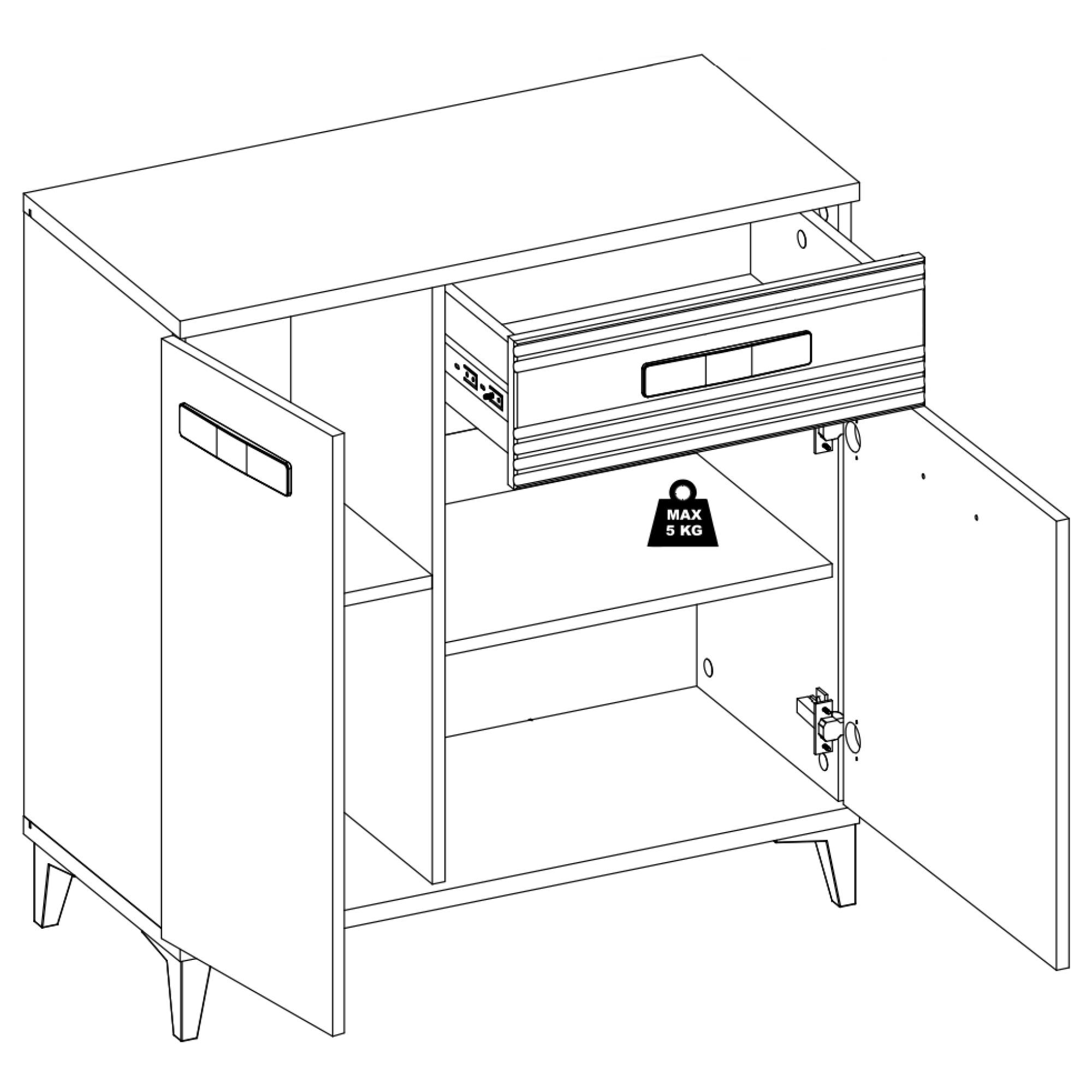 Úložný prostor se skládá z jedné zásuvky a dvou postranních prostorů s policemi, takže vše potřebné budete mít vždy pohromadě. Manipulaci dvířek vám navíc usnadní mechanismus nerušeného zavírání SOFT CLOSE. Povrch komody se vyznačuje jednoduchou údržbou.