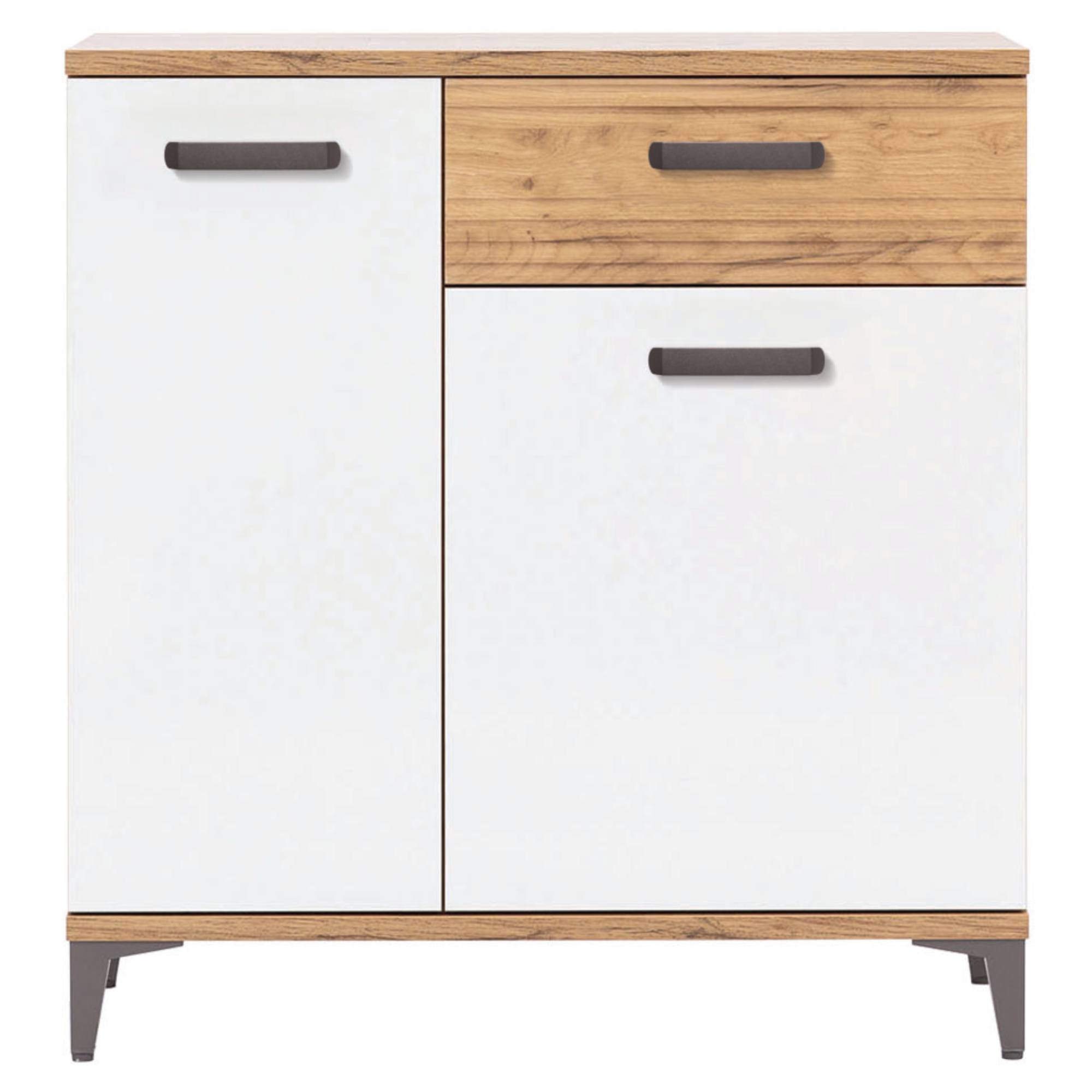Komoda DARCY SB2 stavěná ve skandinávském stylu vám poskytne funkční prostor pro uložení všeho potřebného, ale zároveň se stane ozdobou vašeho interiéru. Dokonalé spojení přírodního dekoru zlatého řemeslného dubu a alpské bílé vytvoří ve vašem obývacím pokoji reprezentativní vzhled.
