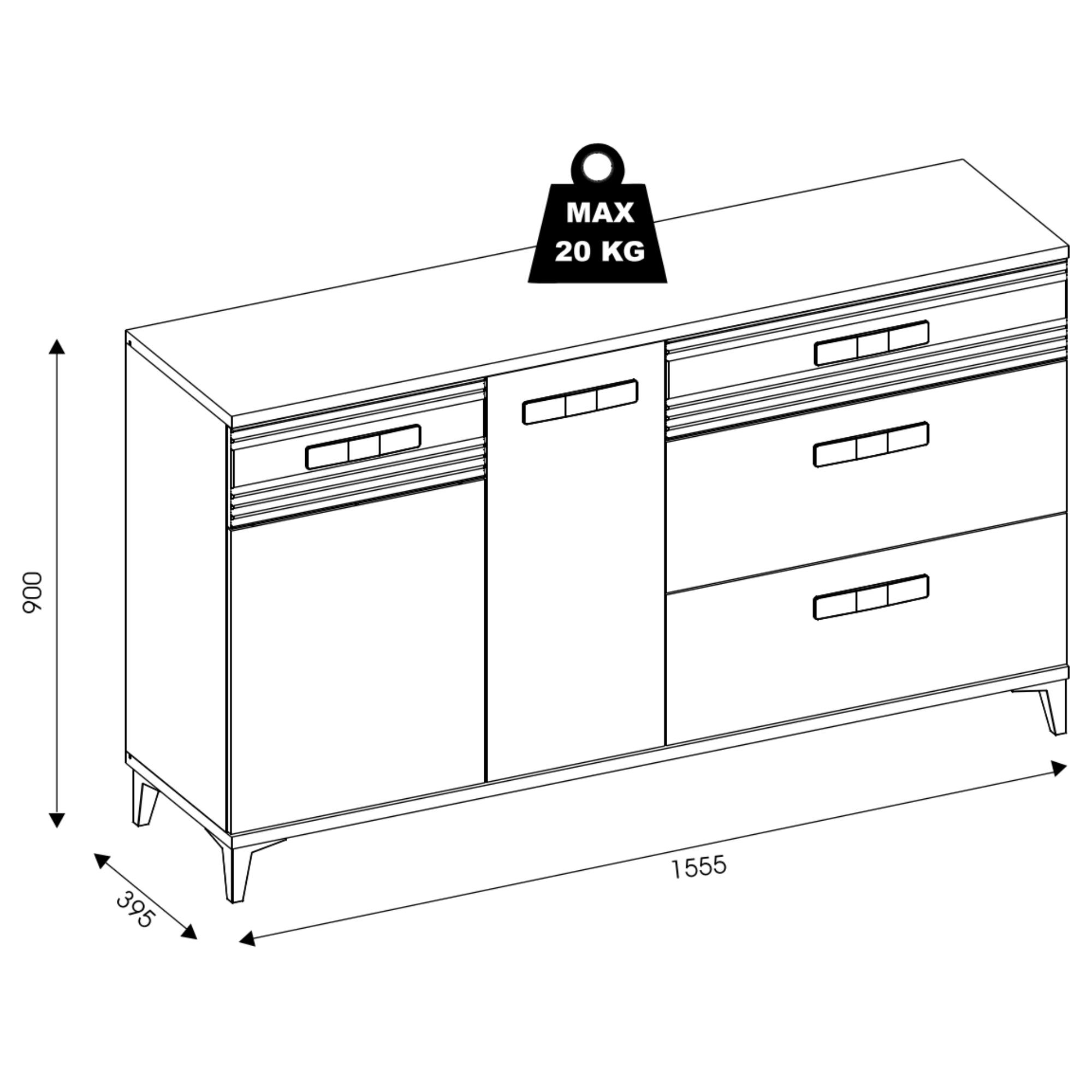 Úložný prostor se skládá z tří zásuvek a jednoho prostoru s policí, takže vše potřebné budete mít vždy pohromadě. Manipulaci dvířek vám navíc usnadní mechanismus nerušeného zavírání SOFT CLOSE. Povrch komody se vyznačuje jednoduchou údržbou.