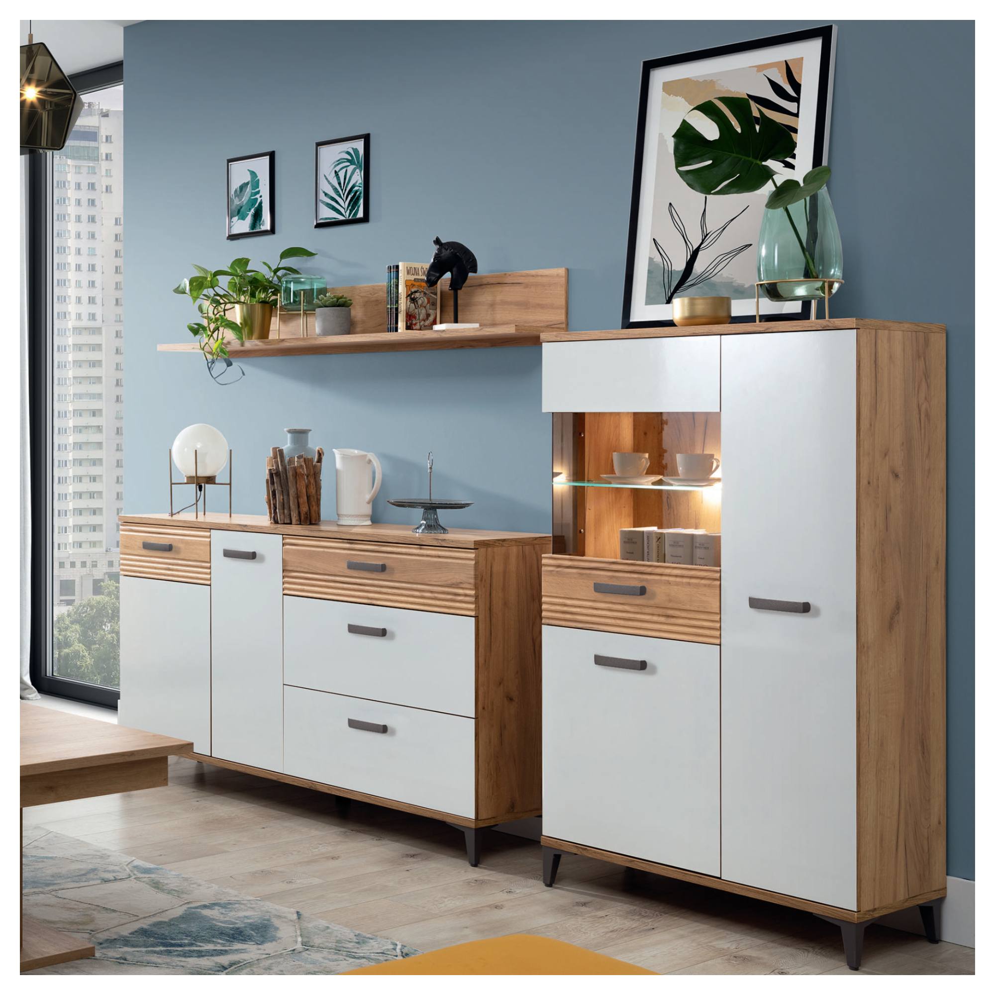 Komoda DARCY SB4 - zlatý řemeslný dub/alpská bílá lesklá