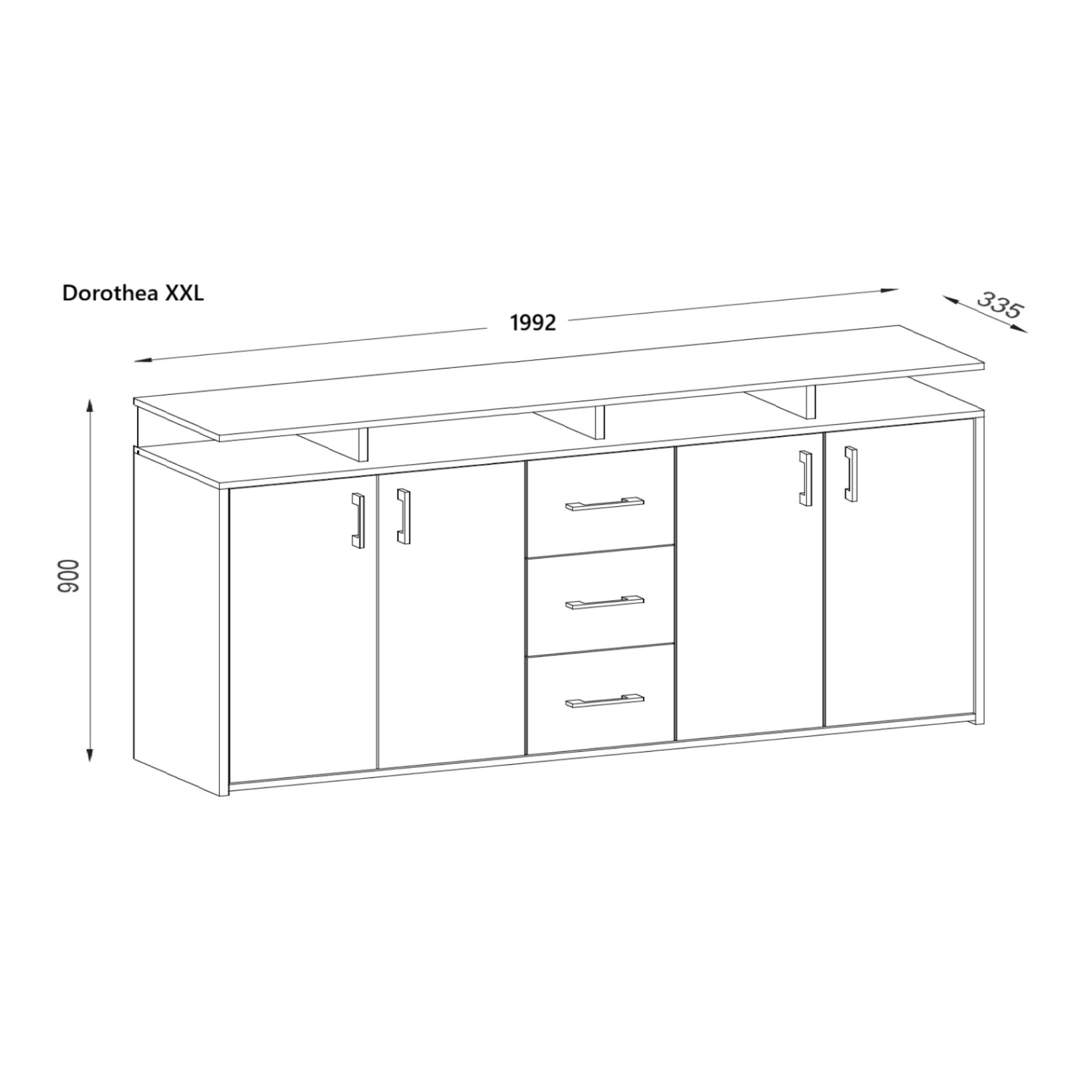 Komoda DOROTHEA XXL vyvedena v nadčasovém designu nabízí dostatek úložného prostoru, který najde využití v každé domácnosti.