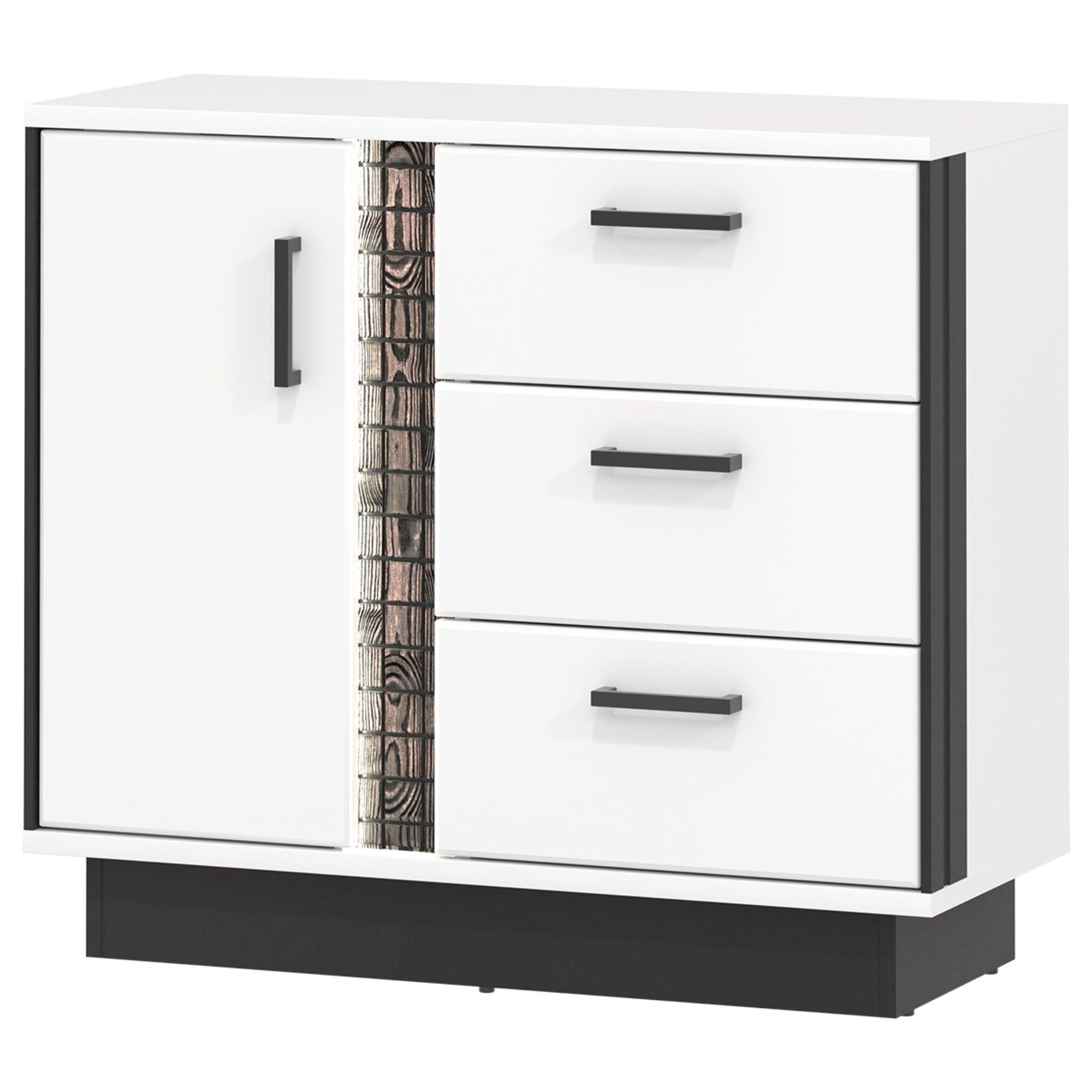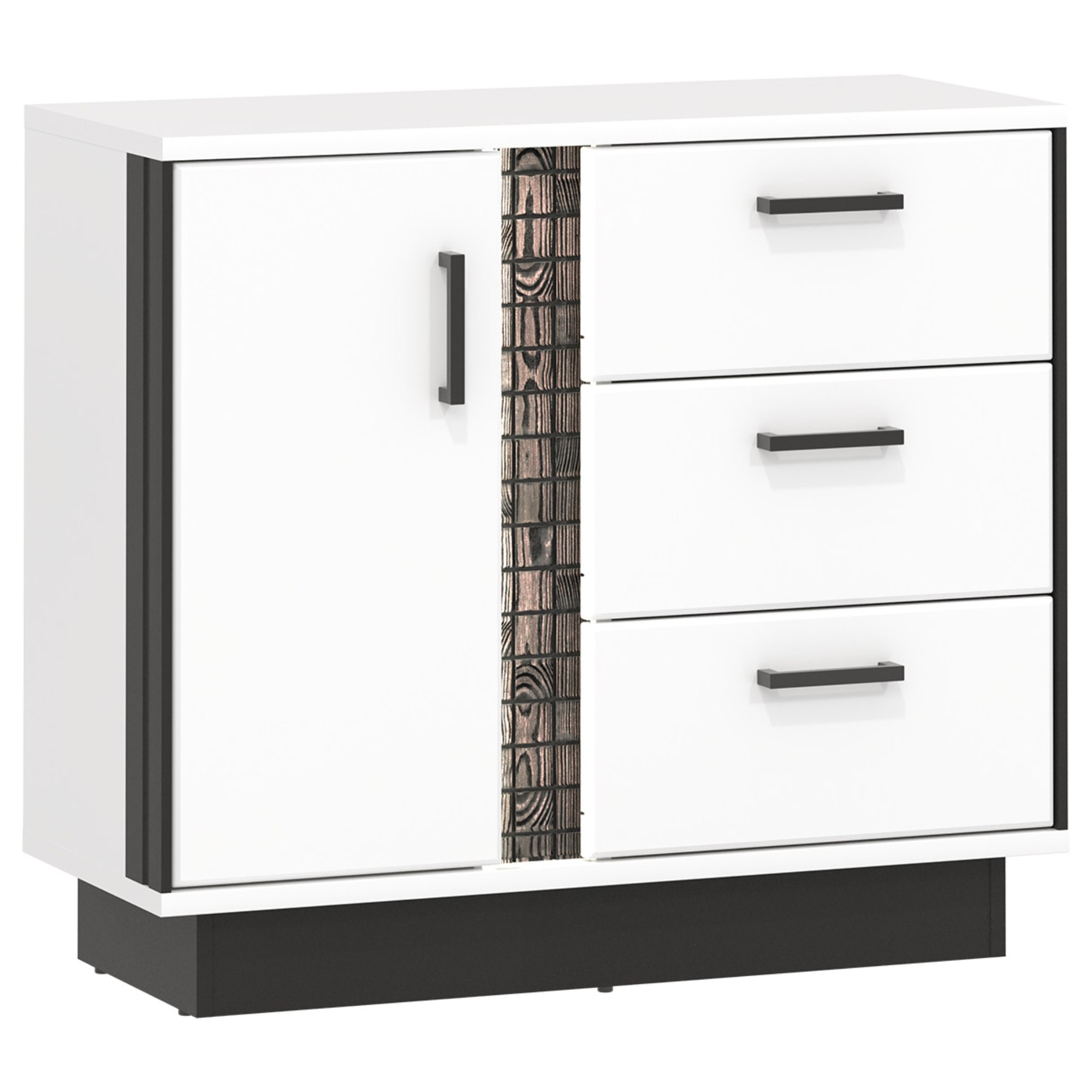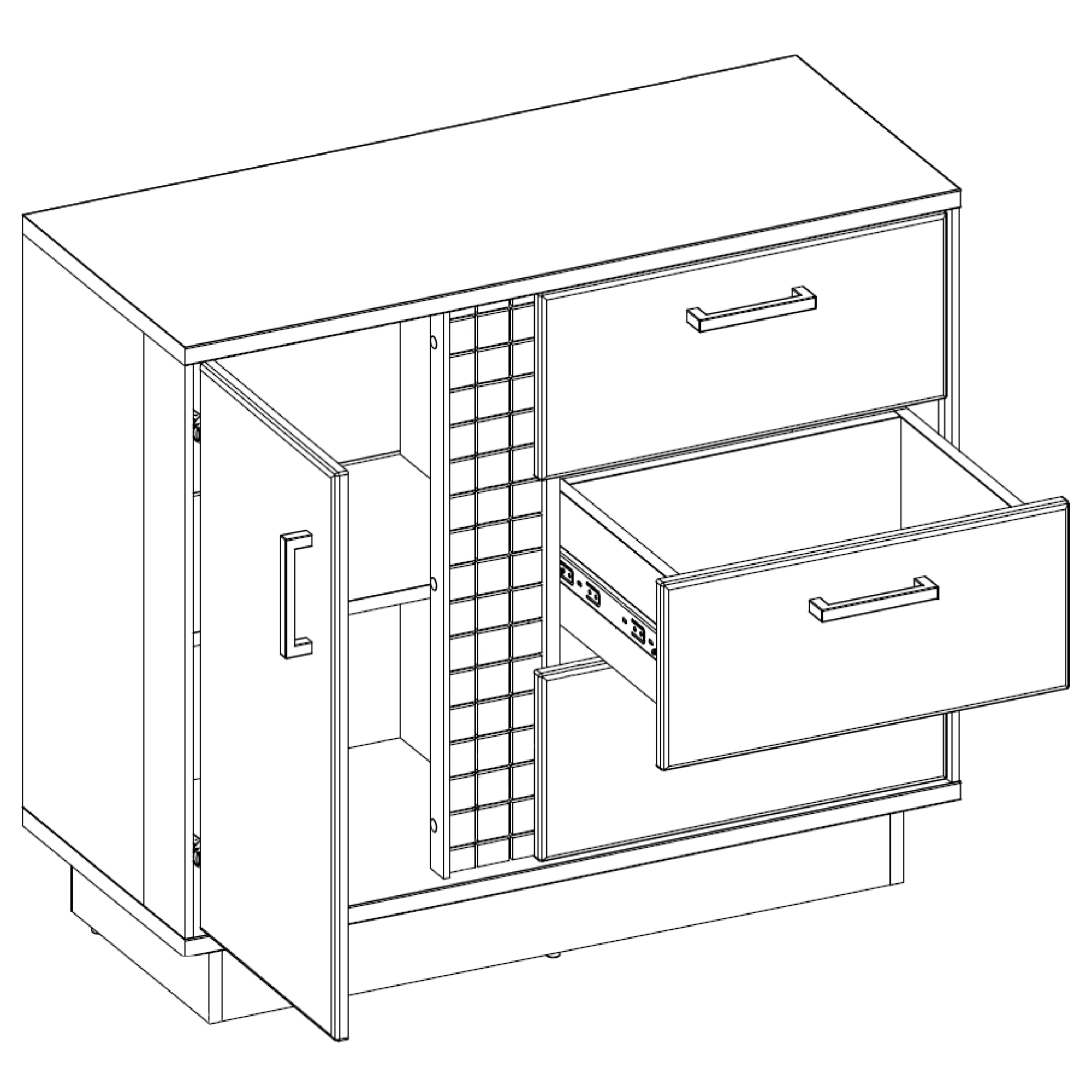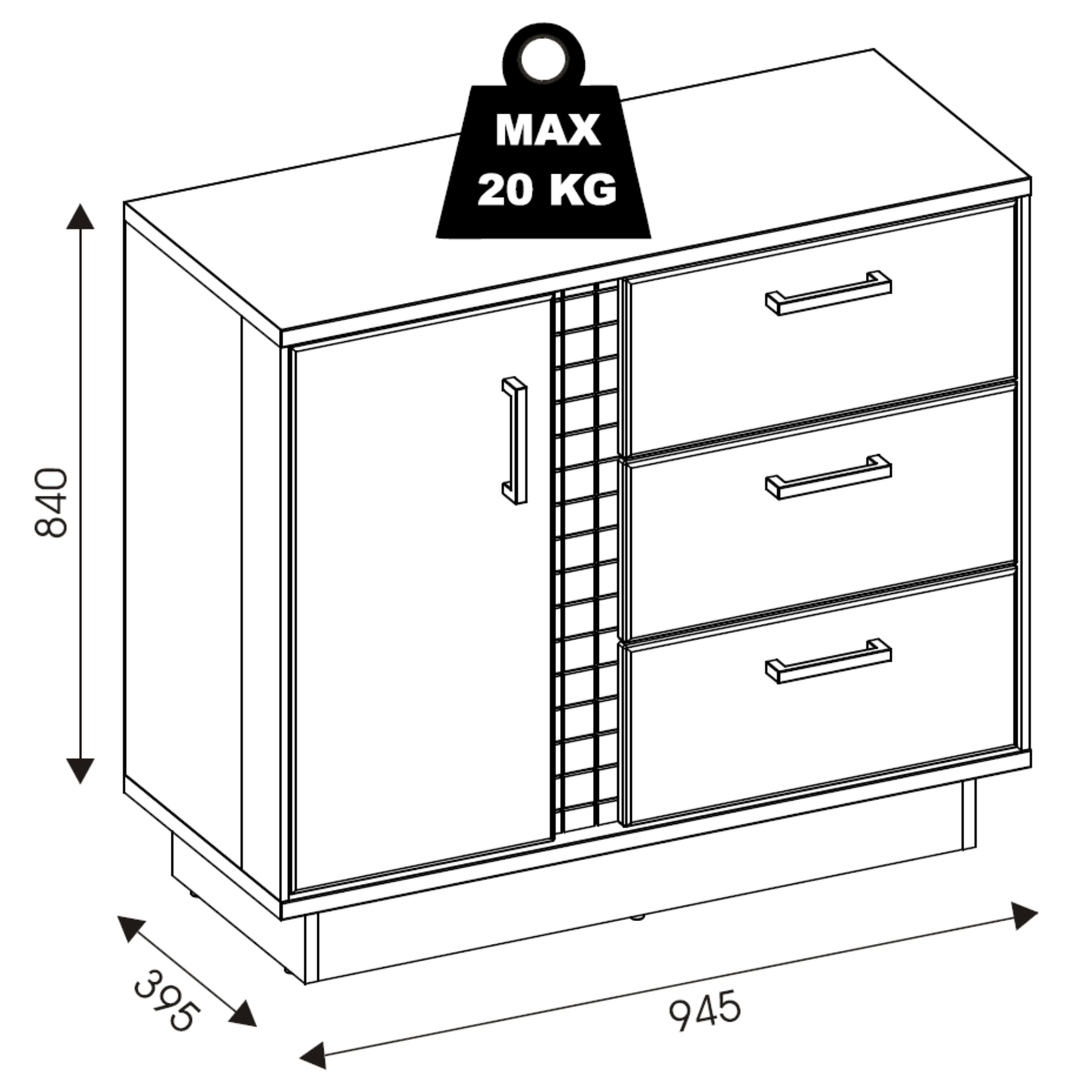 Komoda poskytuje dostatek krytého úložného prostoru. Díky zásuvkám budete mít přehled kde, co máte a vyhnete se tak zoufalému přehrabování. Za dvířky je elegantně uschovaná police, která zajistí perfektní organizaci uvnitř komody. Dvířka i zásuvky jsou opatřeny systémem SOFT CLOSE, který se postará o jejich tiché dovírání. Na horní desce se budou vyjímat vaše dekorace, či květiny, které celou místnost příjemně oživí a zútulní. Komoda GRACIA zvládne být zajímavým solitérem, ale také součást stejnojmenné kolekce, která vytvoří z vašeho obývacího koutku či jídelny příjemné místo.