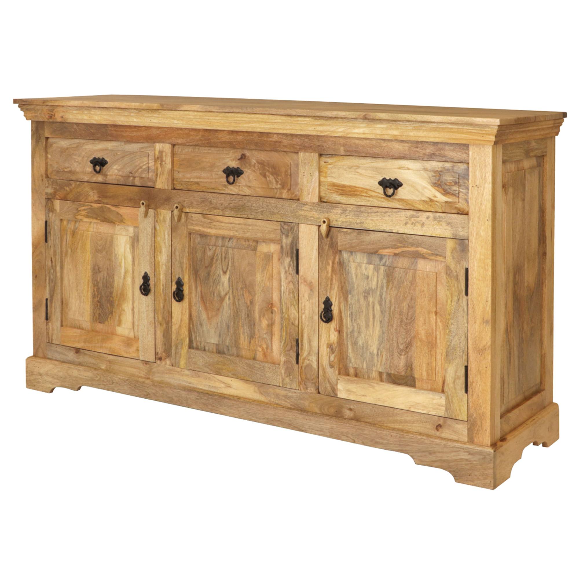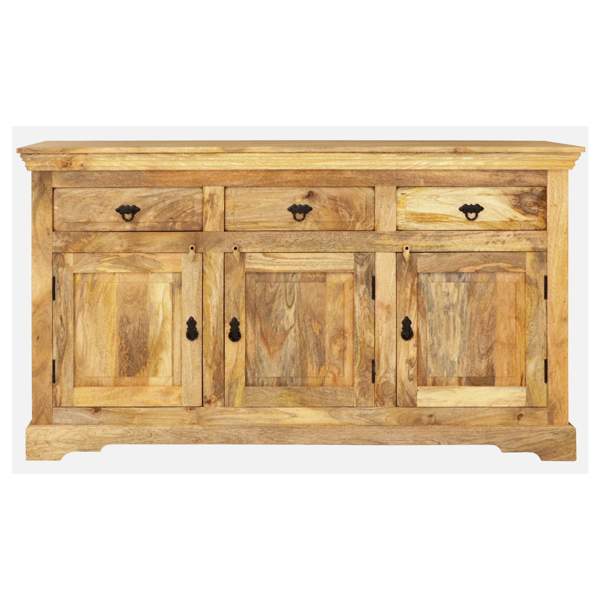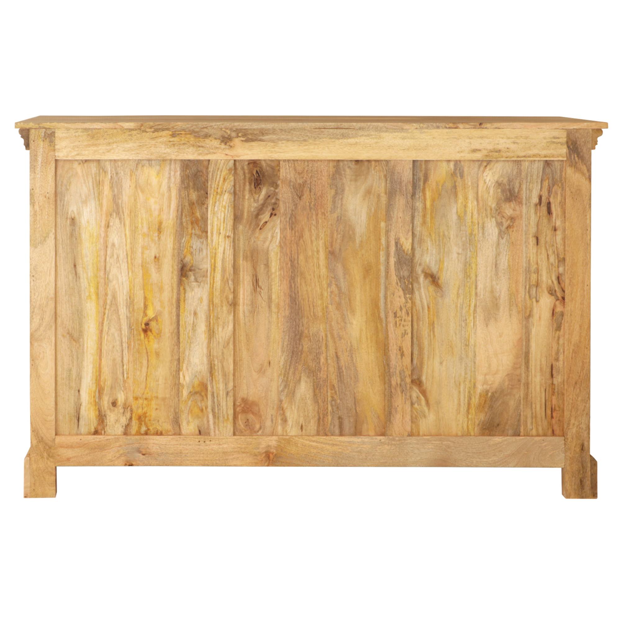 Konstrukce stolku je vyrobena z masivního mangového dřeva v přírodním zpracování bez povrchové úpravy. Díky použitému materiálu je komoda nejen pevná, ale také odolná proti vodě, udržitelná a má dlouhou životnost. Přirozená kresba dřeva, zbarvení a přiznané nedokonalosti dodávají na jedinečnosti každého kusu.