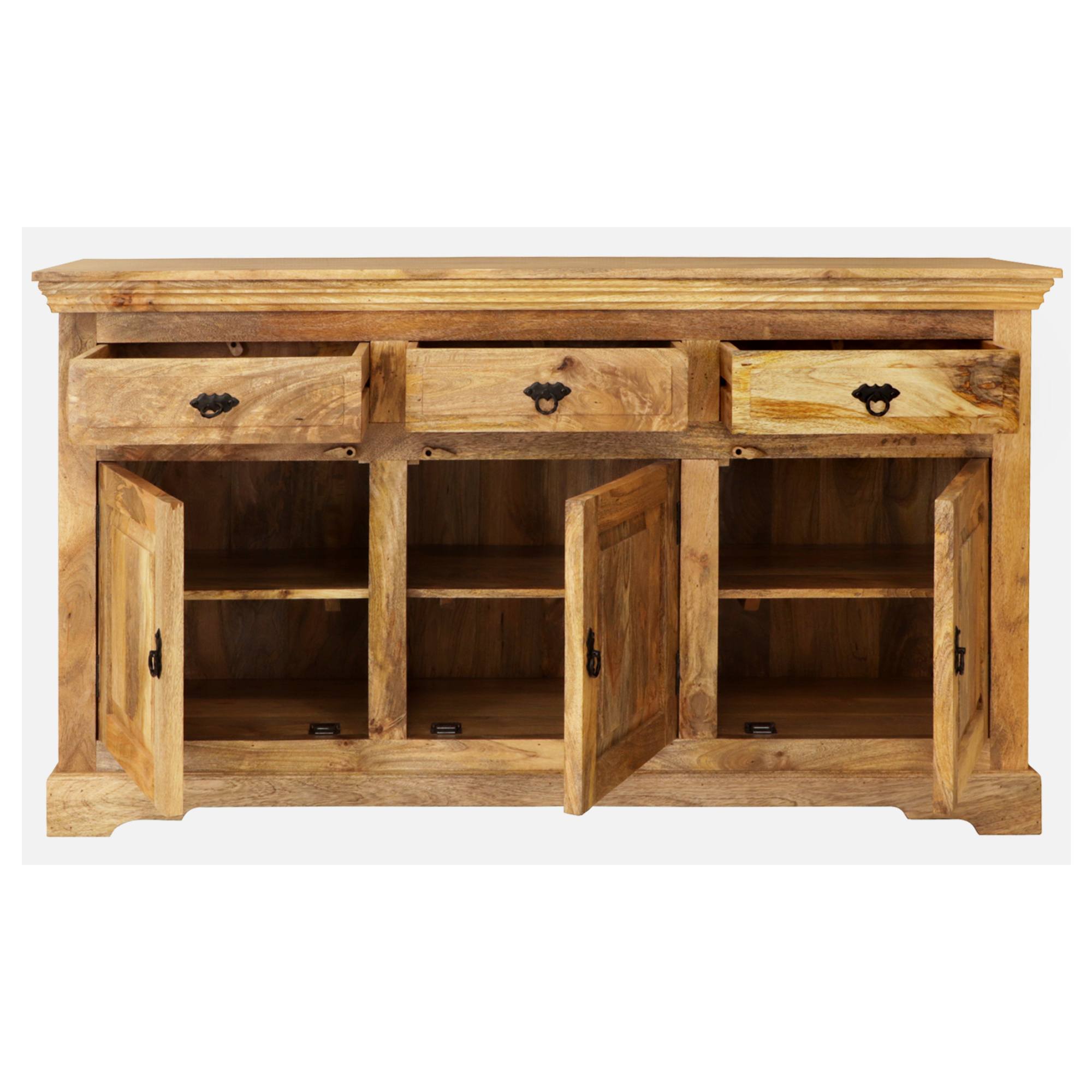 Nadčasová komoda GURUNU 160 KMH s množstvím dekorativních detailů představuje praktické řešení úložného prostoru, které můžete využít téměř v jakékoli místnosti vašeho domova.