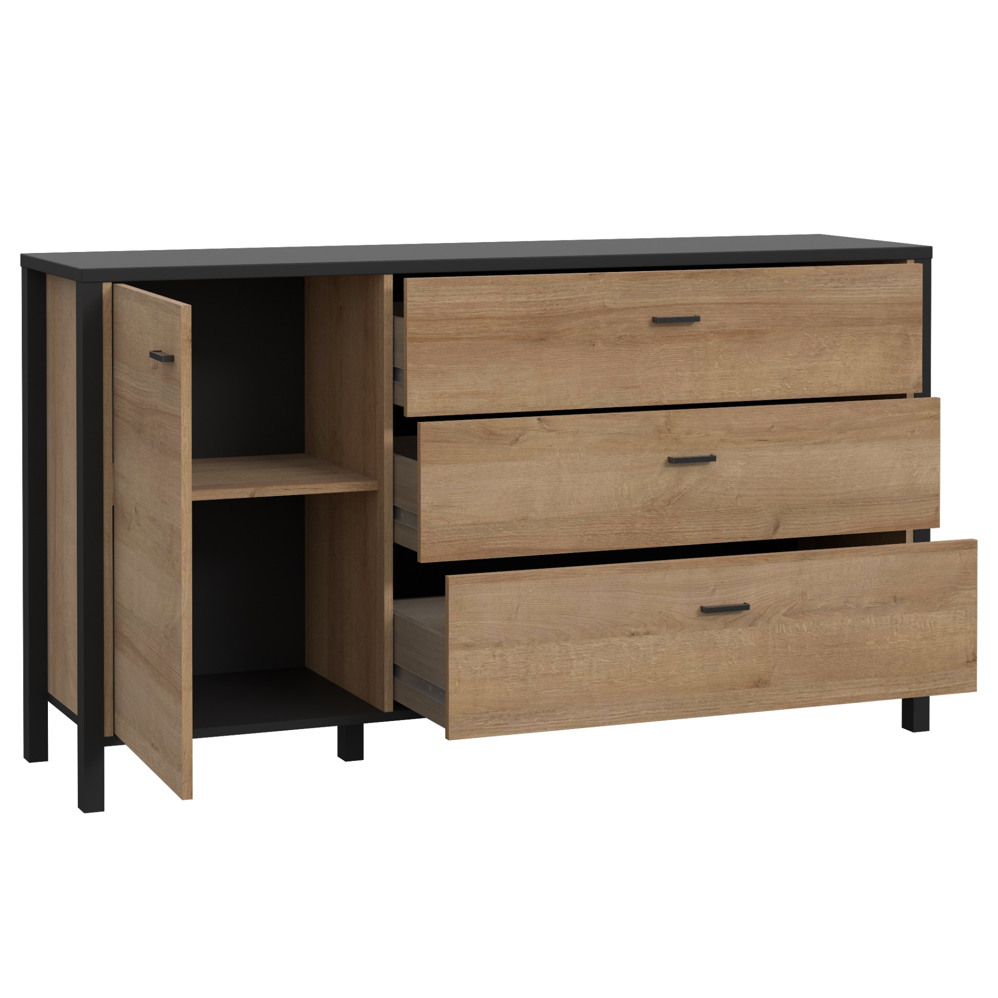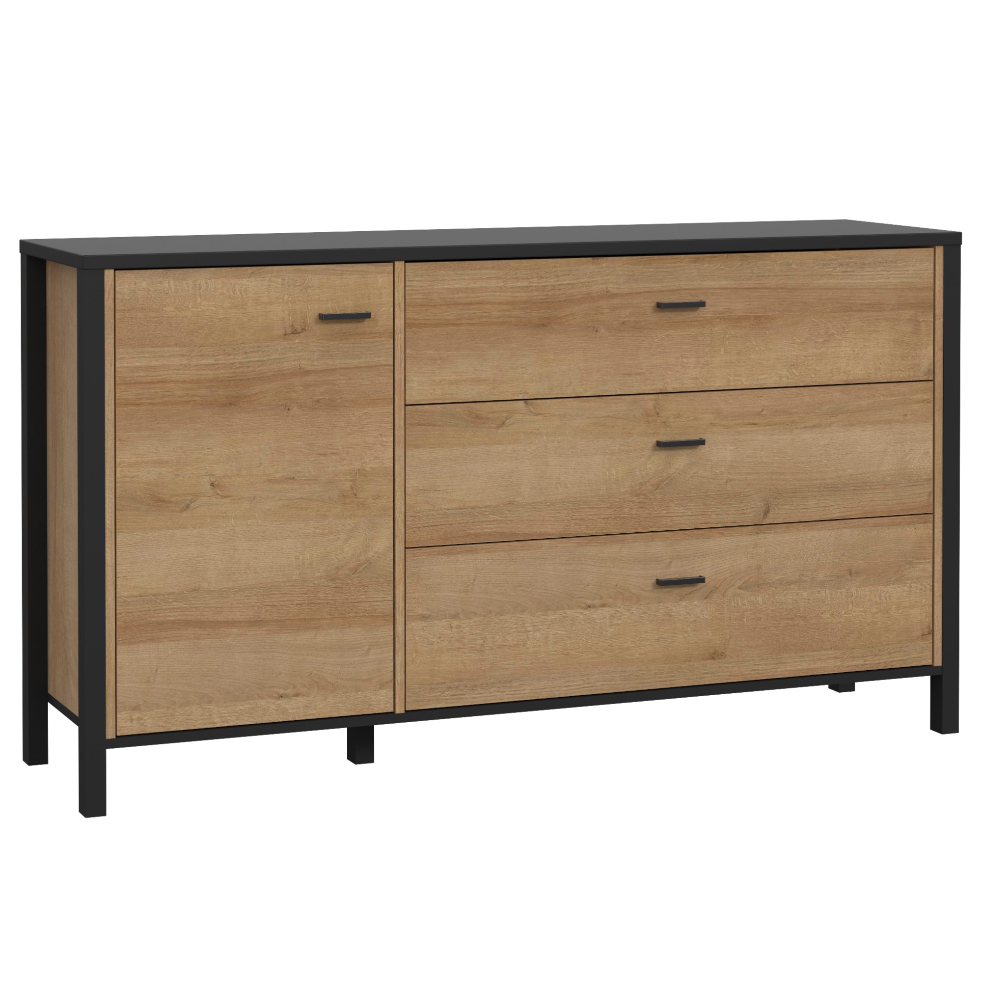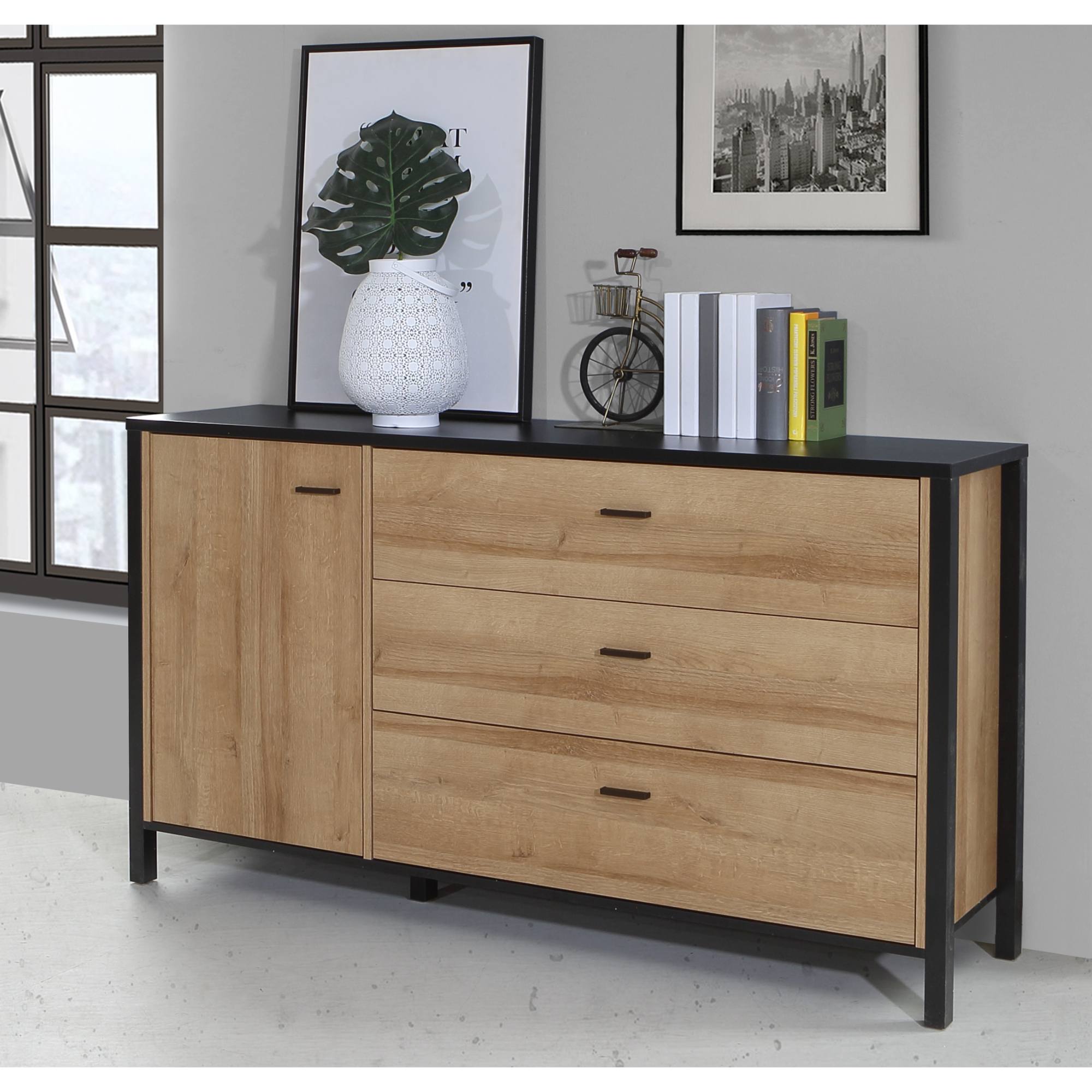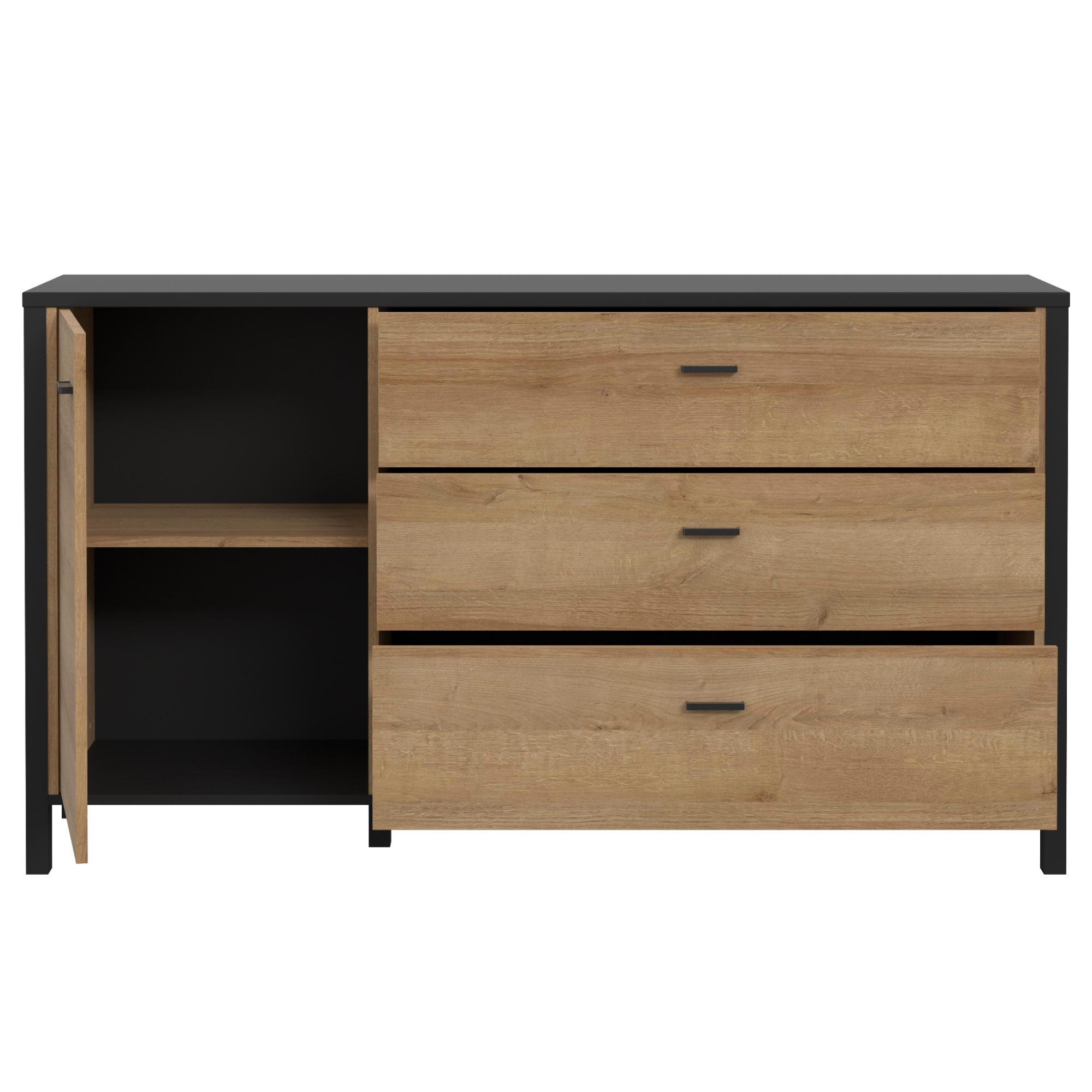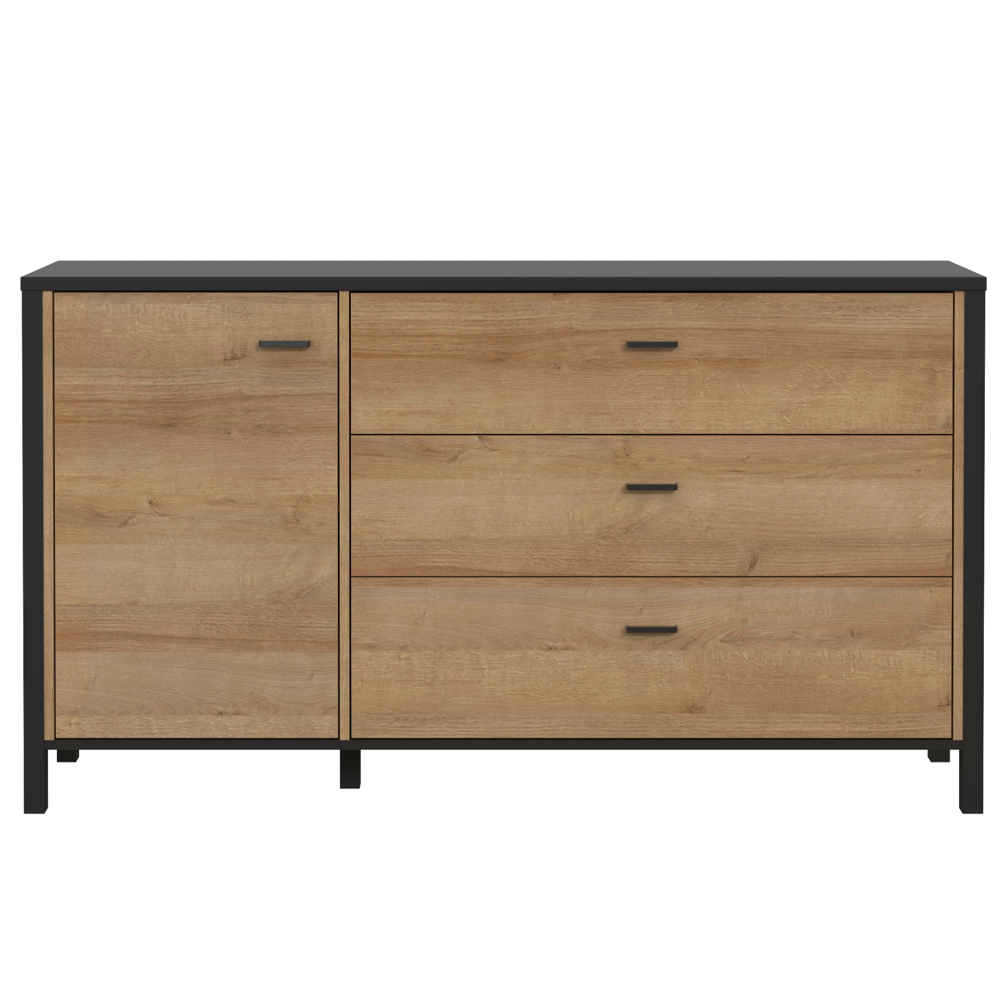 Komoda HIGH ROCK 3 - černá/dub riviera
