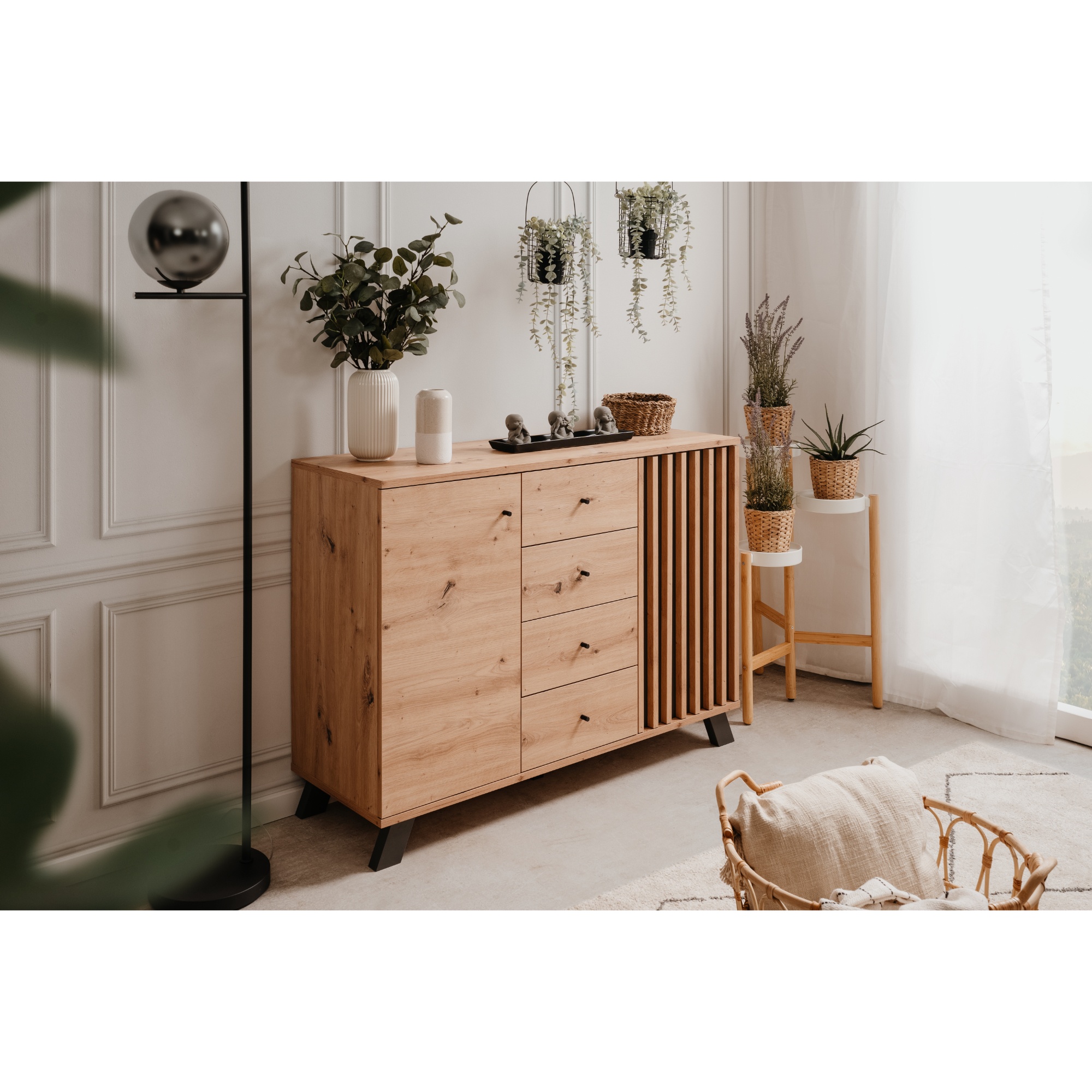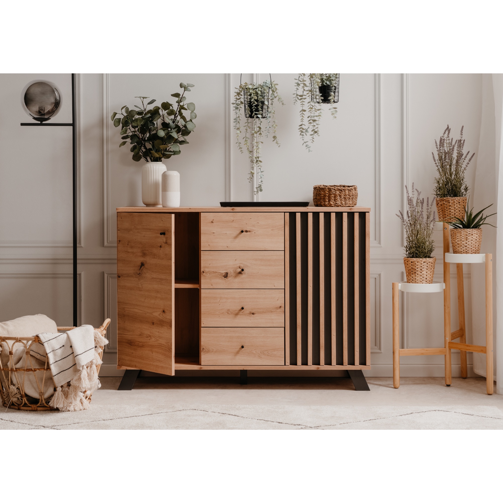 Komoda JAYSON 01B perfektně zapadne do moderního obývacího pokoje.