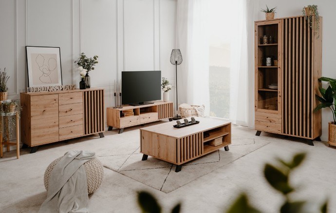 Komoda JAYSON 51C perfektně zapadne do moderního obývacího pokoje.