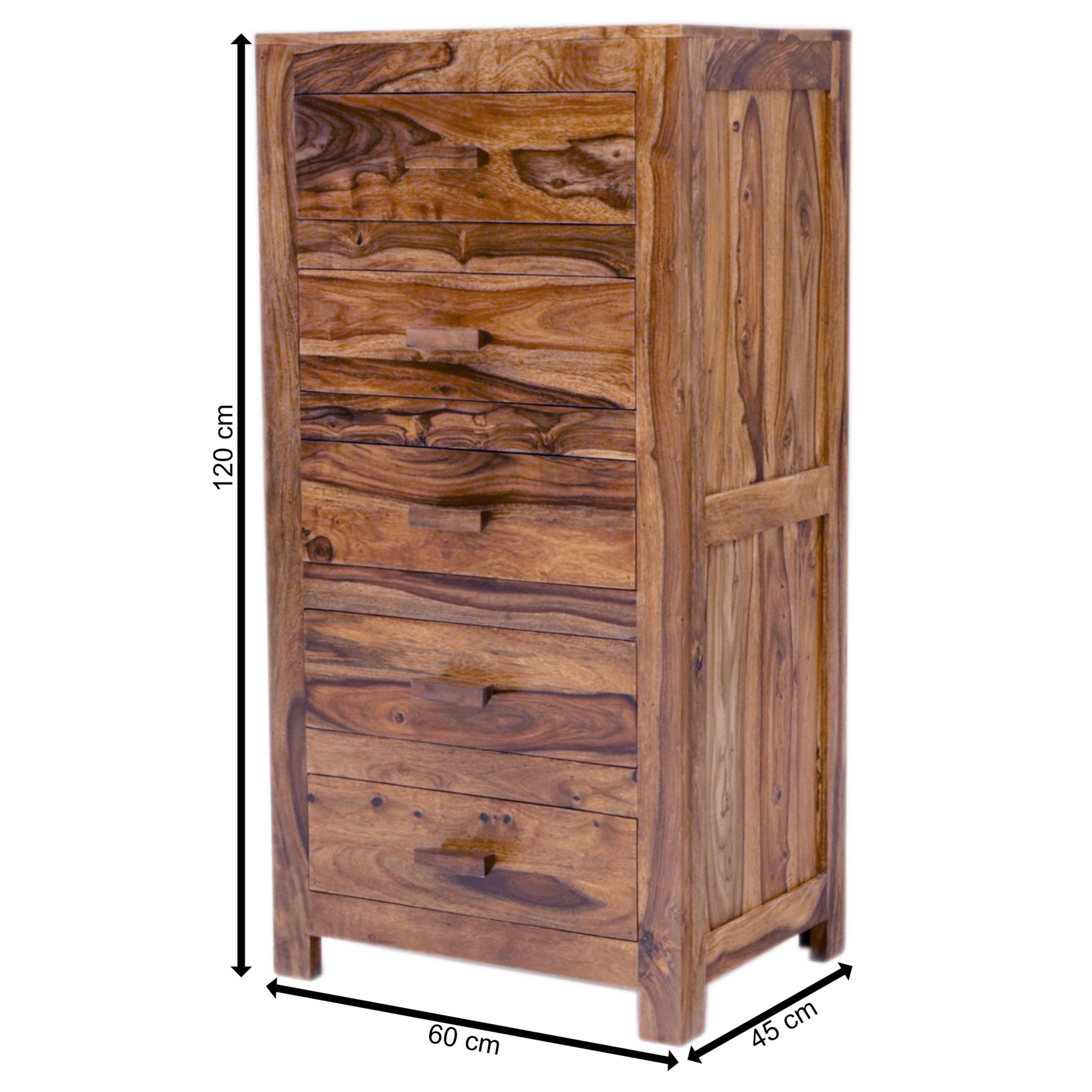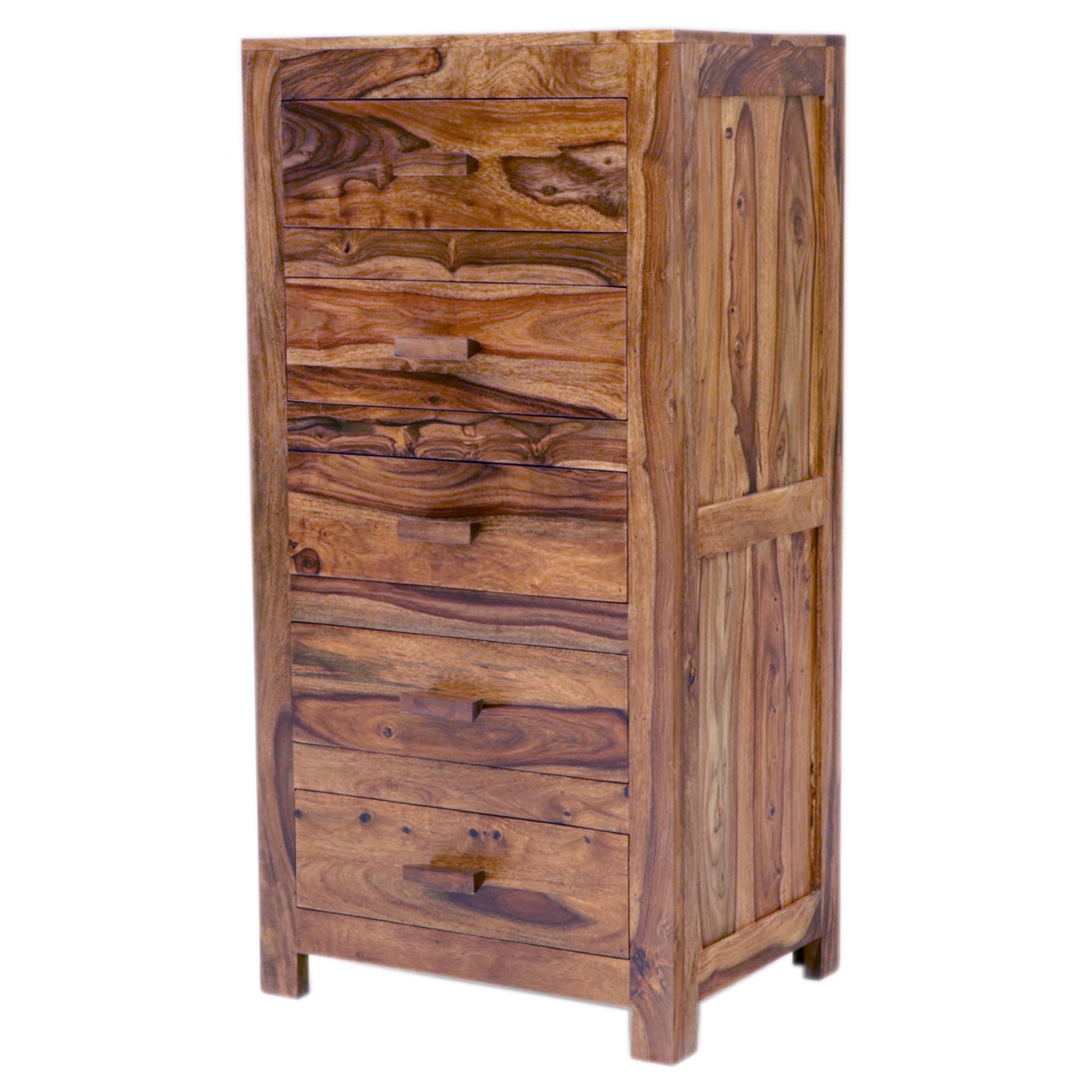 Komoda je vyrobena z masivního dřeva shishamu, velmi odolné exotické dřeviny rovněž známé jako palisandr. Ten vyniká svojí pevností a výraznou kresbou dřeva s unikátními barevnými přechody, které se kus od kusu liší. Každý kus je tak svým způsobem naprosto jedinečný