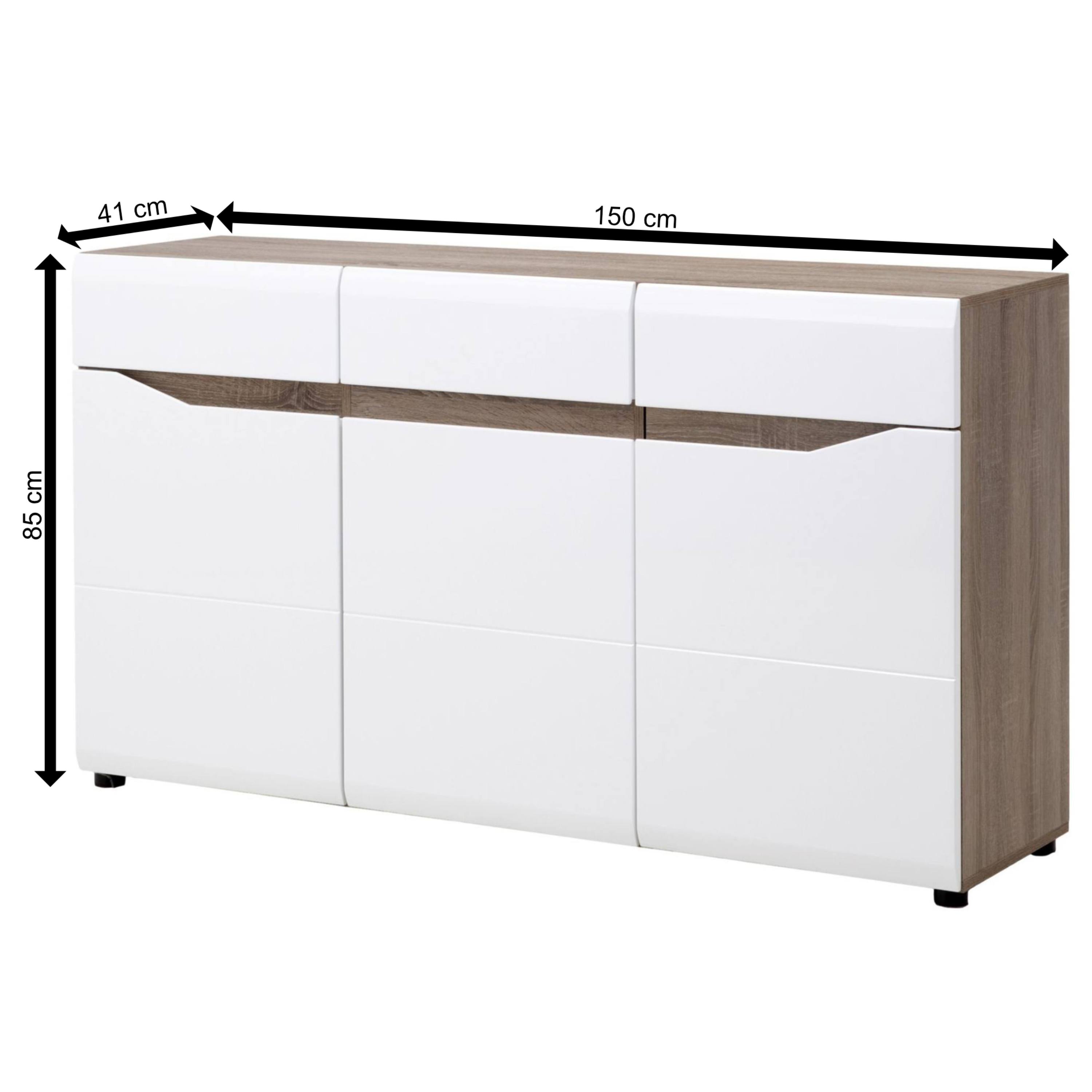 Komoda LUCY LI 3 - dub sonoma truffel/bílá vysoký lesk