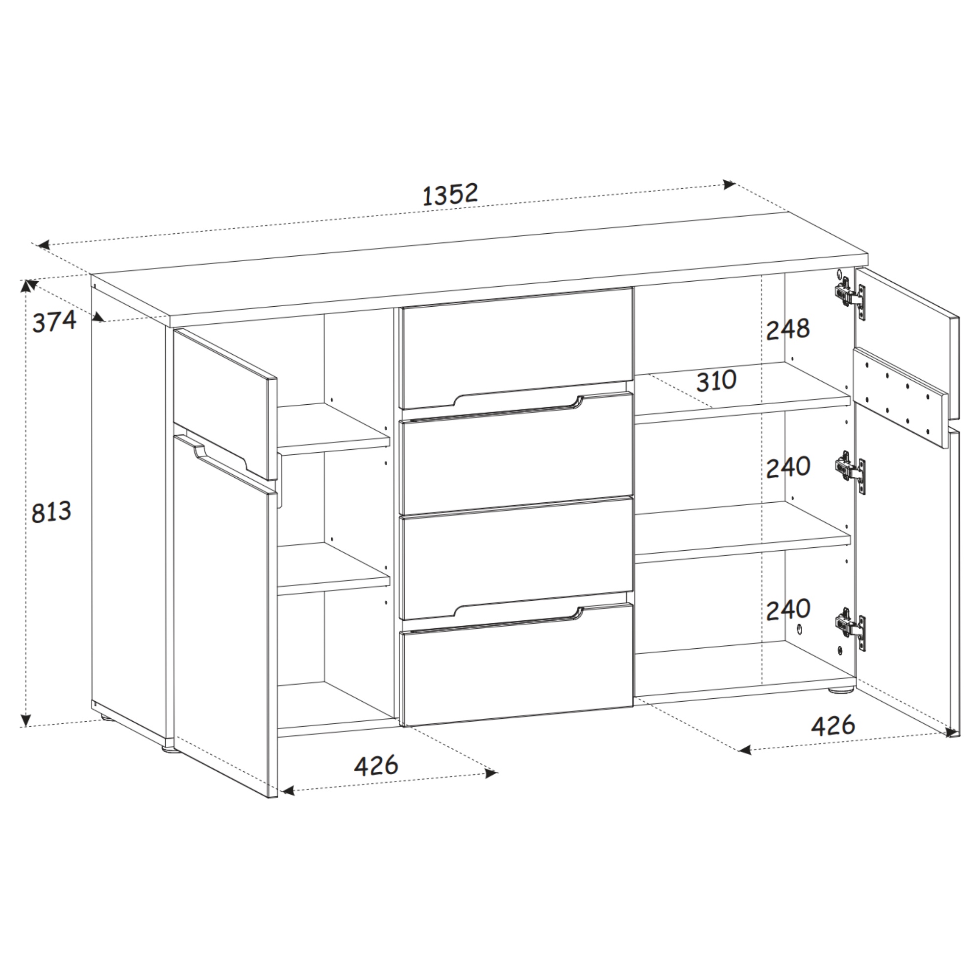 Komoda MEMPHIS poskytne dostatek krytého prostoru pro vše potřebné.