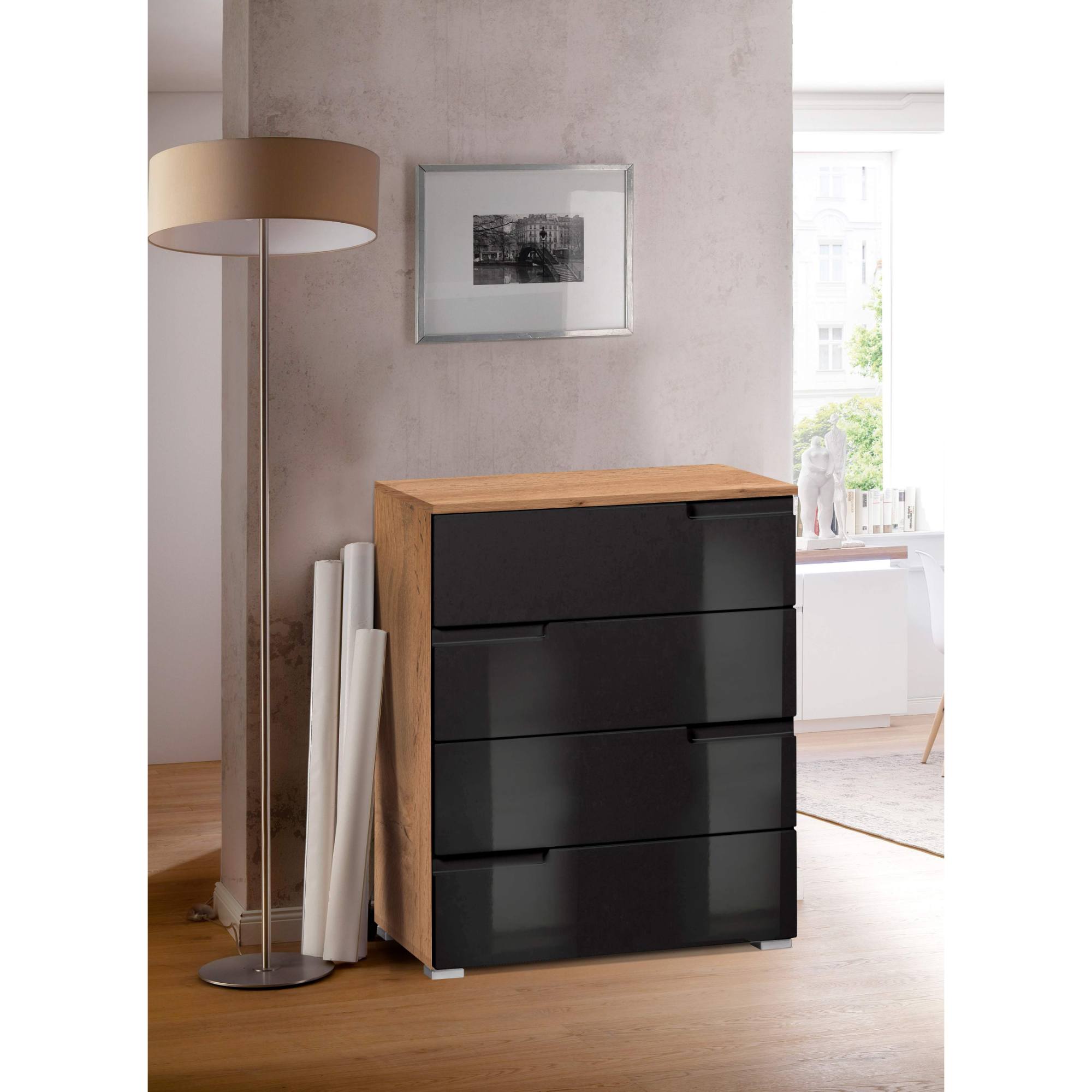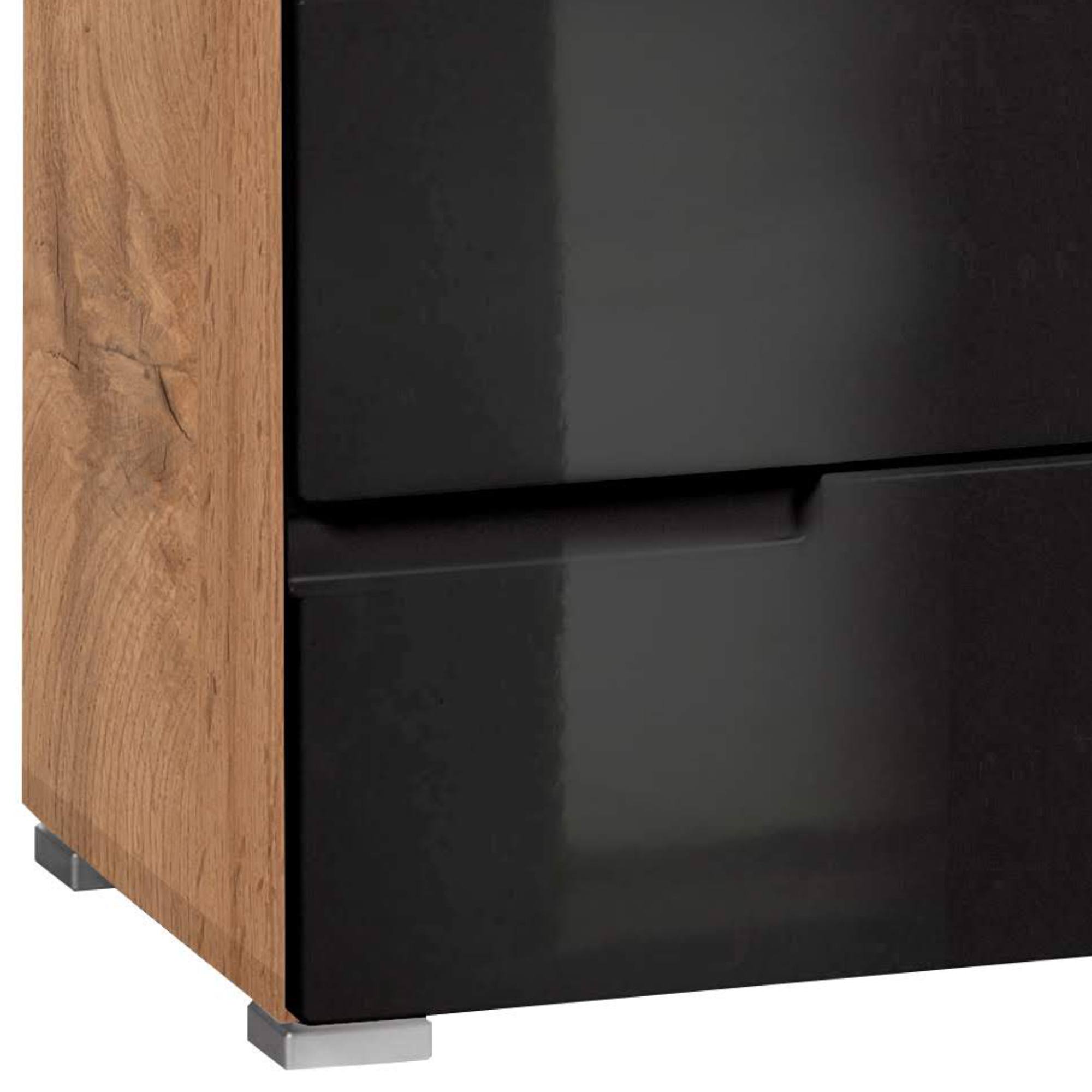 Komoda MOON 1 - dub wotan/černá vysoký lesk