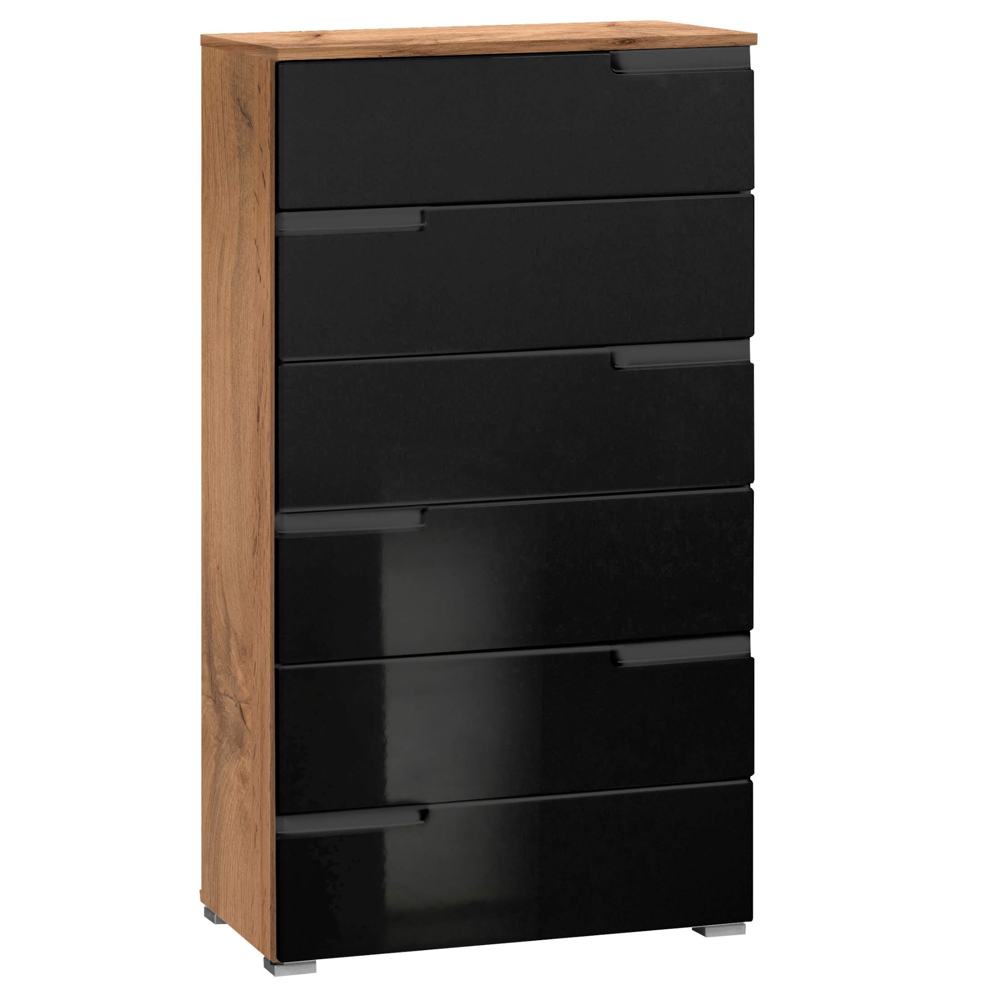 Komoda MOON 2 v minimalistickém stylu ozdobí každý moderní interiér. Disponuje dostatečným úložným prostorem v podobě šesti zásuvek. Vyfrézované úchyty nijak neruší, a přesto usnadní celkovou manipulaci. Celá konstrukce je postavena na čtyřech stříbrných nohách. Komodu lze zakoupit v několika barevných a dekorových variantách.