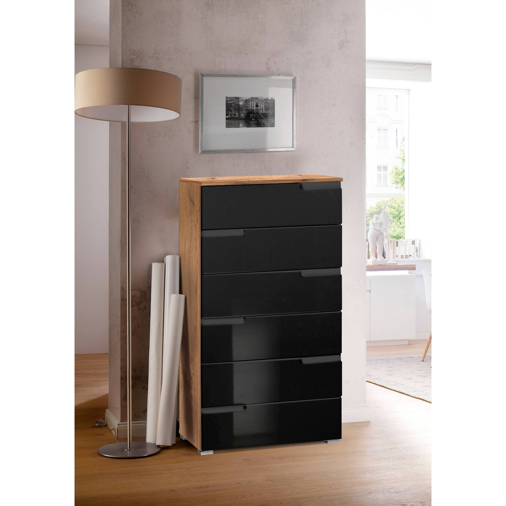 Komoda MOON 2 - dub wotan/černá vysoký lesk