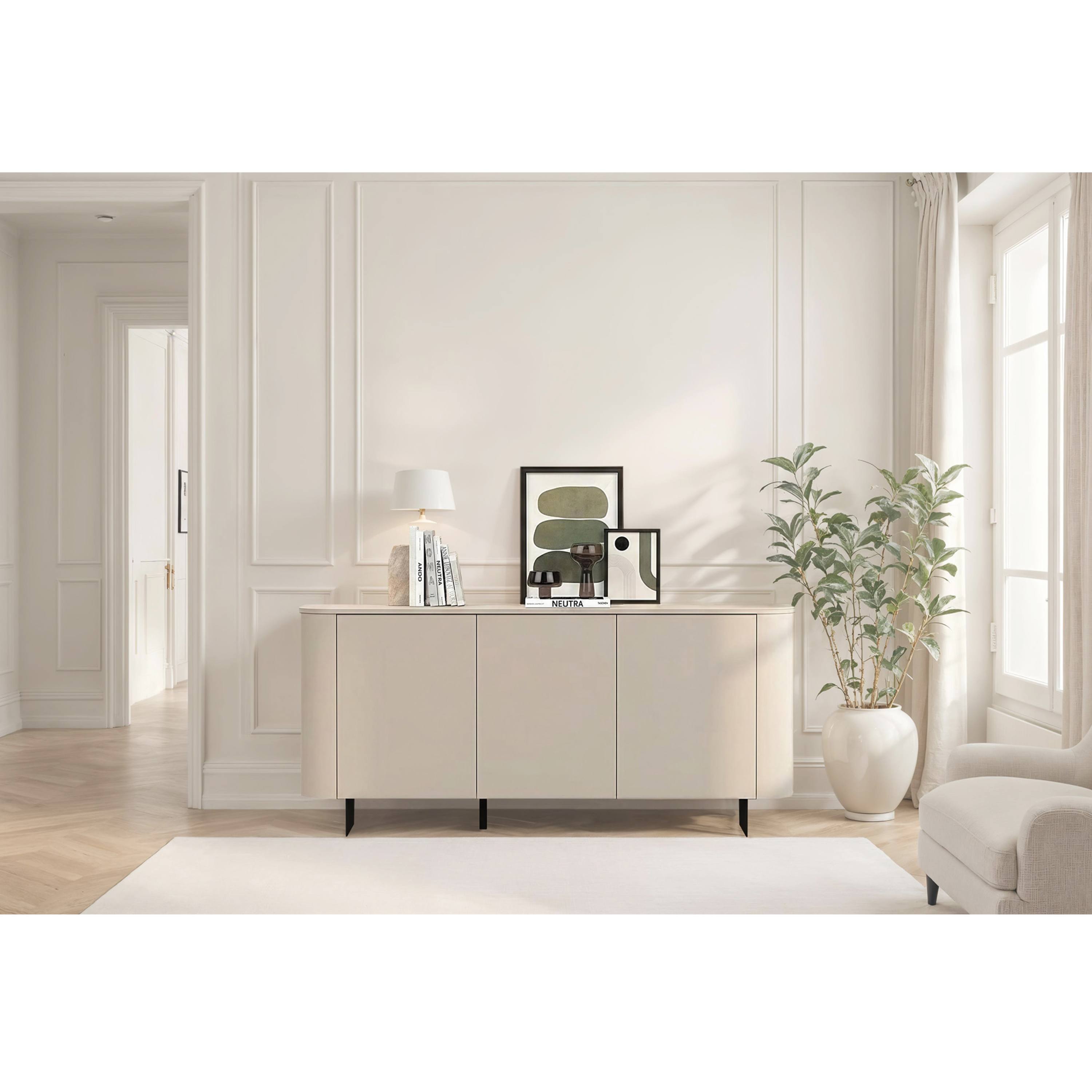 Komoda ORTISEI 3D v elegantním kašmírovém odstínu zaujme svým čistým designem, který působí jemně a moderně. Díky svému neutrálnímu provedení se snadno začlení do různých interiérů.