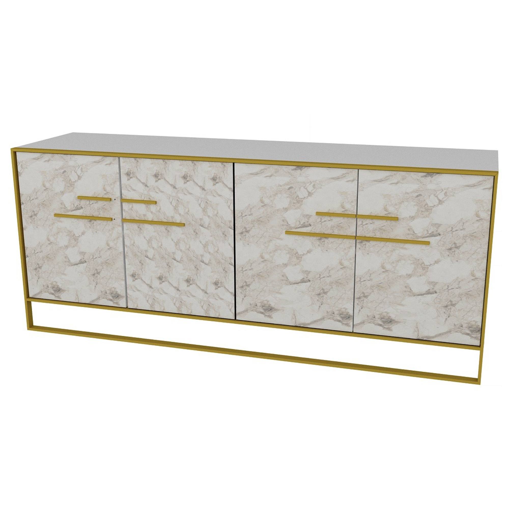 Disponuje otočnými dvířky, za kterými naleznete prostor, kde budete mít všechno vždy po ruce. Dvířka jsou opatřena úchytkami ve zlaté barvě, které vám usnadní manipulaci. Přední plochy jsou vyhotoveny v dekoru bílého mramoru. Komoda je vyrobena z laminovaného dřevěného materiálu, který se vyznačuje snadnou údržbou.