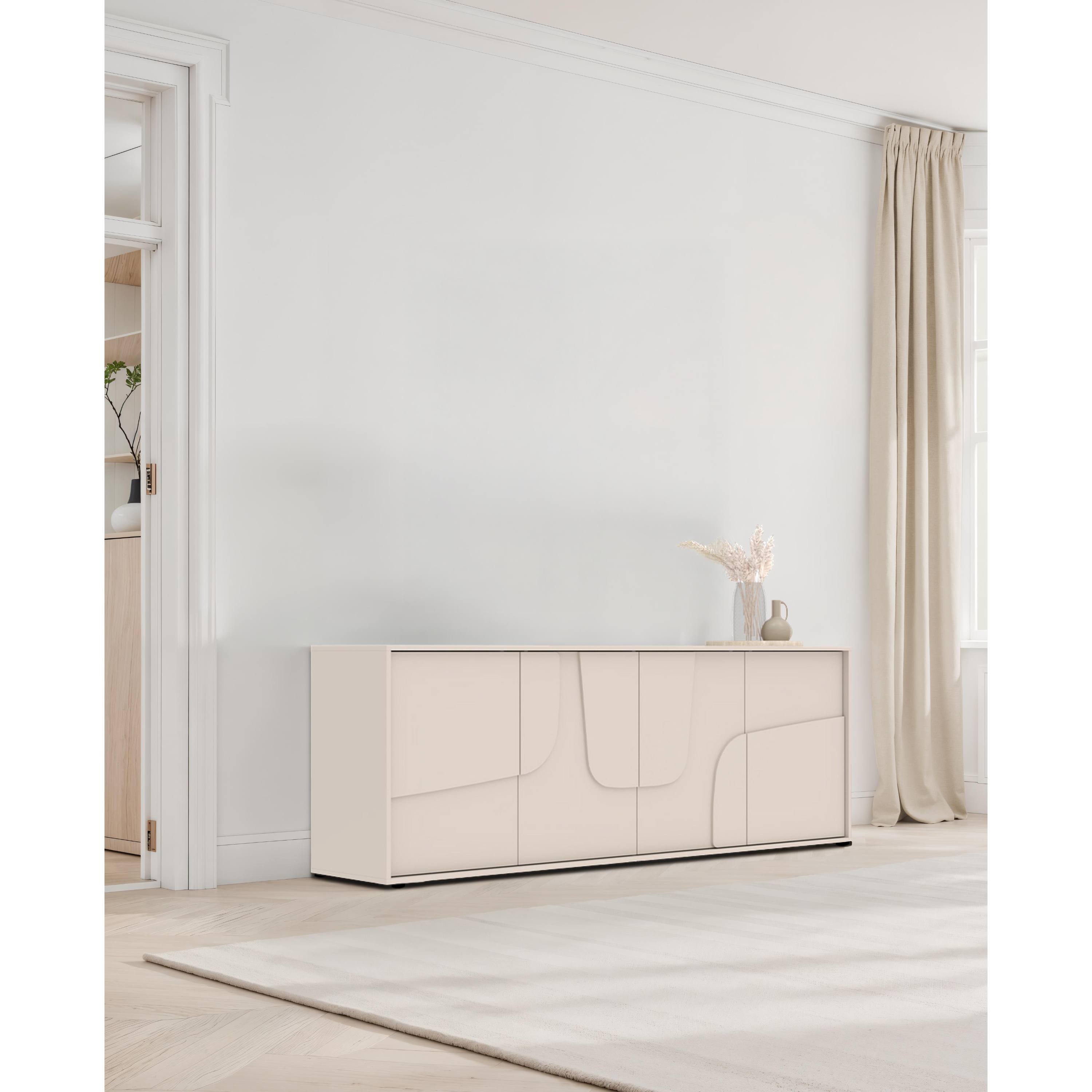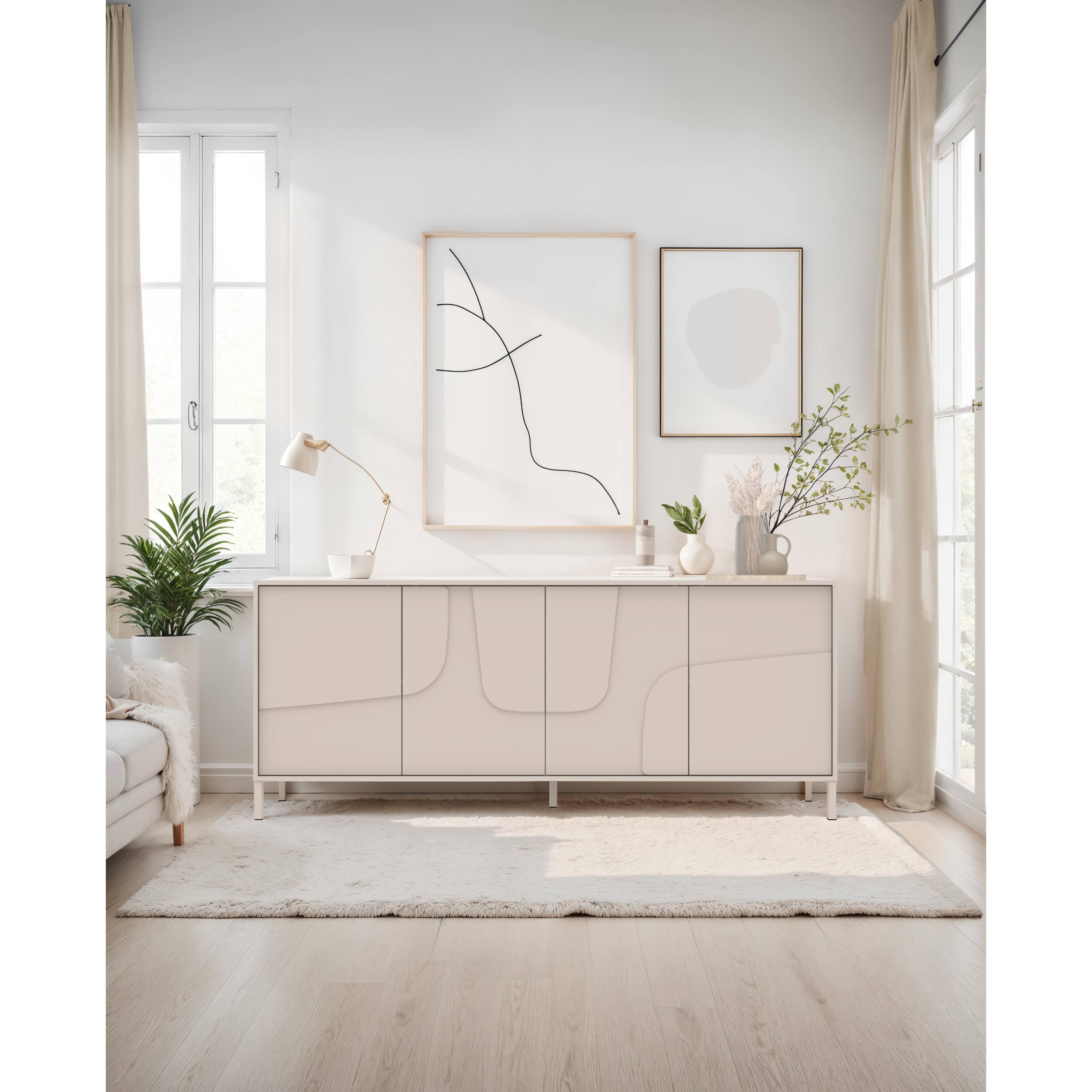 Komoda STONE 4DV s minimalistickými rysy perfektně zapadne do každé moderní domácnosti.
