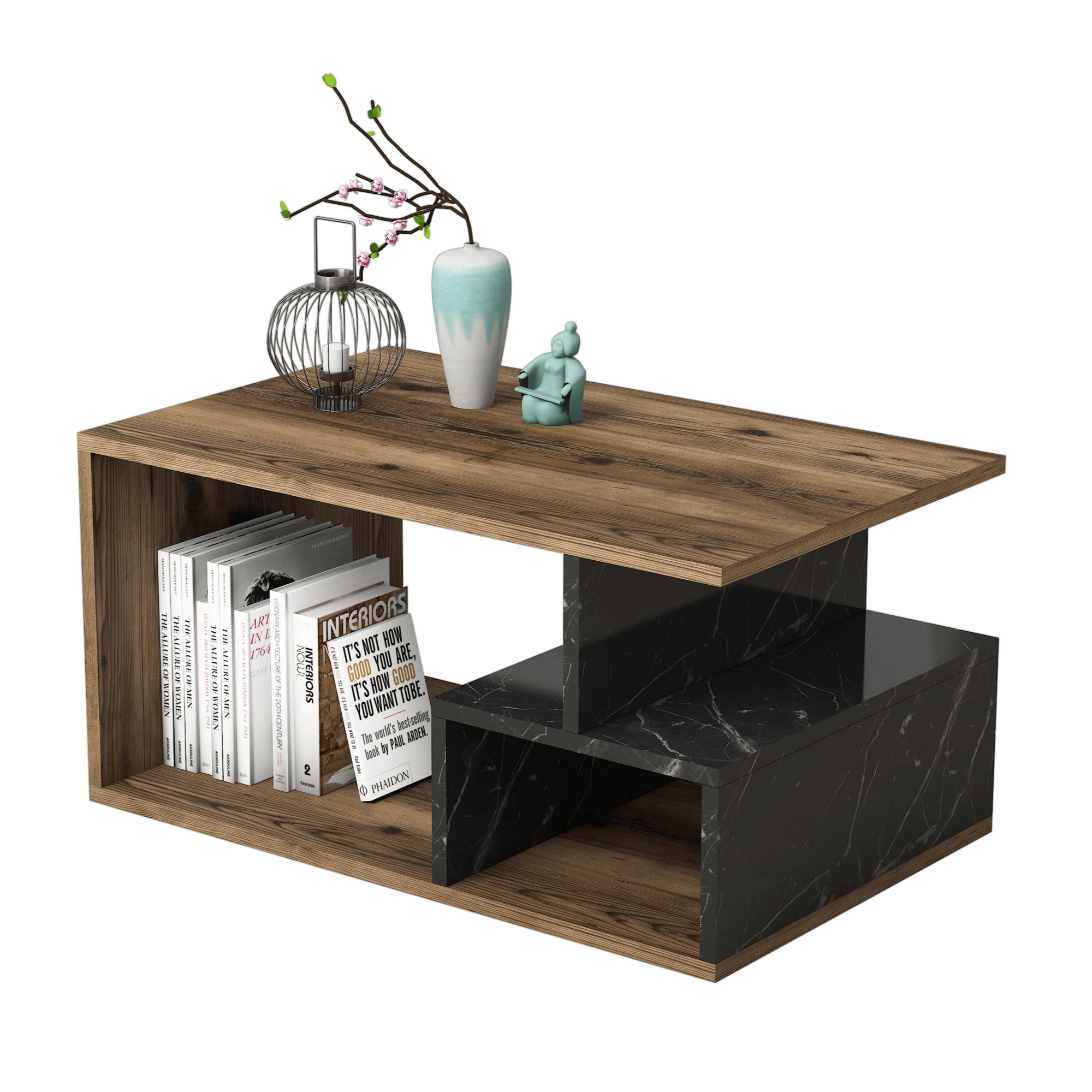 Moderní a praktický, v tom je kouzlo konferenčního stolku ARTE. Vyrobený je z dřevěného laminovaného materiálu, který se vyznačuje snadnou udržovatelností. Laděný je pak do dekoru ořechu s výraznou kresbou dřeva, zatímco spodní dělící sekce úspěšně imituje černý mramor – tato kombinace dekorů vdechne místnosti punc luxusu a přírody. Stolek nabízí dostatečně velkou desku, pod kterou se nachází další úložné prostory v podobě otevřených polic, do kterých rychle a snadno uložíte cokoli, co potřebujete mít po ruce.