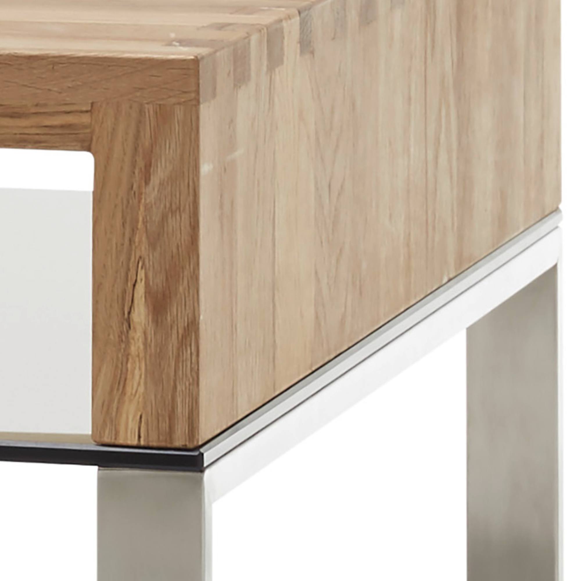 Designový konferenční stolek CARTER 1 působí zajímavým dojmem díky nevšední kombinaci desky stolu z masivního dubového dřeva, odkládací police z bezpečnostního skla v bronzovém zabarvení a nerezové konstrukce. Stolek CARTER 1 se bude zajisté vyjímat v moderně zařízeném interiéru kde se stane výrazným i nepostradatelným doplňkem.