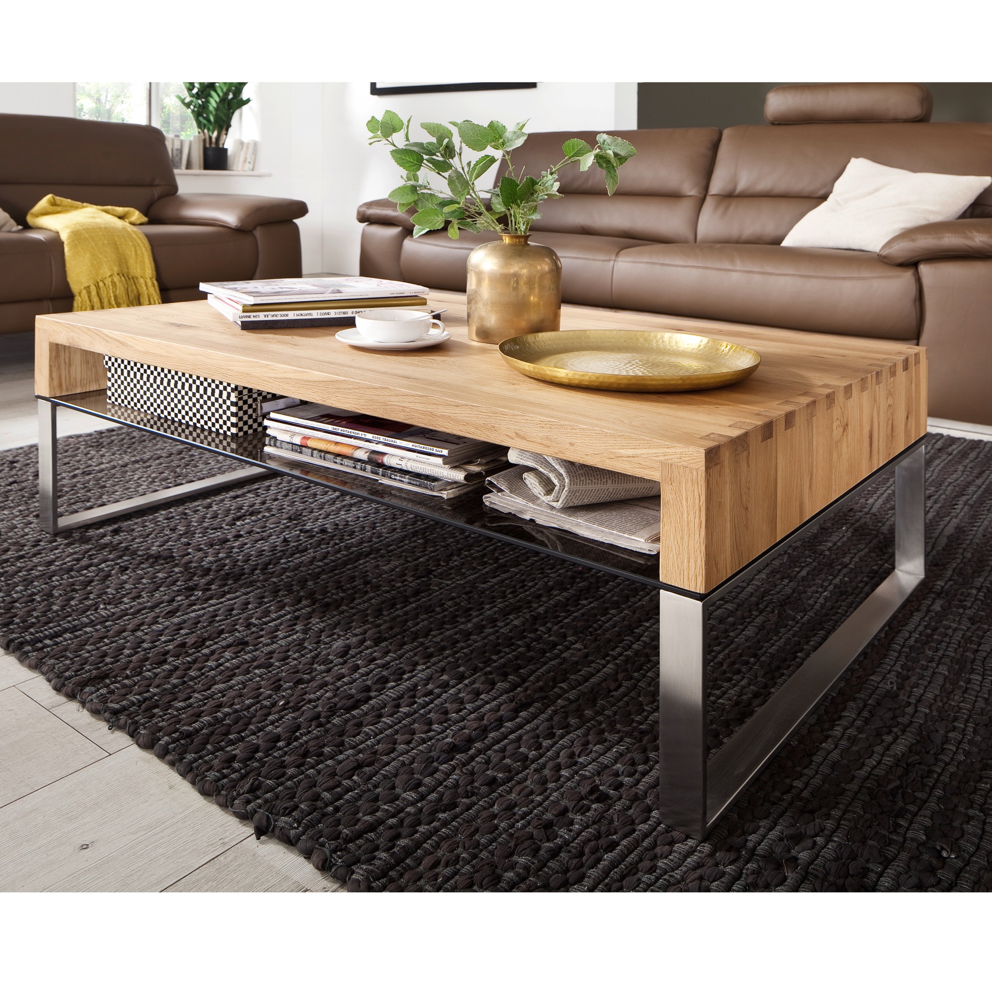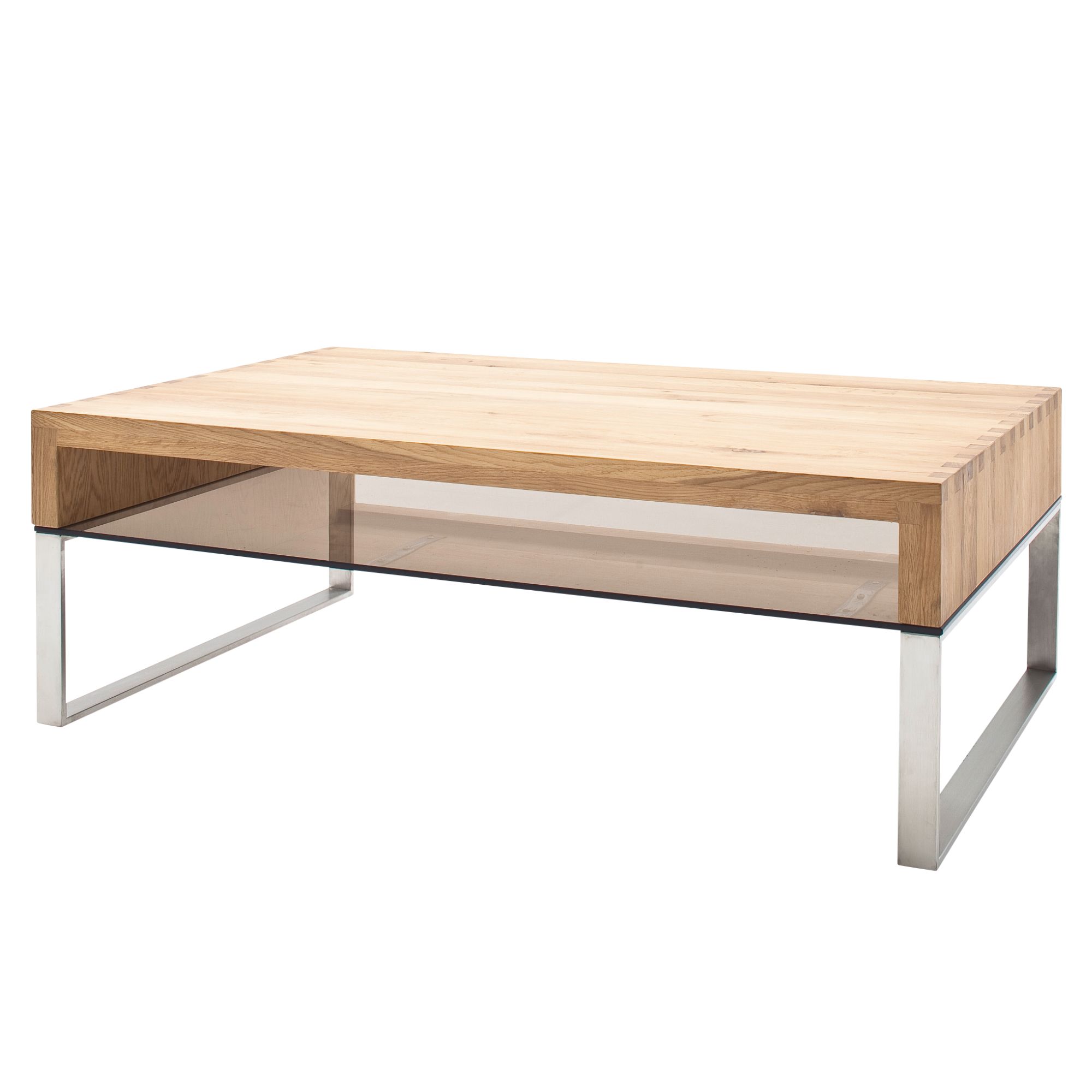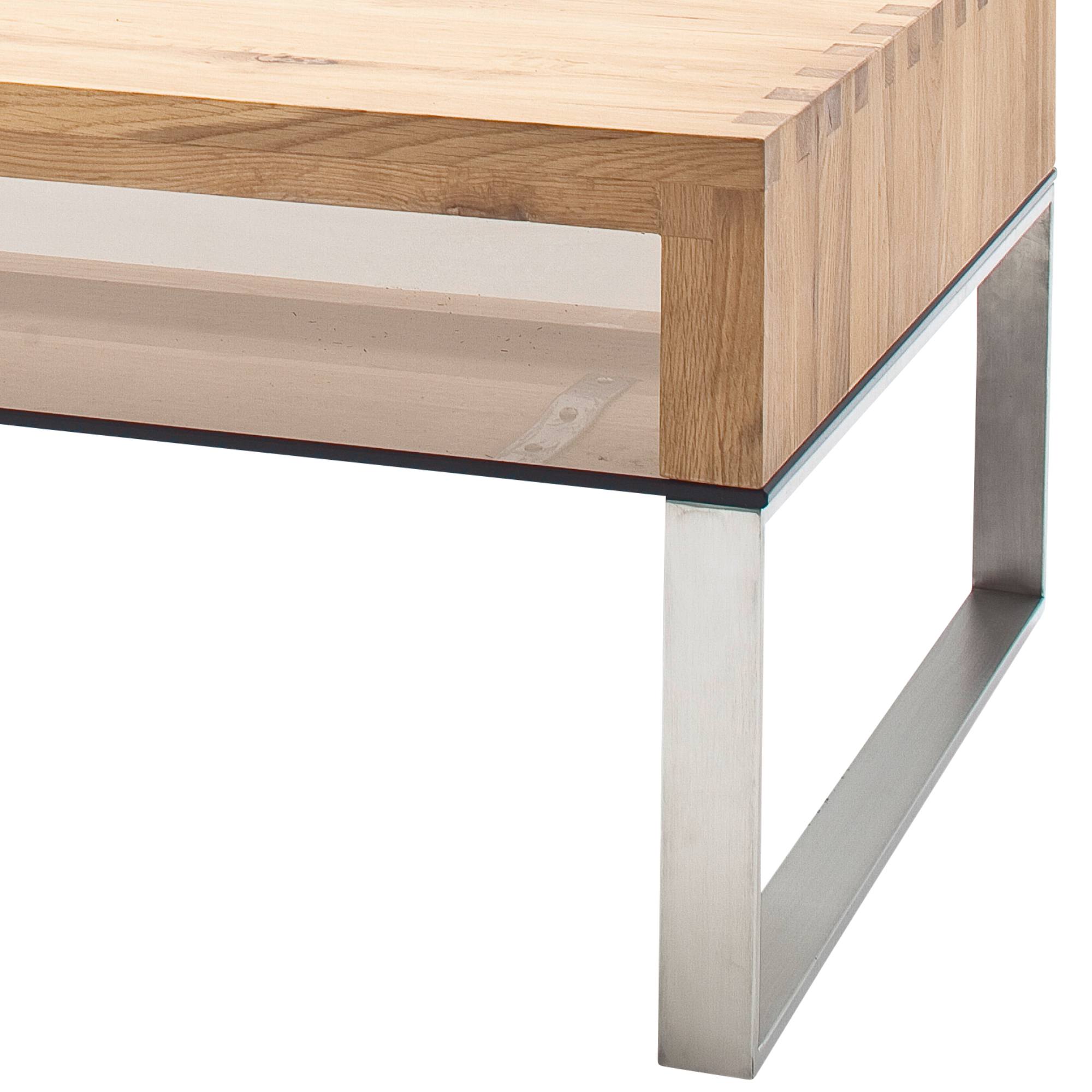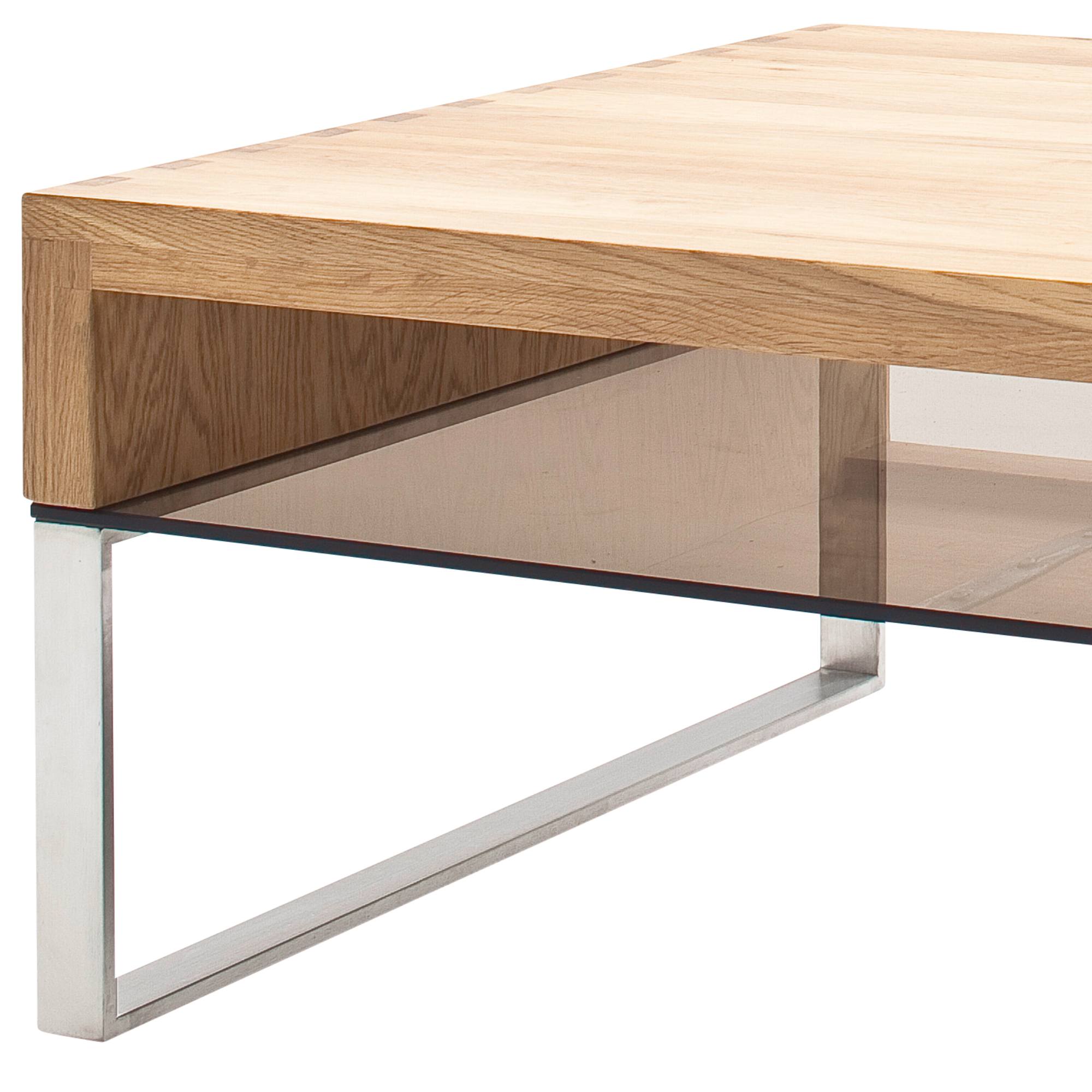 Designový konferenční stůl CARTER 2 působí zajímavým dojmem díky nevšední kombinaci desky stolu z masivního dubového dřeva, odkládací police z bezpečnostního skla v bronzovém zabarvení a nerezové konstrukce. Stolek CARTER 2 se bude zajisté vyjímat v moderně zařízeném interiéru kde se stane výrazným i nepostradatelným doplňkem.