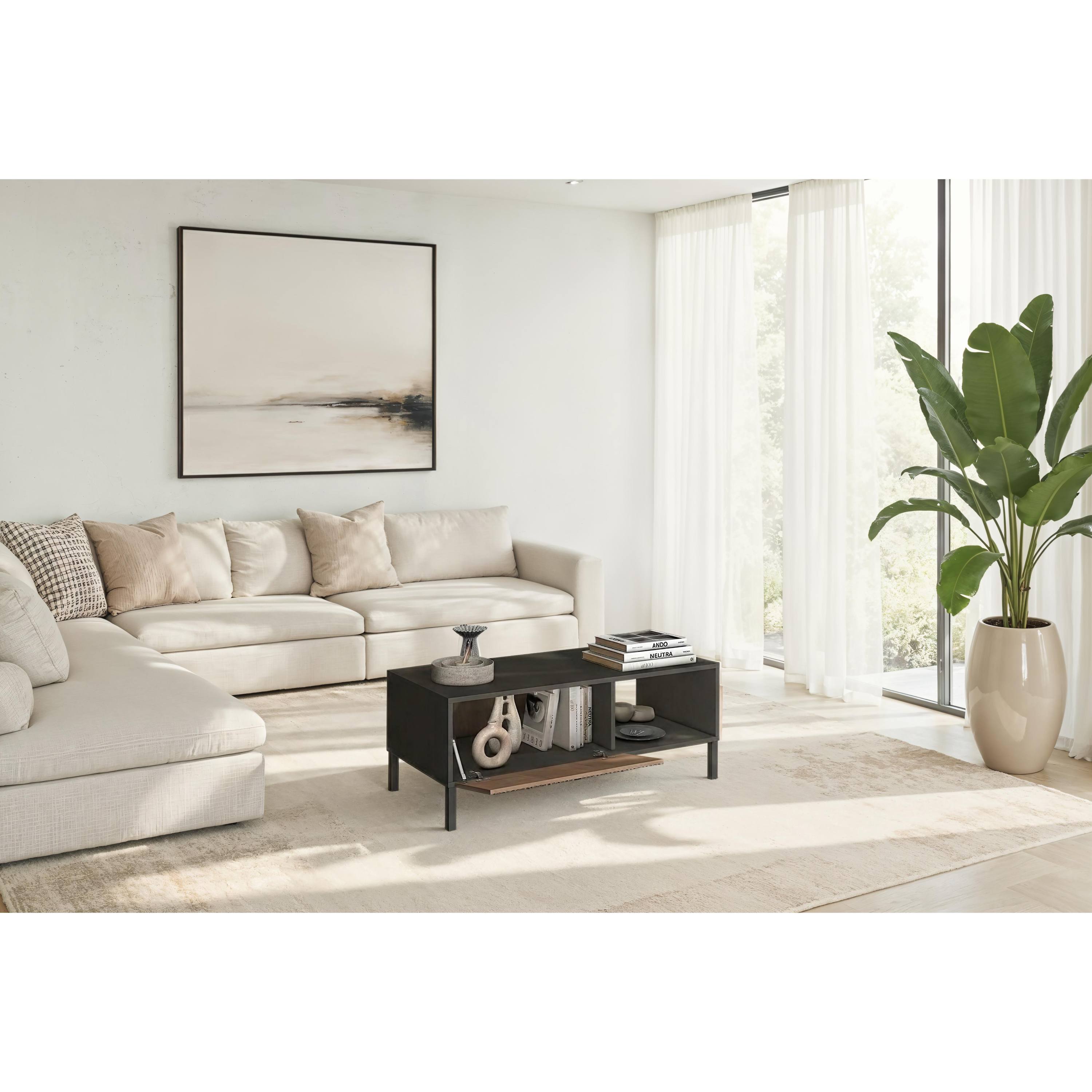 Za výklopnými dvířky stolku CORTINA se nachází úložný prostor, který napomůže k přehlednému uložení vašich věcí.