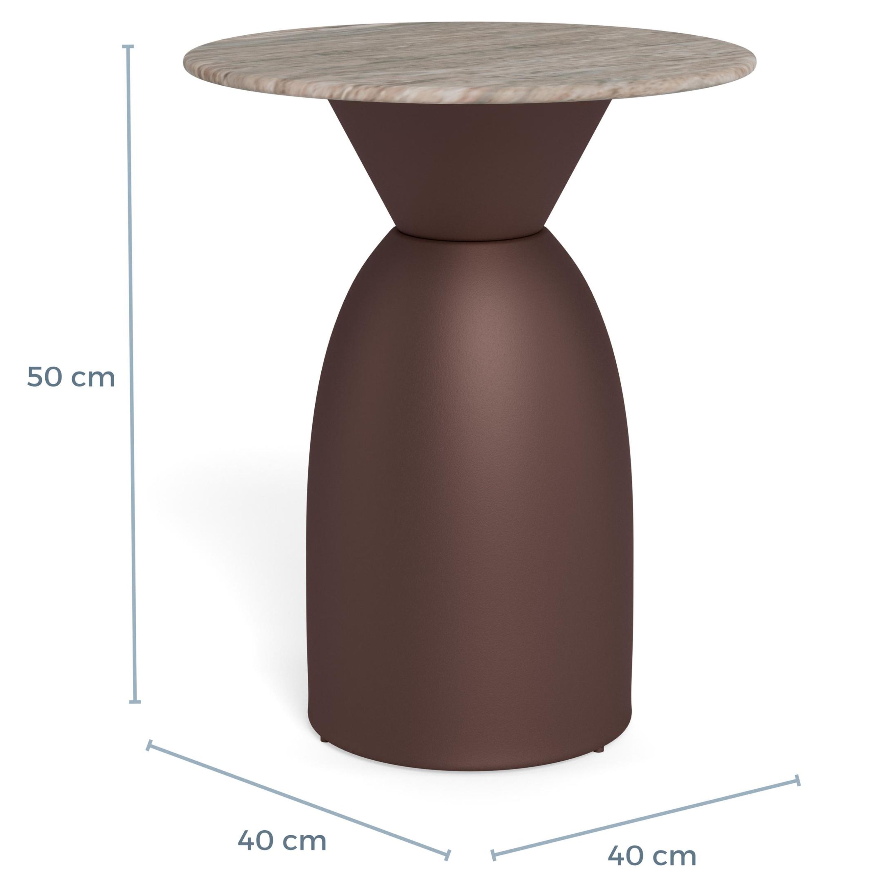 Na výrobu horní desky byl využit kvalitní mramor, o stabilitu stolku se stará pevná kovová konstrukce. Vzhledem k použitým materiálům se vám bude stolek snadno udržovat v čistotě.