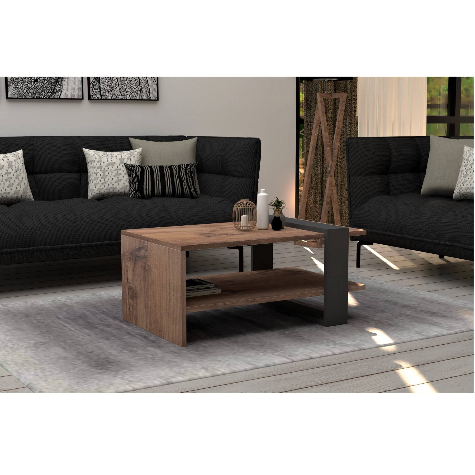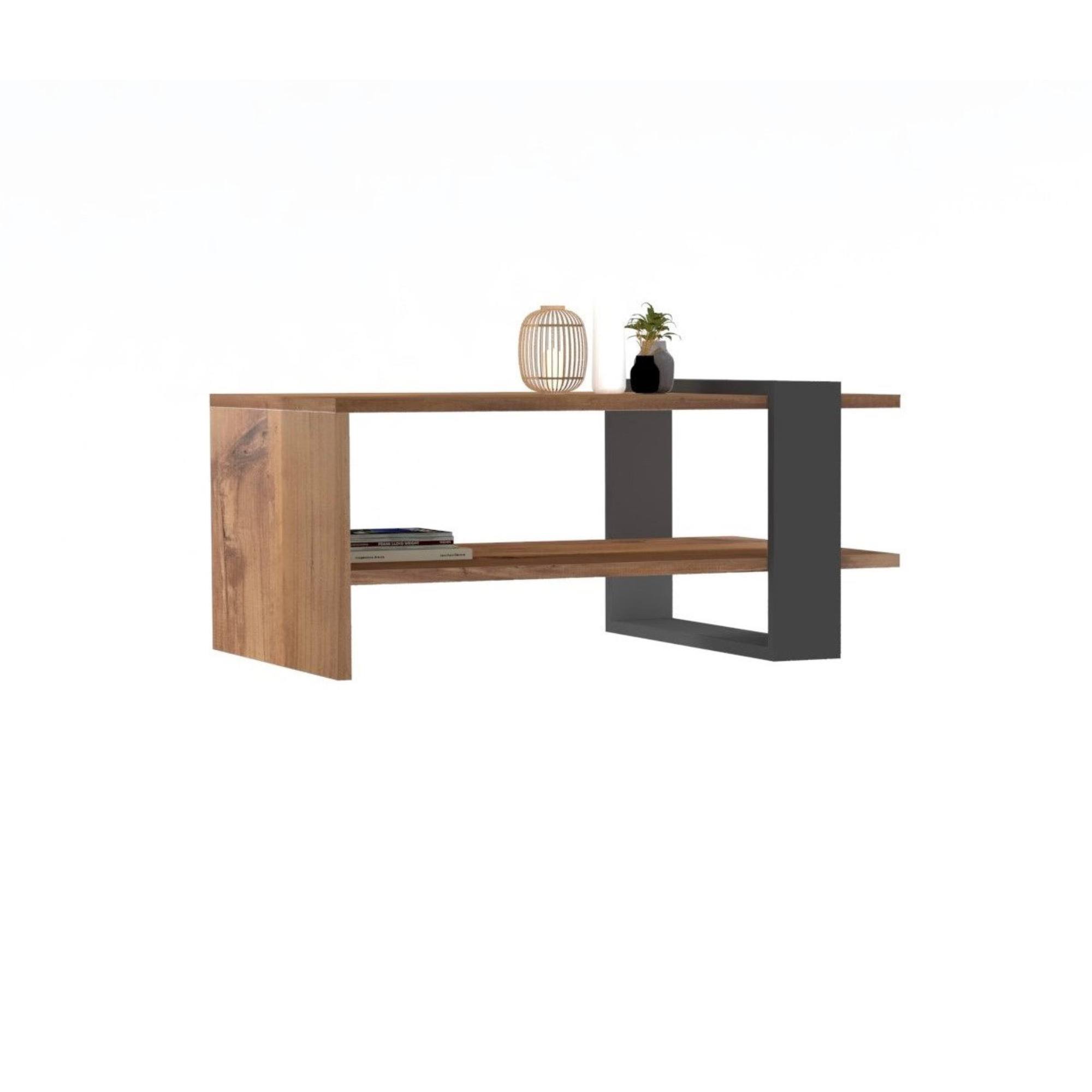 Konferenční stolek FUNDA se stane praktickou součástí obývacího pokoje. Tento jedinečný designový kousek s povrchem z dobře udržovatelného lamina vás upoutá stylovým rámem v antracitové barvě, který se nachází v otevřené části stolku. Pod prostornou deskou stolu se nachází odkládací prostor, který poskytne dostatečné množství místa pro různé drobnosti. Ať už bude stolek FUNDA stát v prostoru nebo u zdi, upoutá pozornost a dodá interiéru styl.