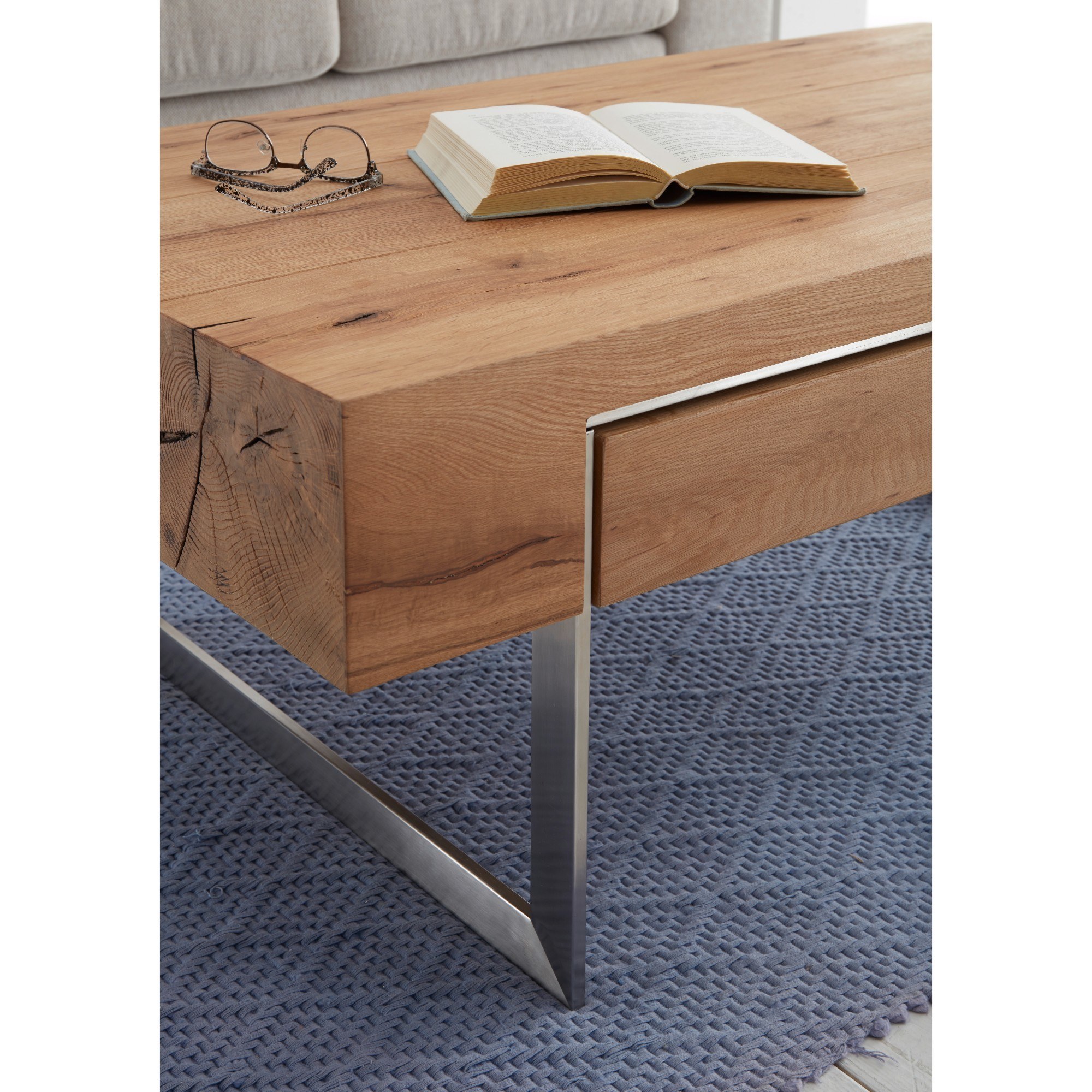 Konferenční stolek HINCKLEY zaujme moderním designem a vysokou funkčností. Kombinace dubové dýhy a podstavce z kartáčovaného kovu zaujme každého navštěvníka vašeho obývacího pokoje. Uvnitř konstrukce stolku se skrývá praktický úložný prostor ve formě zásuvky. Díky bytelné konstrukci nabízí maximální nosnost až 25 kg.