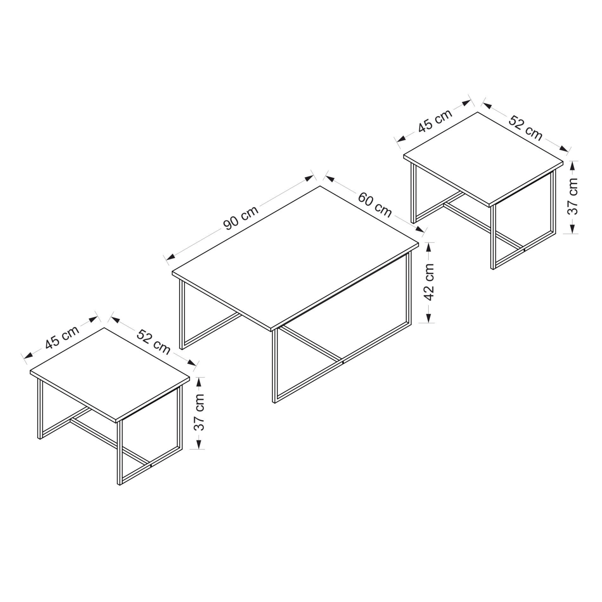 | Část 2 (ŠxVxH) | Menší stolky: 52x37x45 cm |