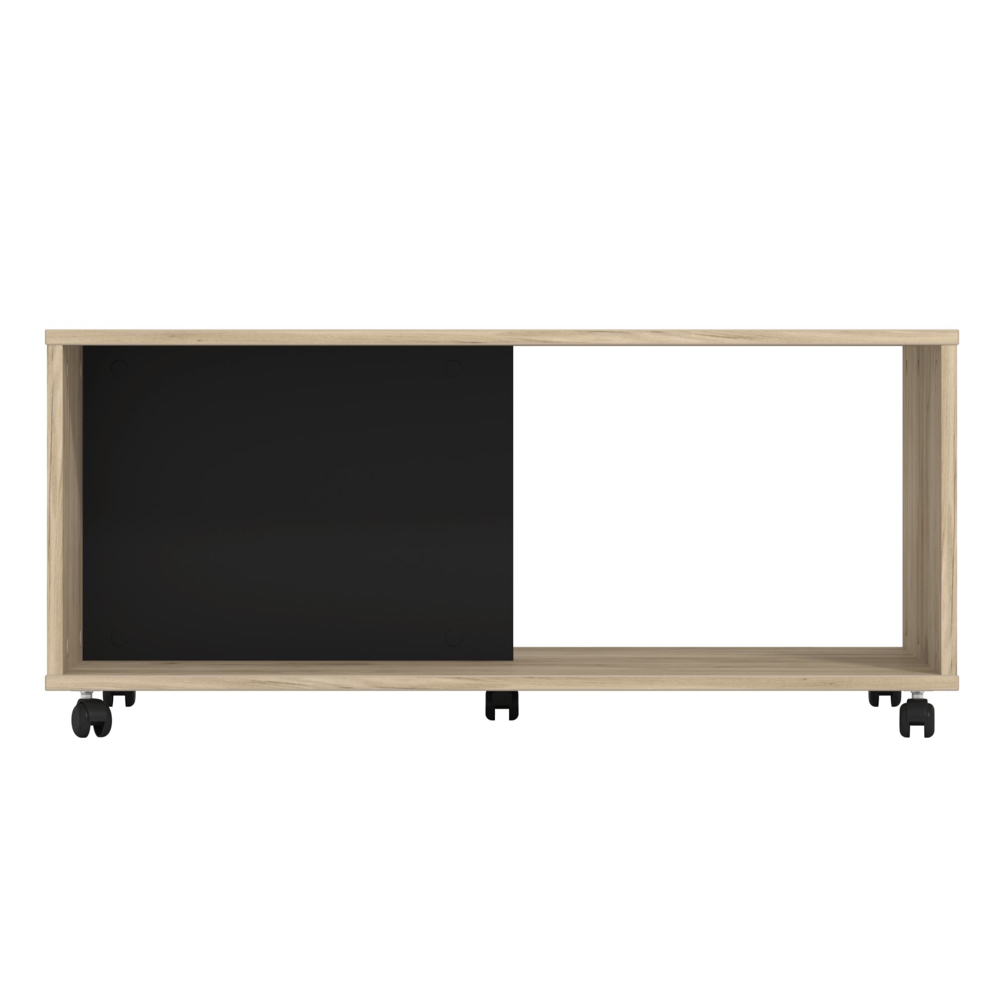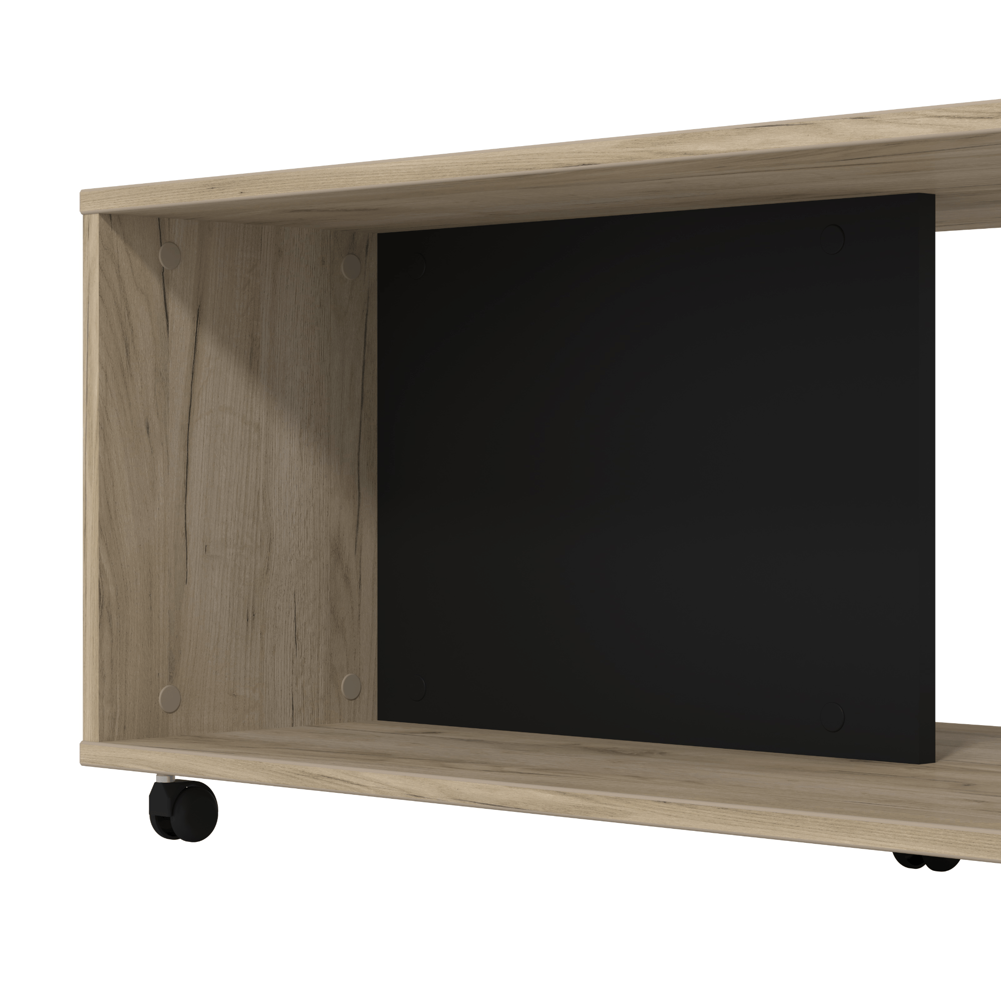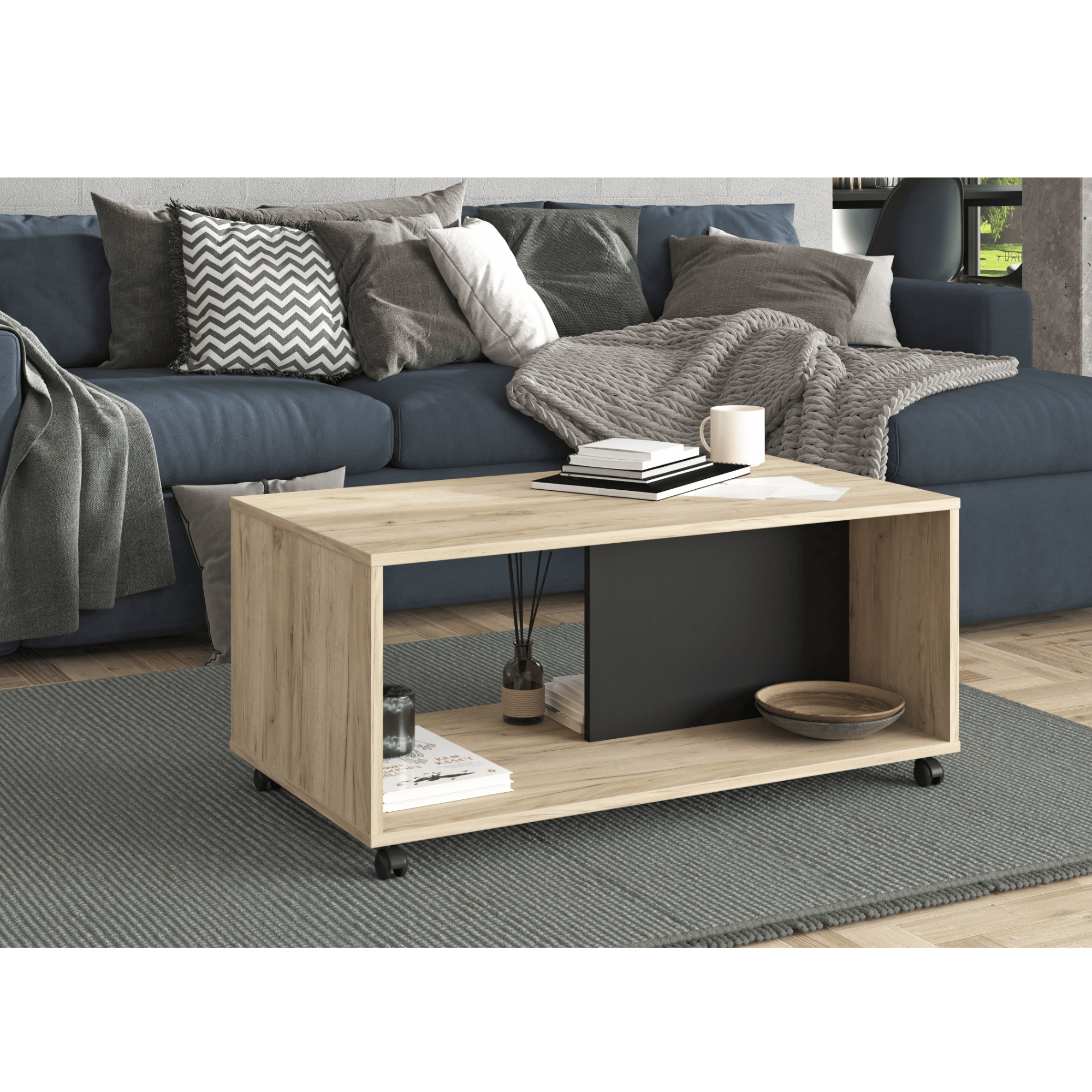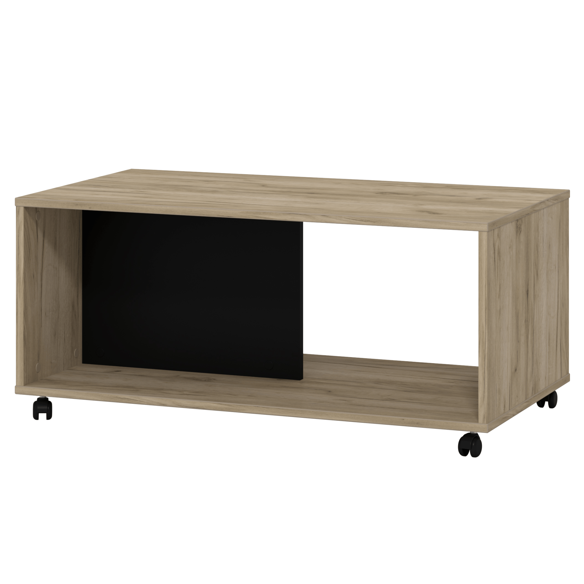 Konferenční stolek PIERCE v minimalistickém designu hravě zapadne do většiny domácností. Vyrobený je z laminovaného dřevěného materiálu, který se vyznačuje snadnou udržovatelností i dlouho životností. Laděný je do dřevěného dekoru obohacující místnost o přírodní nádech. Hlavní odkládací plocha je doplněna o spodní celoplošnou polici, kterou dělí kontrastní černá přepážka – ta napomůže k efektivnějšímu rozčlenění všeho, co potřebujte mít po ruce. Pro snazší manipulaci je stůl vybavený plastovými kolečky. Konferenční stolek PIERCE se stane praktickým i vkusným doplňkem vaší domácnosti.