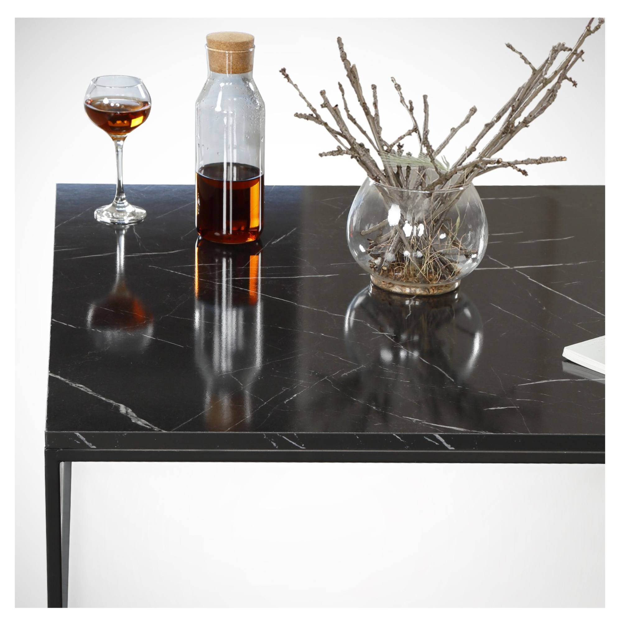 Elegantní konferenční stolek POLY vyniká svojí jednoduchostí. Horní deska je vyrobena z laminovaného dřevěného materiálu, pro který je typická snadná udržovatelnost i dlouhá životnost. Laděna je pak do dekoru mramoru – ten domácnosti propůjčí punc luxusu a elegance. Stabilní podnož je zhotovena z kovu a opatřena elektrostatickým práškovým lakem. Díky svým rozměrům je stolek POLY vhodný i do menšího interiéru.