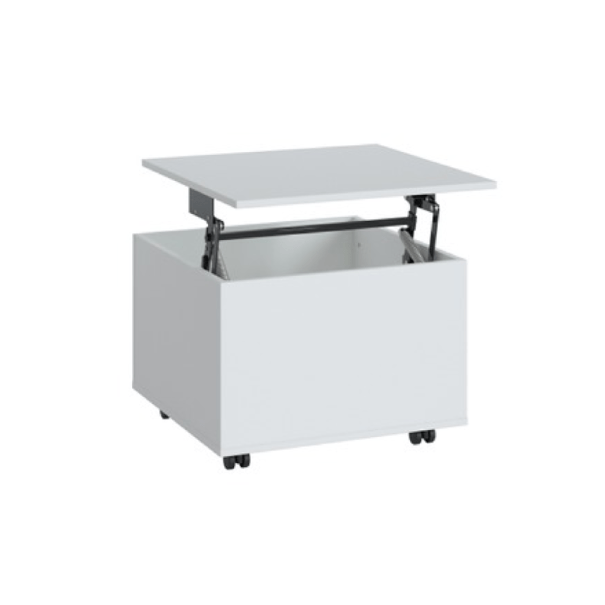 Vyrobený je z laminovaného dřevěného materiálu, pro který je typická snadná udržovatelnost i dlouhá životnost. Pod horní deskou se zdvihacím mechanismem se ukrývá dostatečný úložný prostor na všechny drobnosti, které se hodí mít po ruce. Díky zdvihacímu mechanismu můžete navíc hlavní desku navýšit, což atraktivitu stolku jen podtrhuje. Stolek disponuje praktickými kolečky, která usnadňují manipulaci.