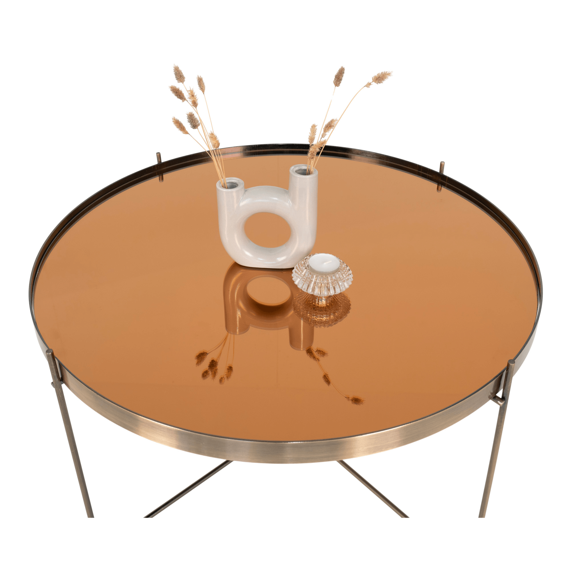 Odkládací kruhová deska je vyrobena z odolného skla. Maximální stabilitu pak zajišťuje konstrukce z kovu, který je opatřený práškovým lakem. Konferenční stolek VINIZAO svým stylem perfektně doladí industriálně a moderně zařízenou domácnost.