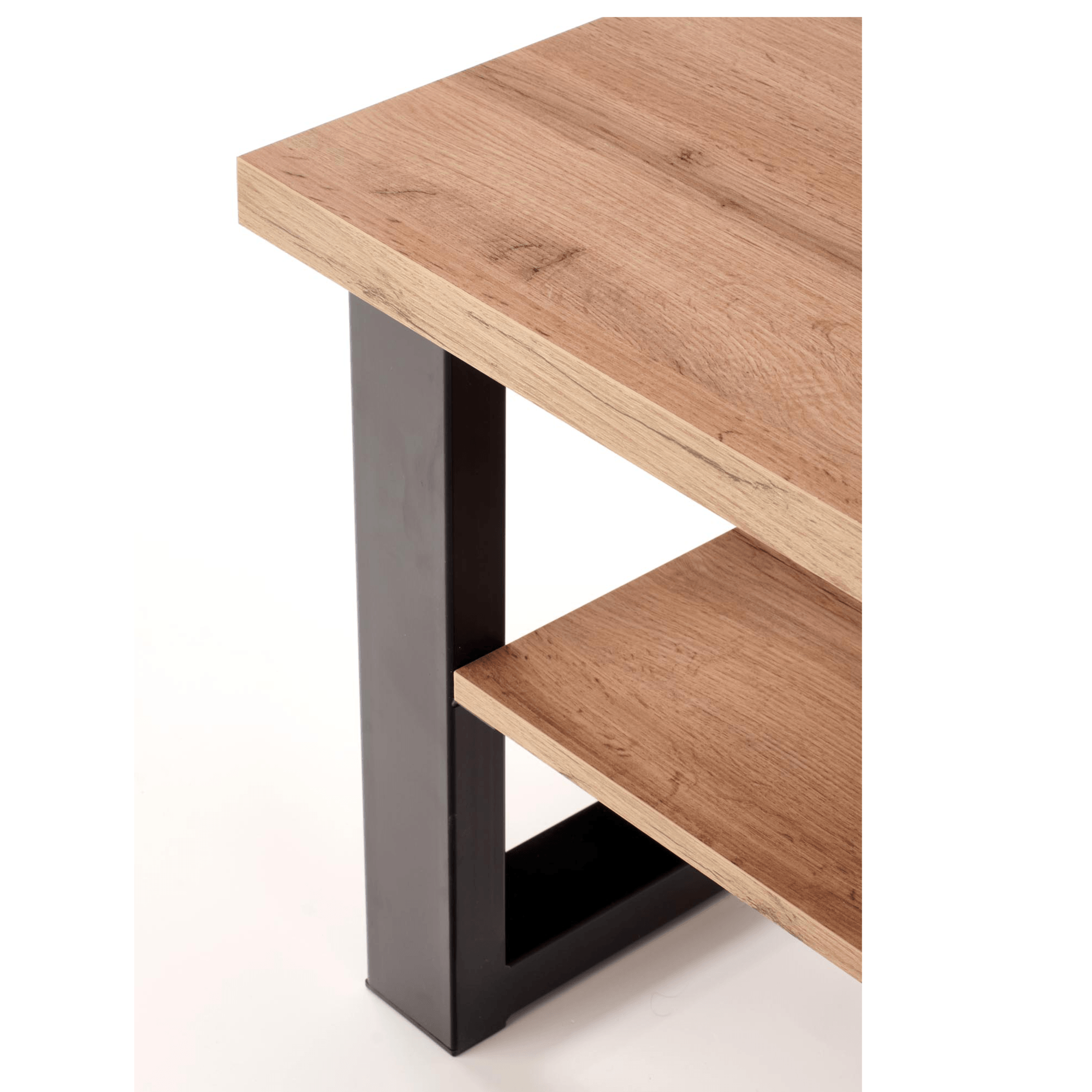 Hlavní deska je vyrobena z laminovaného dřevěného materiálu, který se vyznačuje snadnou udržovatelností i dlouhou životností. Laděna je do dekoru dubu wotan, který interiér obohatí o přírodní nádech. Deska navíc disponuje ABS hranami, které eliminují riziko mechanického poškození. Maximální stabilitu zajišťuje podnož z kovu – ten je opatřený černým práškovým lakem. Díky spodní celoplošné polici nabízí stolek dostatečný odkládací prostor.