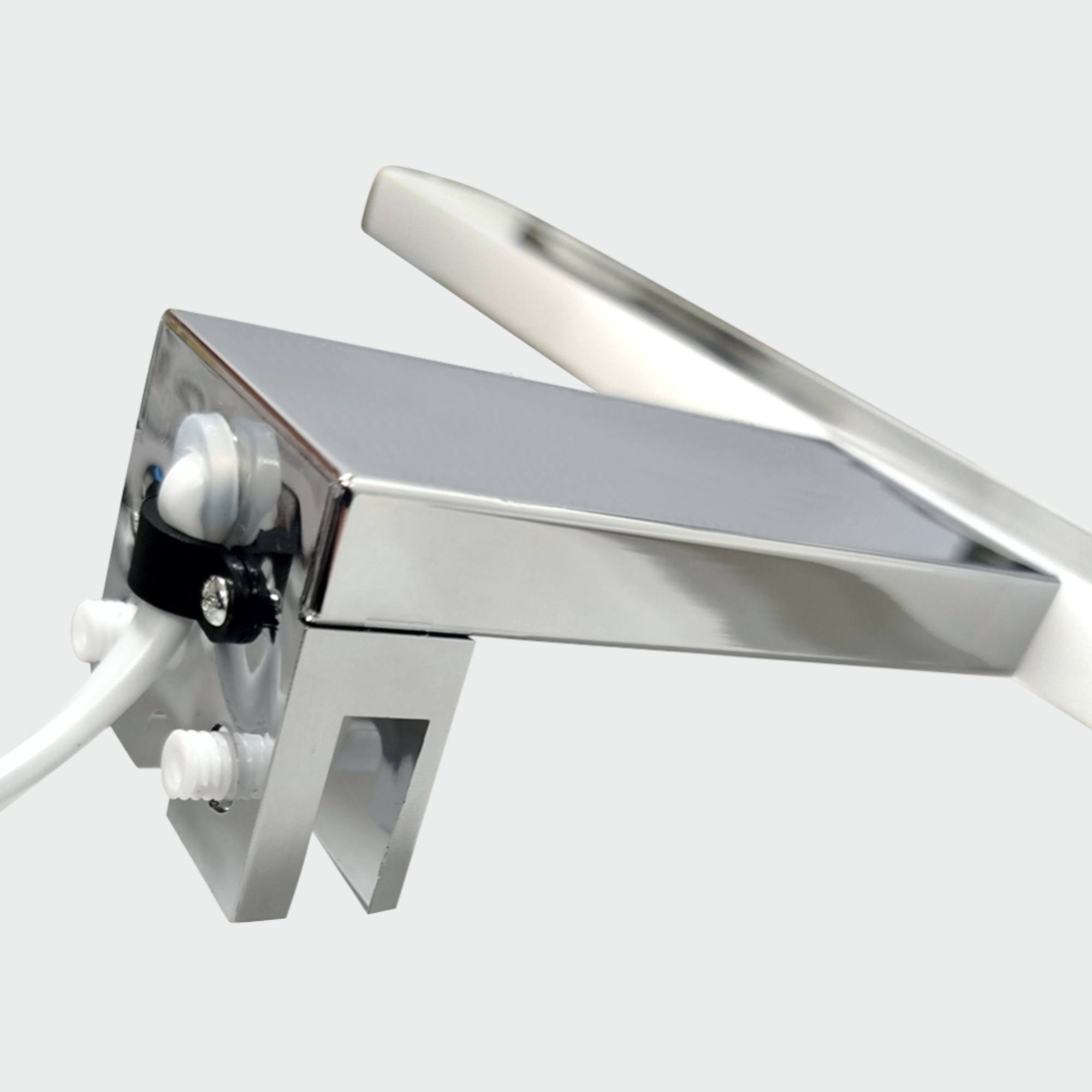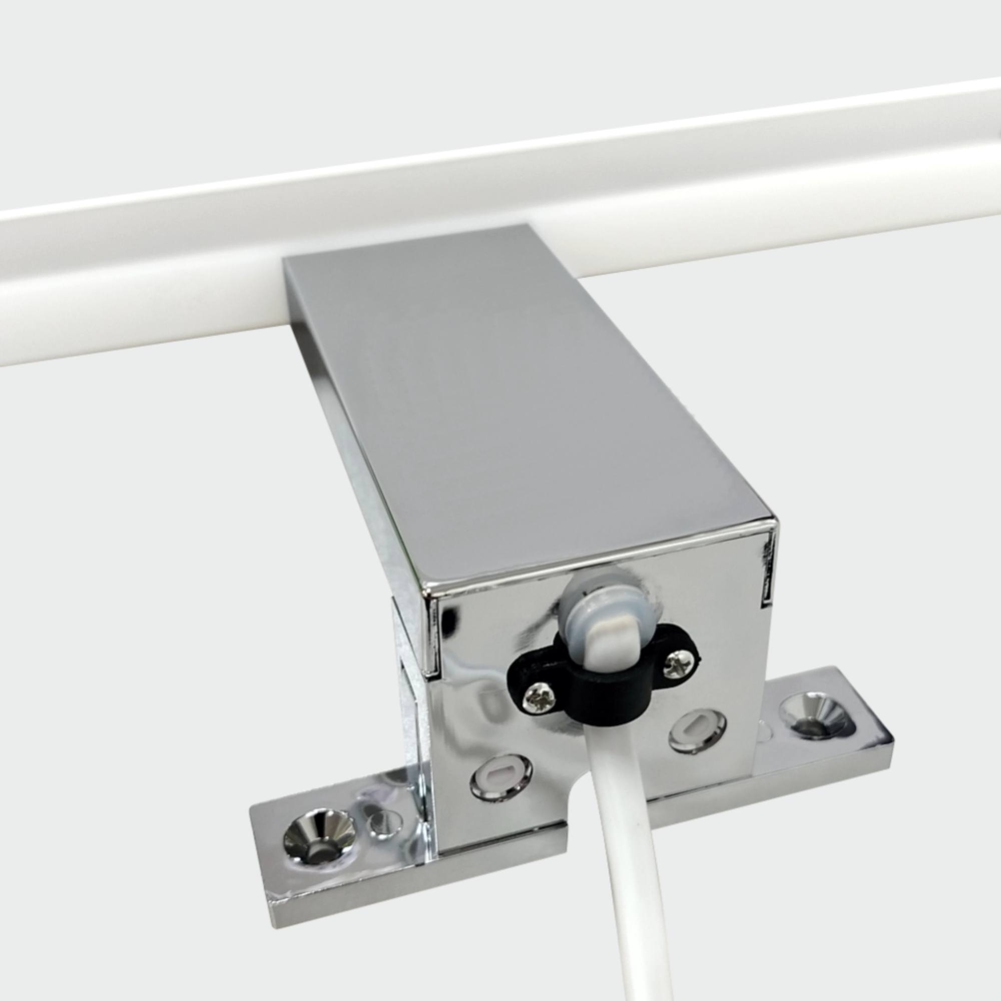 Je vyrobeno z kombinace plastu a nerezu se stínidlem o šířce 30 cm. Nabízí 3 způsoby montáže, a to na zrcadlo, skříňku nebo stěnu. Umožňuje tedy snadné přizpůsobení podle vašich potřeb a možností.