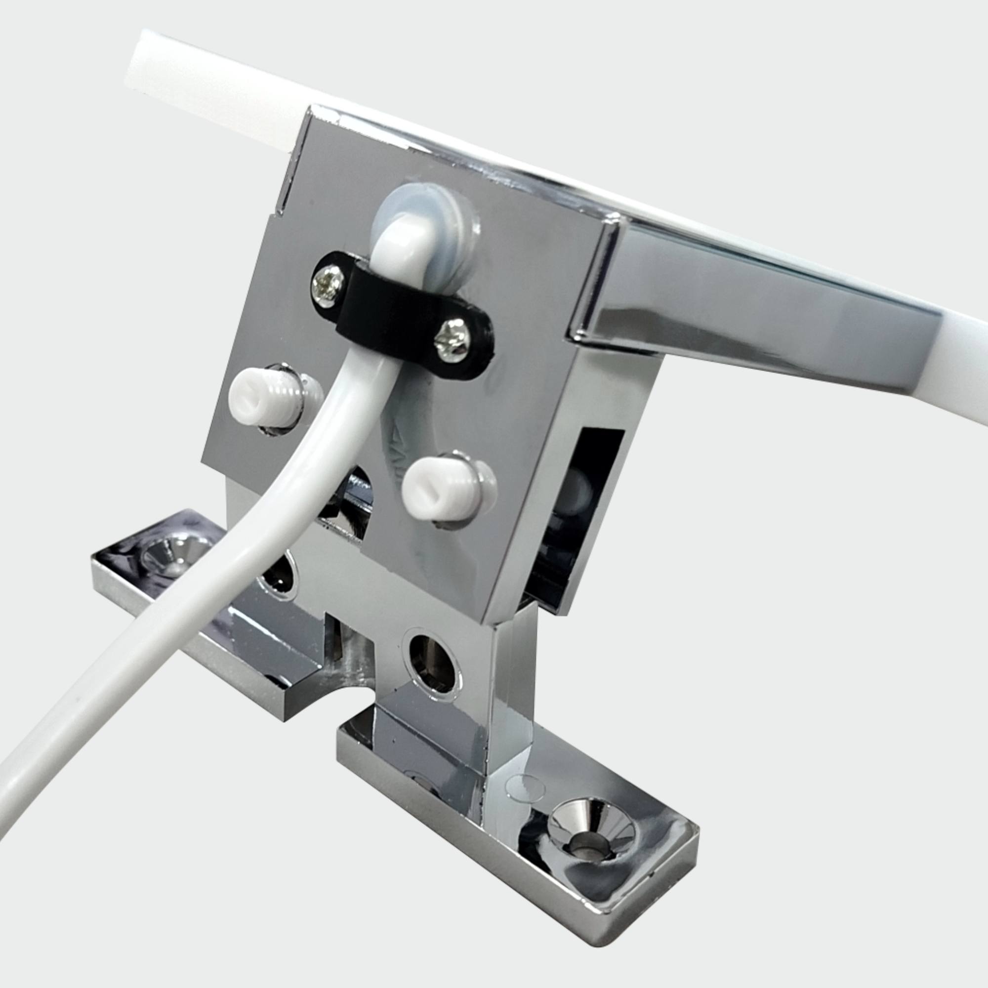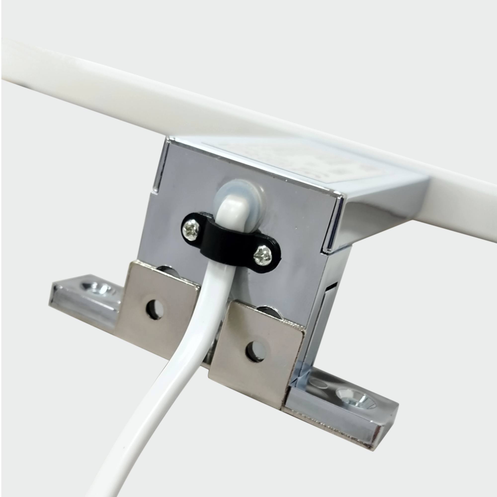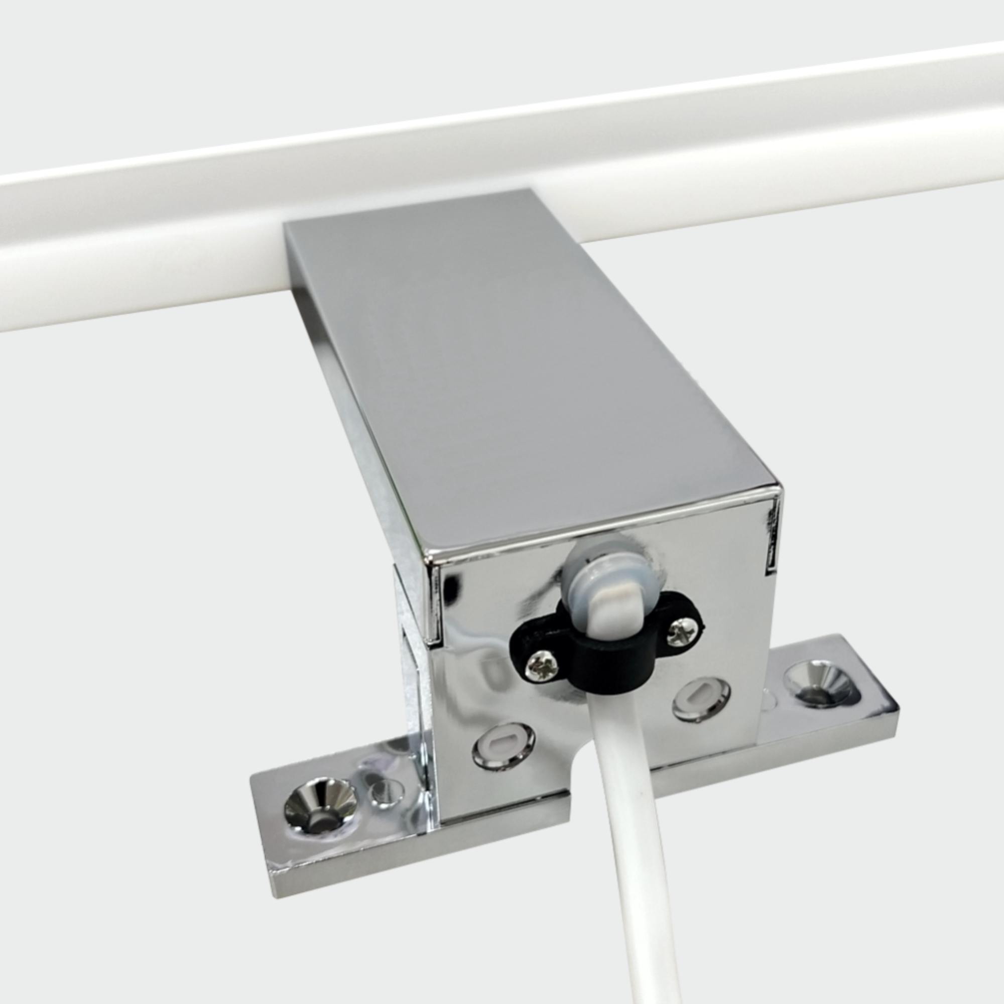 Je vyrobeno z kombinace plastu a nerezu se stínidlem o šířce 50 cm. Nabízí 3 způsoby montáže, a to na zrcadlo, skříňku nebo stěnu. Umožňuje tedy snadné přizpůsobení podle vašich potřeb a možností.