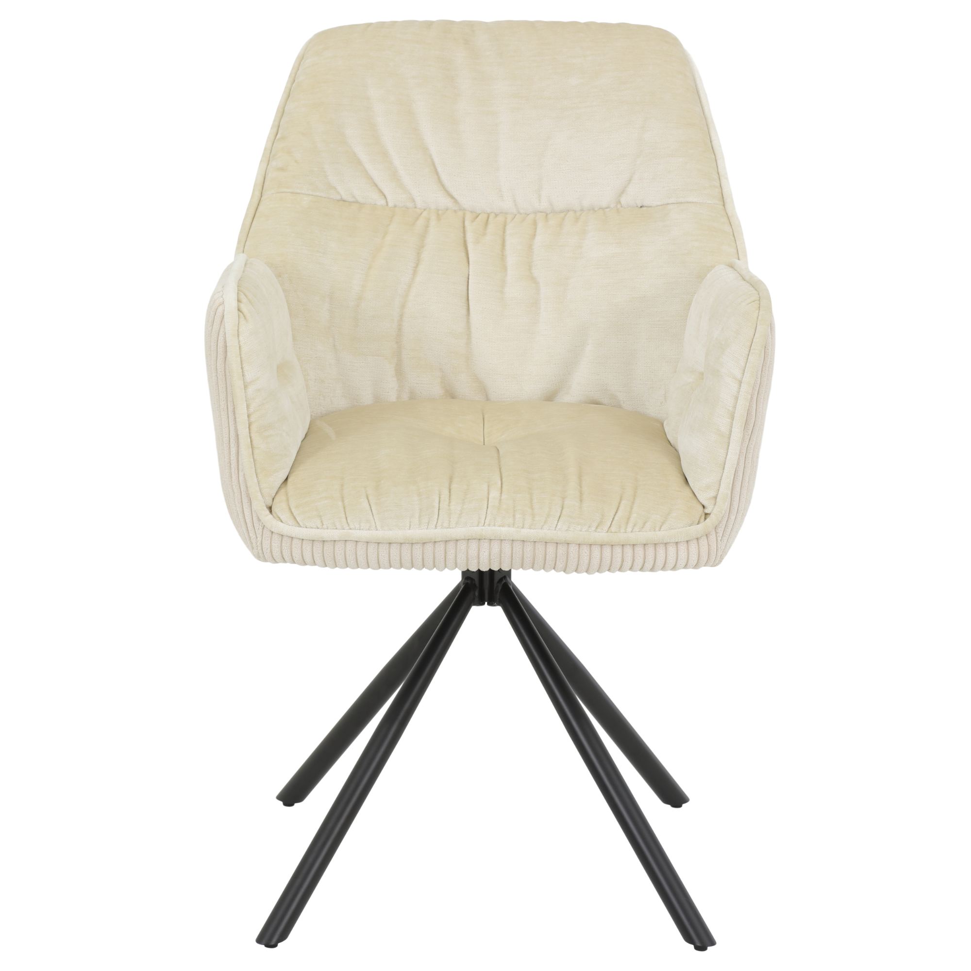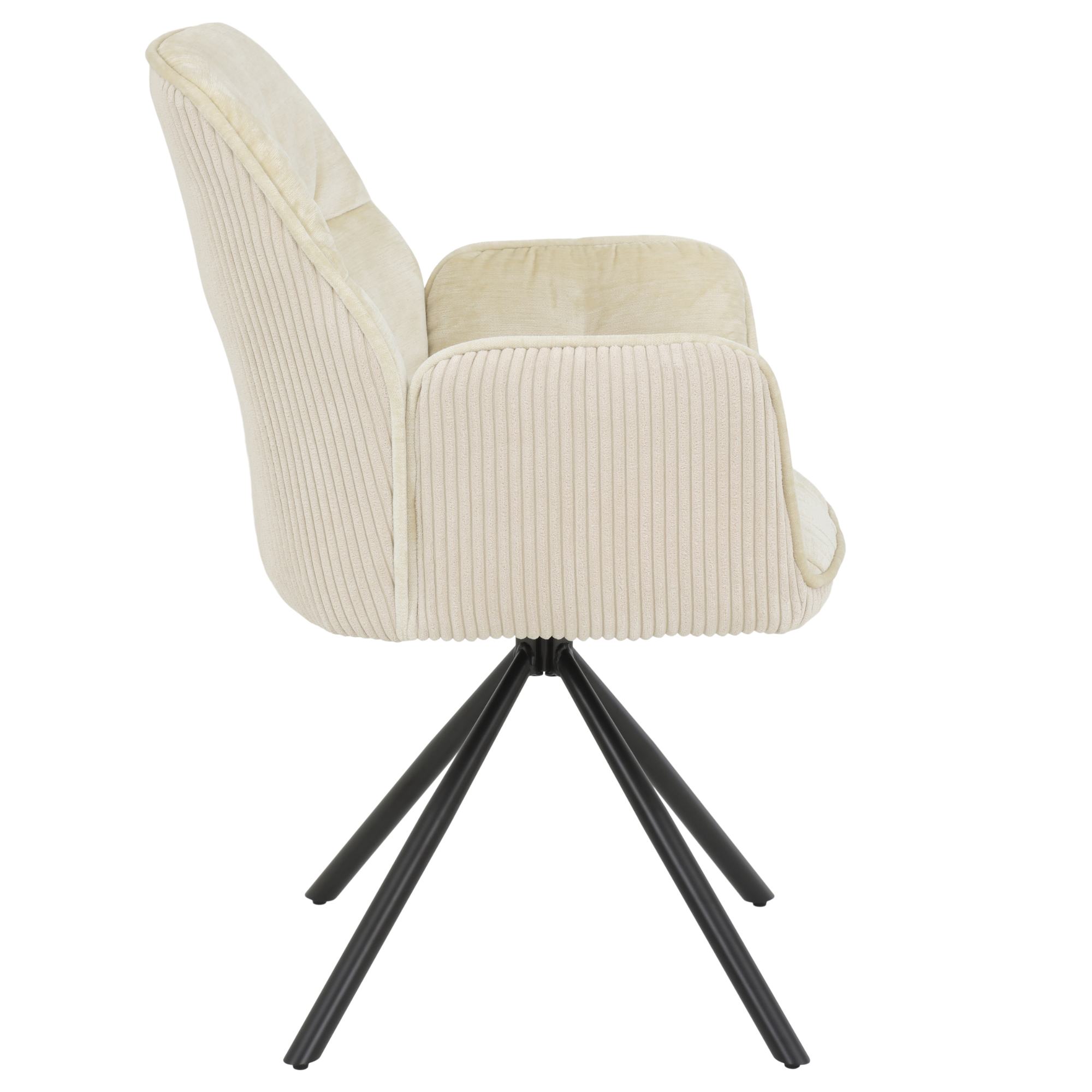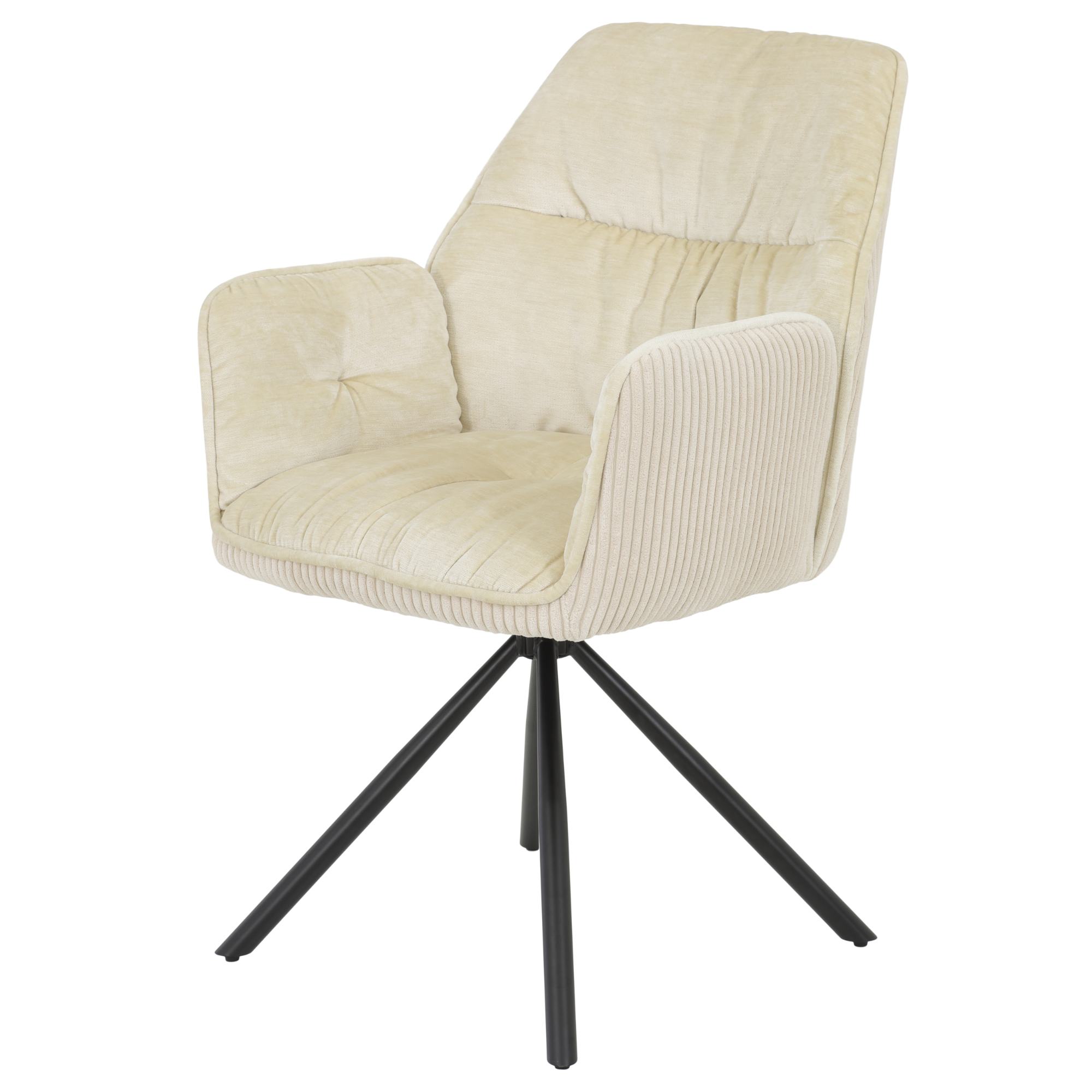 Potaženo je hladkou tkaninou sametového a manšestrového vzhledu ze 100% polyesteru, která utváří na dotek příjemný povrch. Celou konstrukci podpírají vysoké kovové nohy s otočnou funkcí až o 270°.
