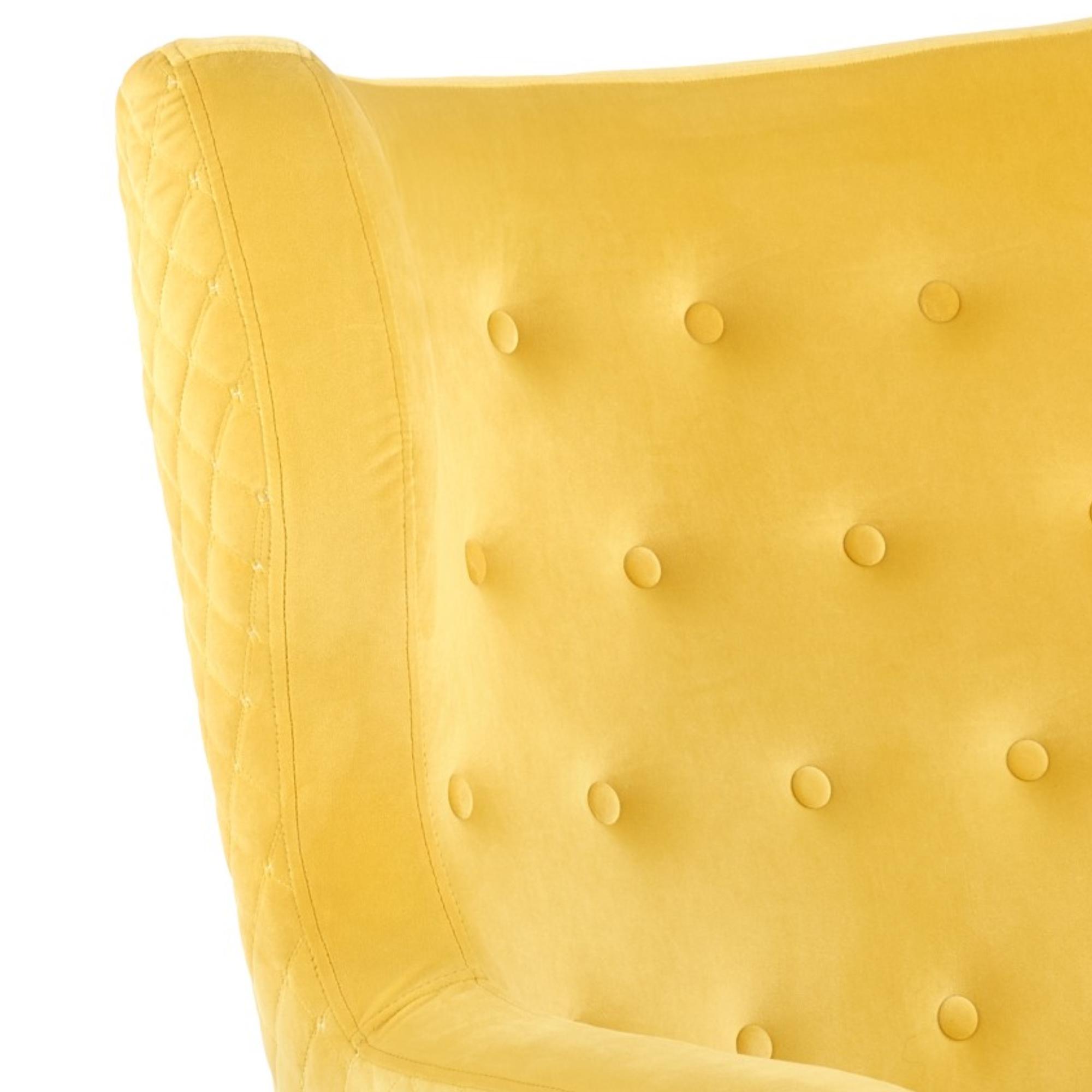 Pohoda s knížkou v ruce a dekou přes kolena je synonymem pro pohodlné křeslo, kterému se neřekne jinak, než ušák. Oblé tvary, vysoký opěrák a područky umožňující pohodlnou oporu pro ruce tvoří základ pro příjemné posezení. Sedák spolu s opěrákem jsou potaženy sametově hladkou látkou příjemnou na dotek. Záda a boky jsou zdobeny kontrastním prošíváním a opěrák je doplněn o čalounické knoflíky. Tyto detaily tvoří jedinečný, originální vzhled křesla. Vysoké nožky z masivního dřeva podtrhují elegantní vzhled křesla a zajistí jeho stabilitu.