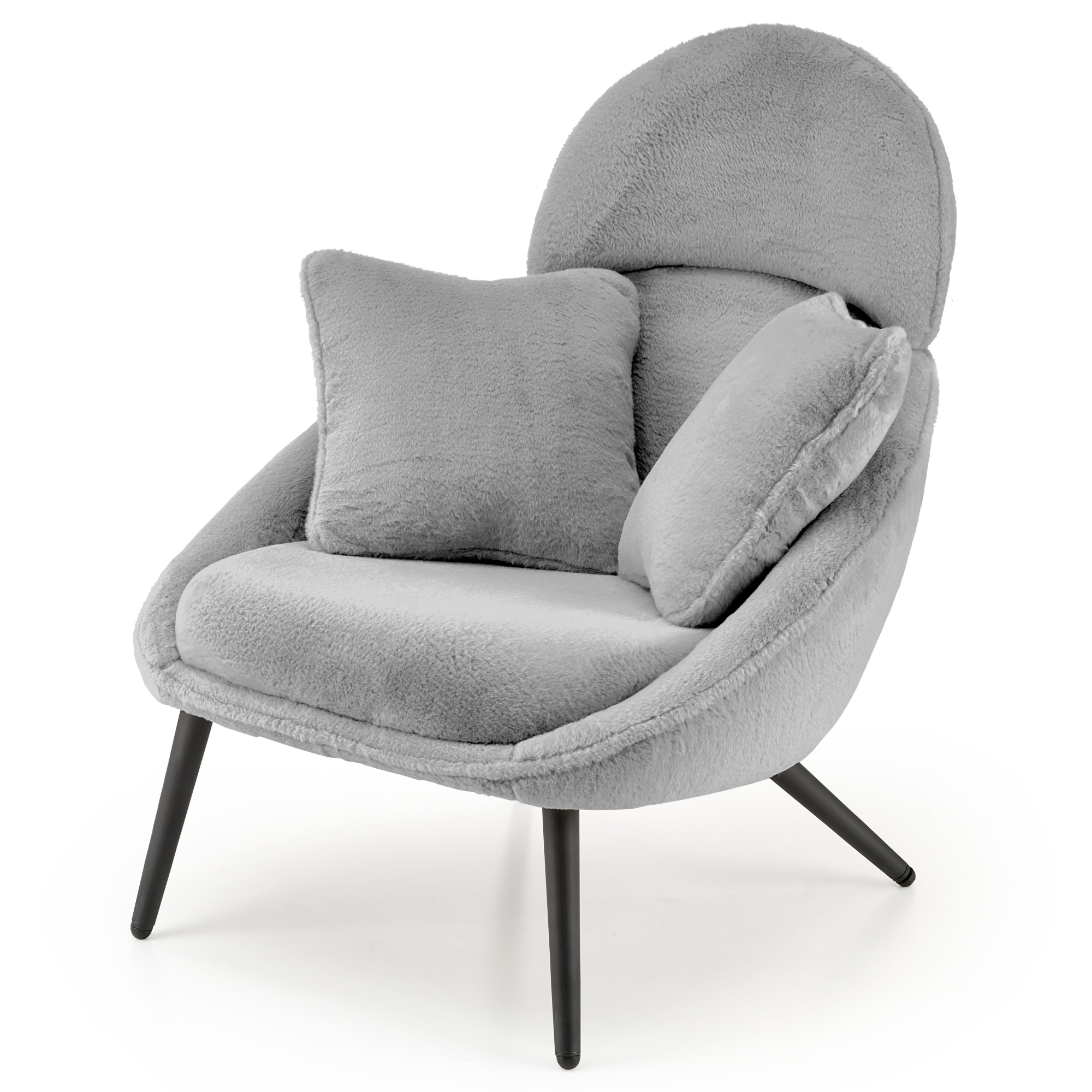 O to správné pohodlí se postará měkké pěnové jádro, tkanina připomínající kožešinu a zádové polštáře. To vše poskytne potřebnou oporu při sezení. Vysoké kovové nožky, které křeslu dodávají vysokou stabilitu, jsou ukončeny plastovými kluzáky, které ochrání povrch vaší podlahy před poškozením.