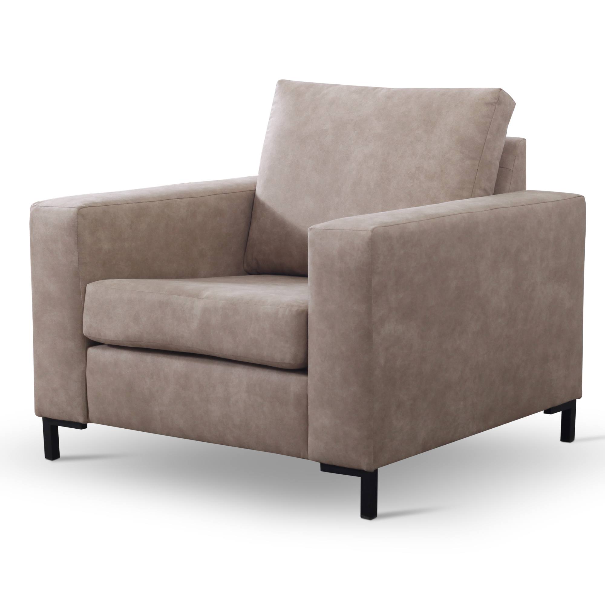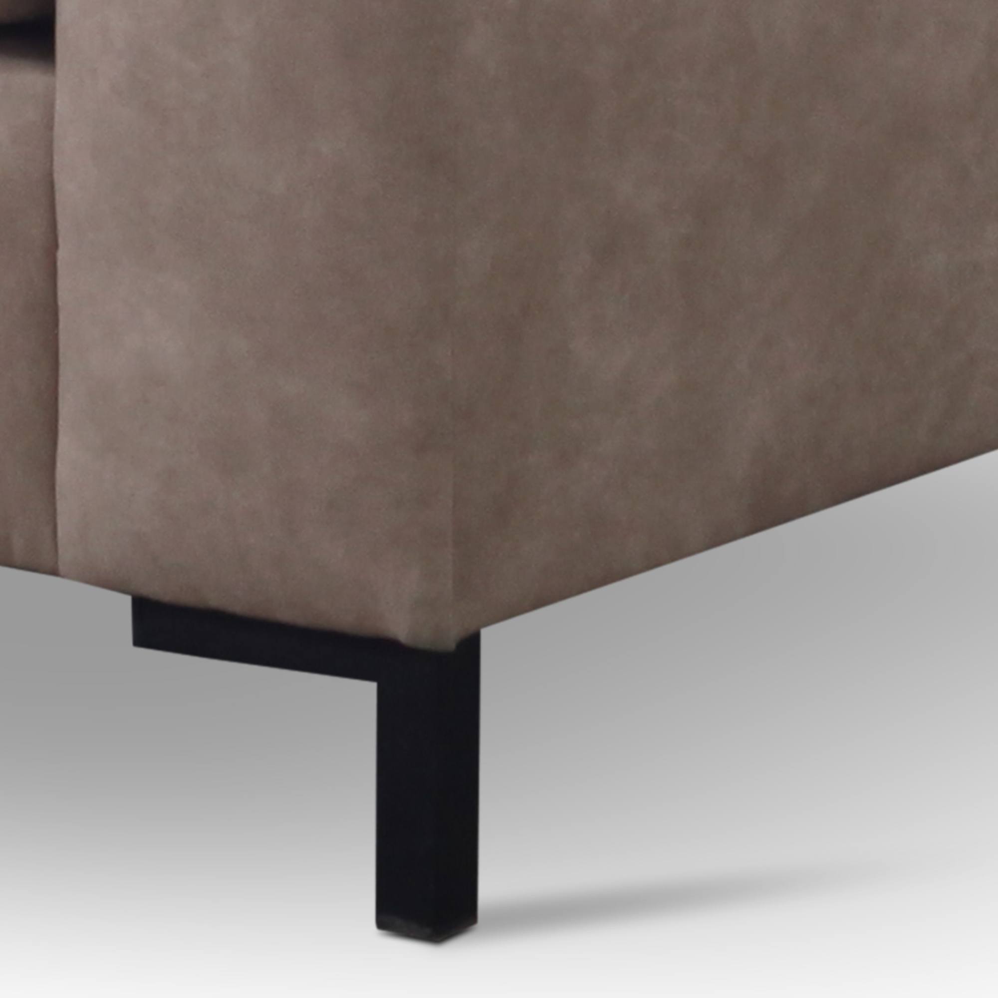 Poskytne vám zázemí s přirozenou oporou těla. Pružinové jádro poskytne pevnější základ, široké područky komfortní oporu. Potahová tkanina připomíná optikou kůži a vytváří tak z pohovky zázemí s nádechem luxusu. Vysoké kovové nožky oceníte také z praktického hlediska. Prostor pod křeslem je snadno přístupný a dobře se tedy udržuje pořádek.