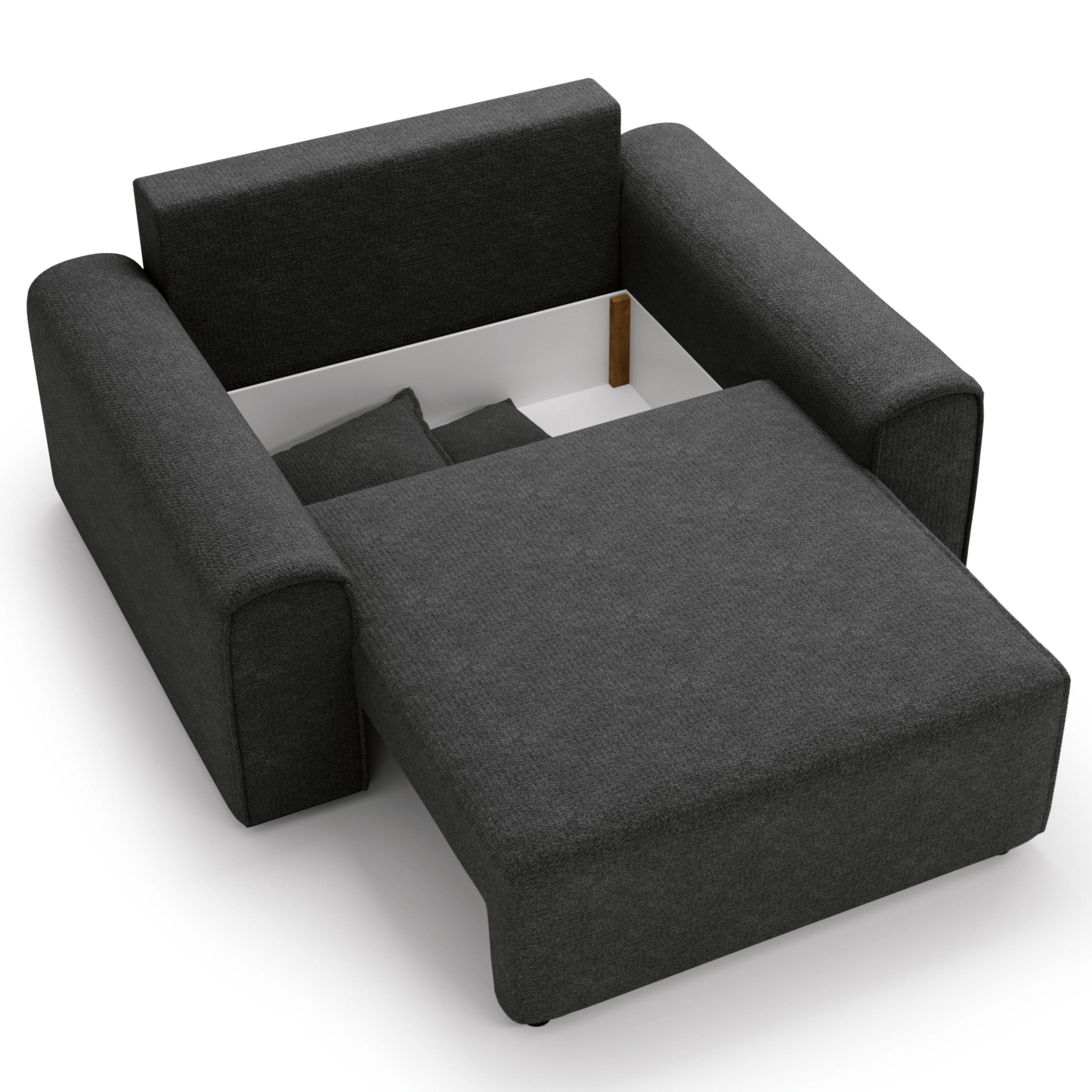 Praktický systém polohování umožňuje během několika sekund proměnit křeslo na lůžko o rozměrech 184 x 114 cm. Obsahuje také integrovaný úložný prostor, kam uložíte vše potřebné. Toto je perfektní řešení pro ty, kteří chtějí spojit funkčnost, pohodlí a prostorově úsporné prvky.