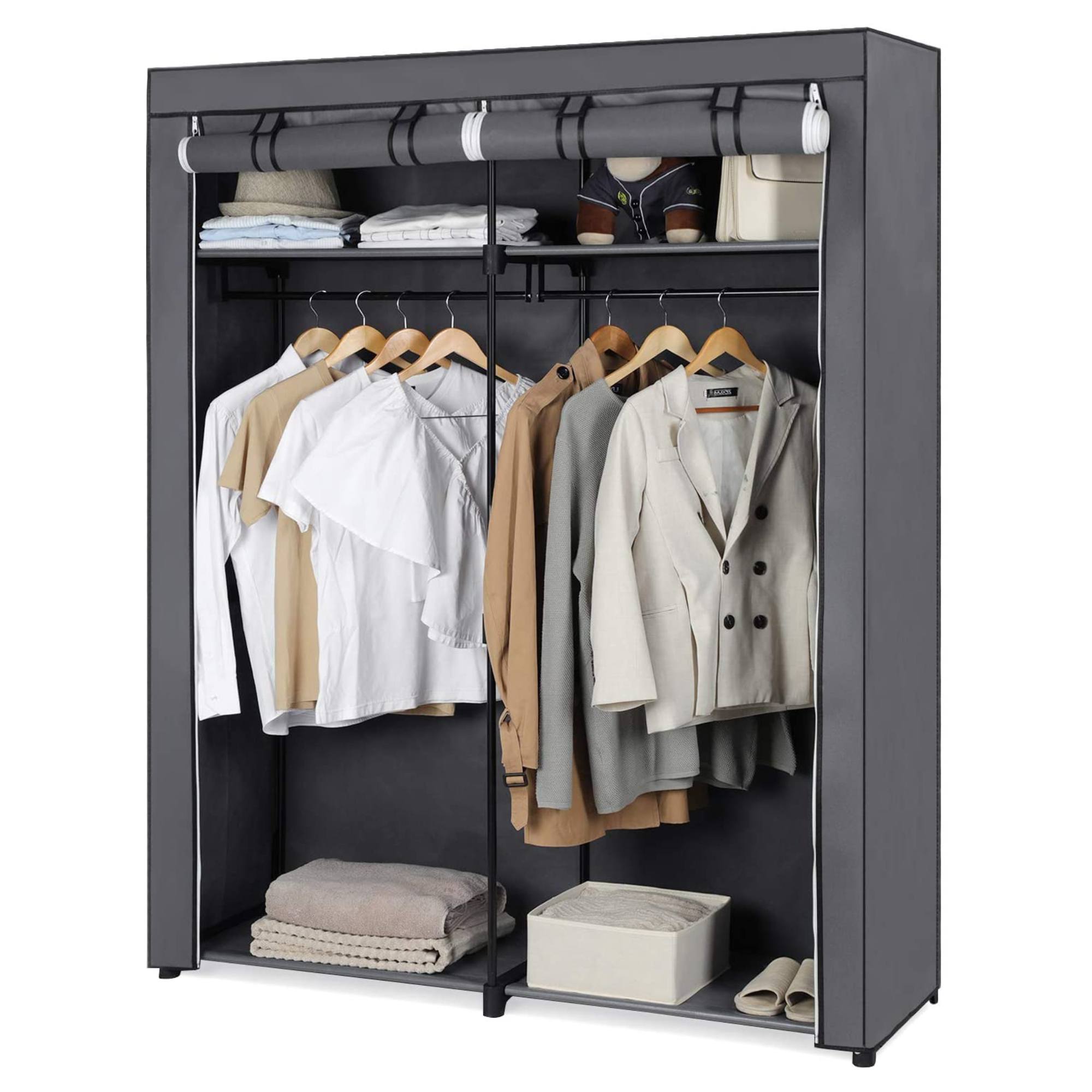 Přehledně uspořádaná a zorganizovaná skříň dokáže ušetřit spoustu času, a to nejen ráno, kdy je každá minuta dobrá. Jednoduchá a funkční skříň RYG02 poskytne vašemu oblíbenému oblečení potřebný odkládací prostor. Můžete využít tyče k zavěšení s nosností až 30 kg i police, které můžete zatížit až 10 kg. Textilní potah stojanu, který je vybaven zipem a suchými zipy nedá prachu šanci a vaše oblíbené kousky budou před ním chráněny. Díky lehké kovové konstrukci se se skříní RYG02 snadno manipuluje a vy si ji můžete postavit prakticky kamkoliv a péče o ni vám také nezabere příliš času.